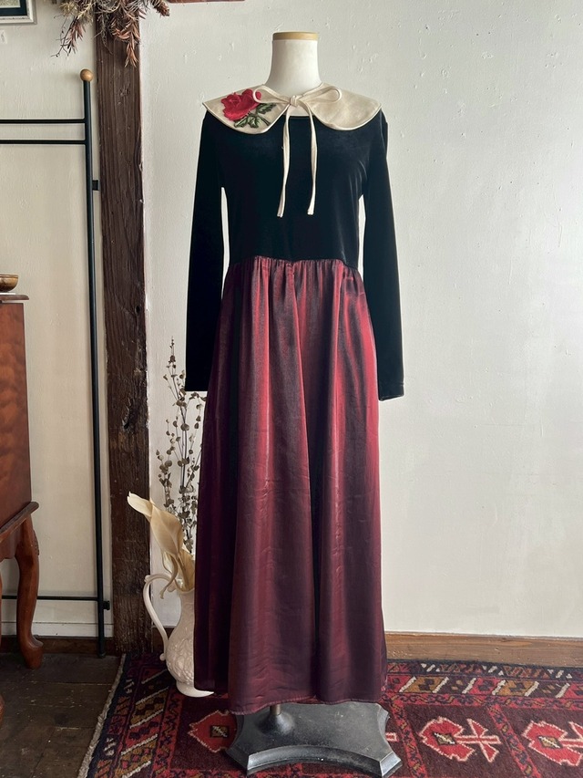 U.S.vintage Velvet × Satin Color Block Dress/ベロアとサテンの切り替えヴィンテージドレス