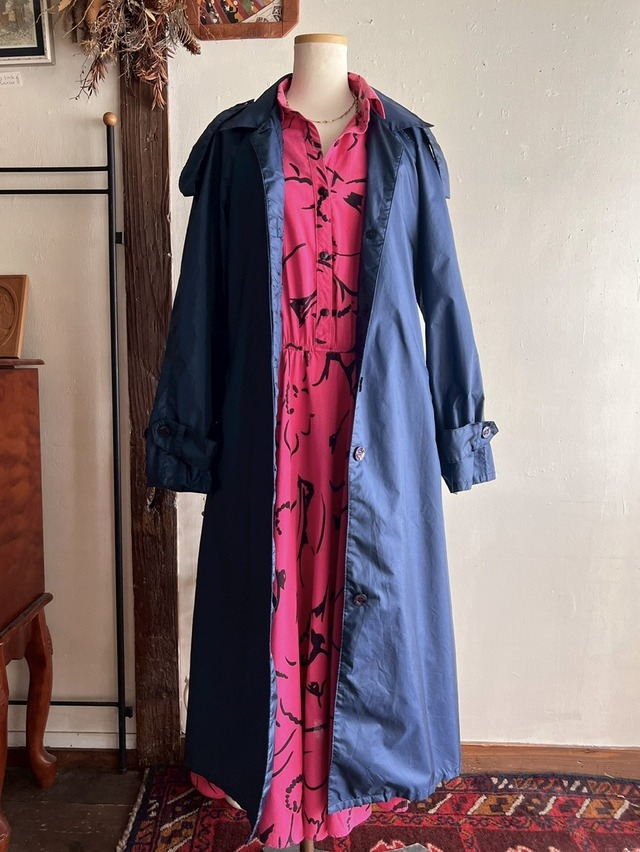 80s USA navy nylon trench coat/ネイビーの軽やかナイロントレンチコート