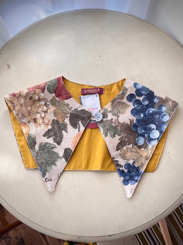 【BRICOLA】フルーツ柄ヴィンテージ生地の大きなとんがり付け襟カラー