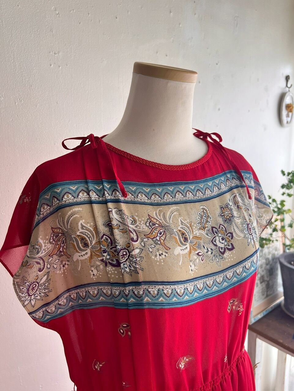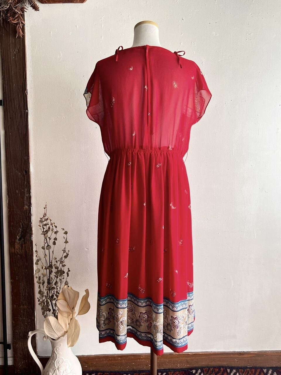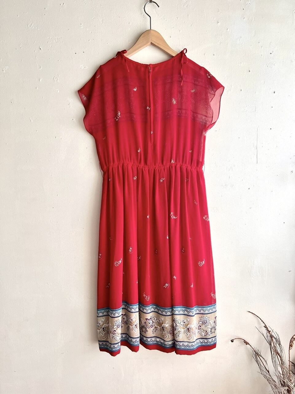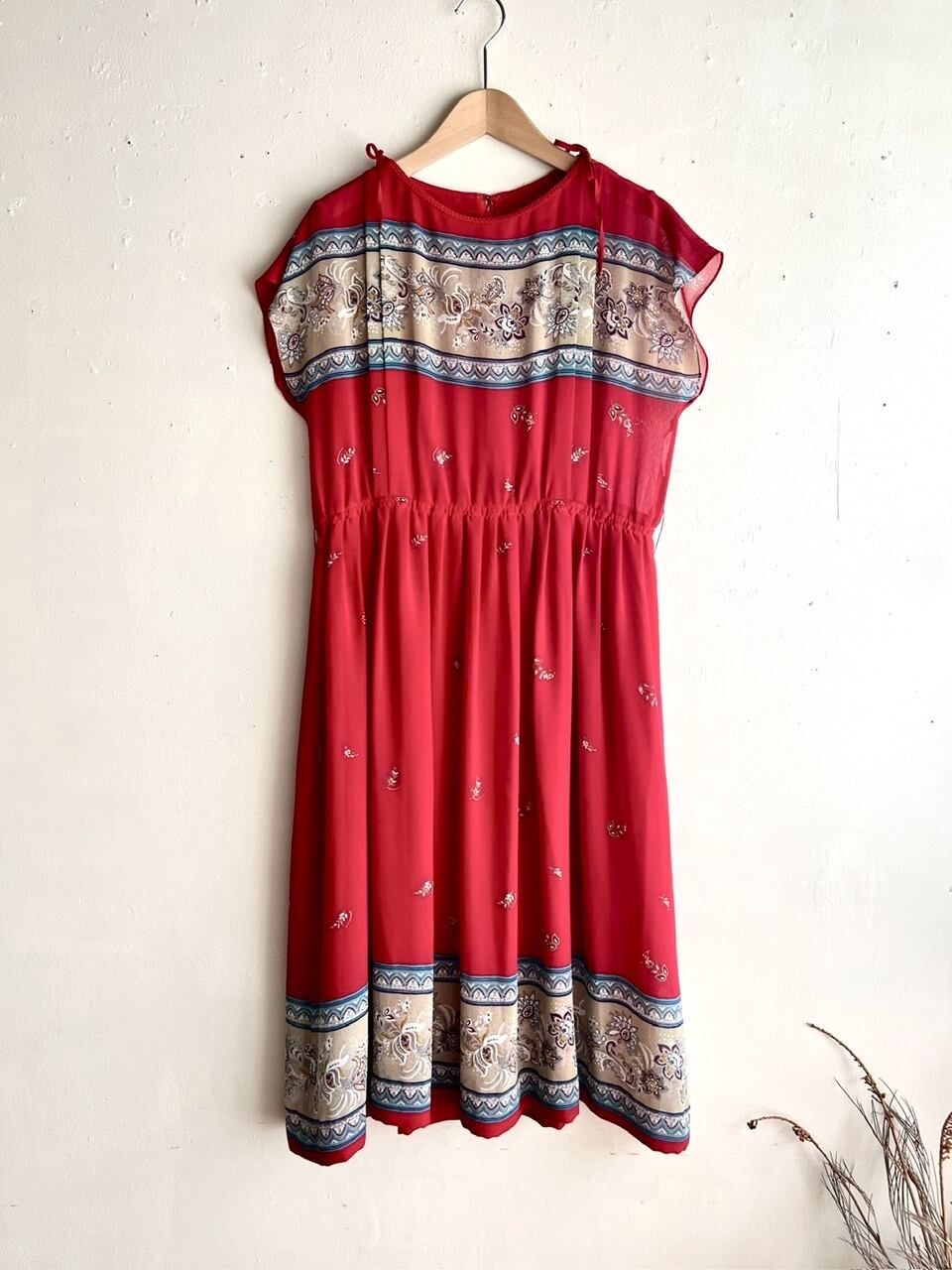 vintage french sleeve red dress/オリエンタルな赤いヴィンテージワンピース