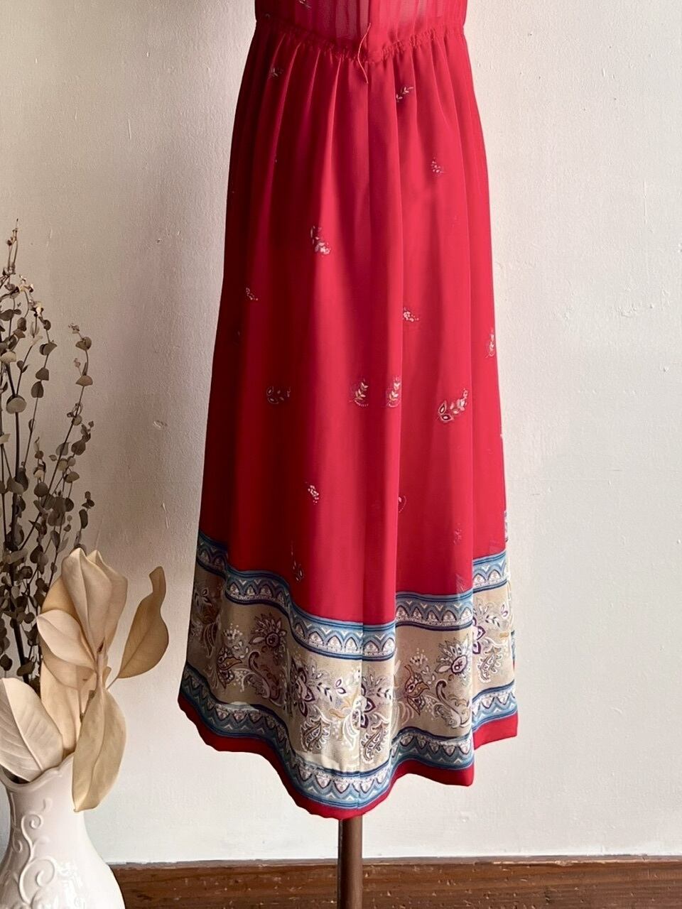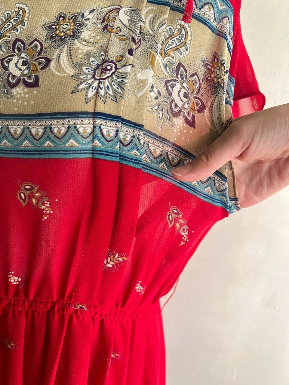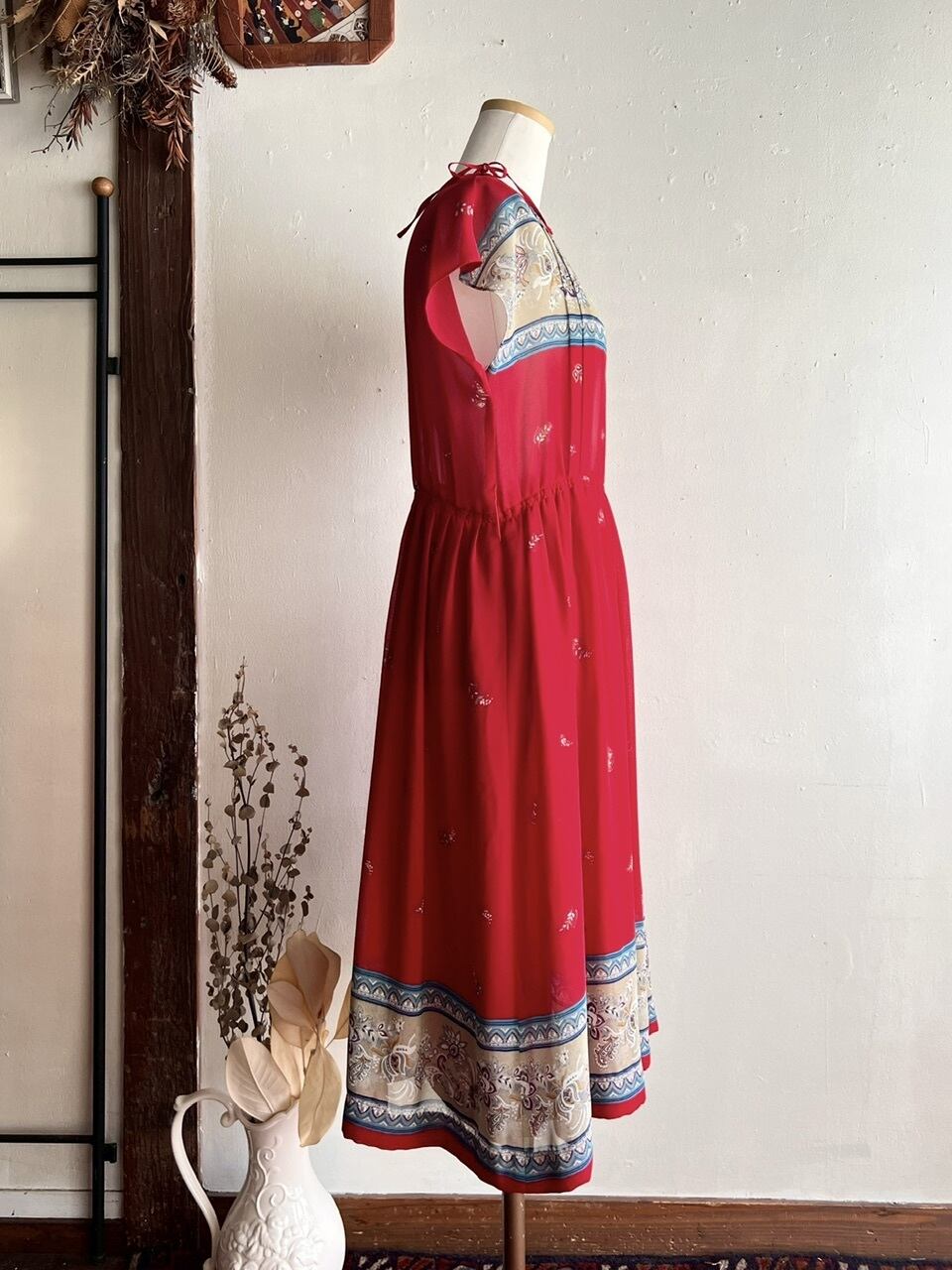 vintage french sleeve red dress/オリエンタルな赤いヴィンテージワンピース