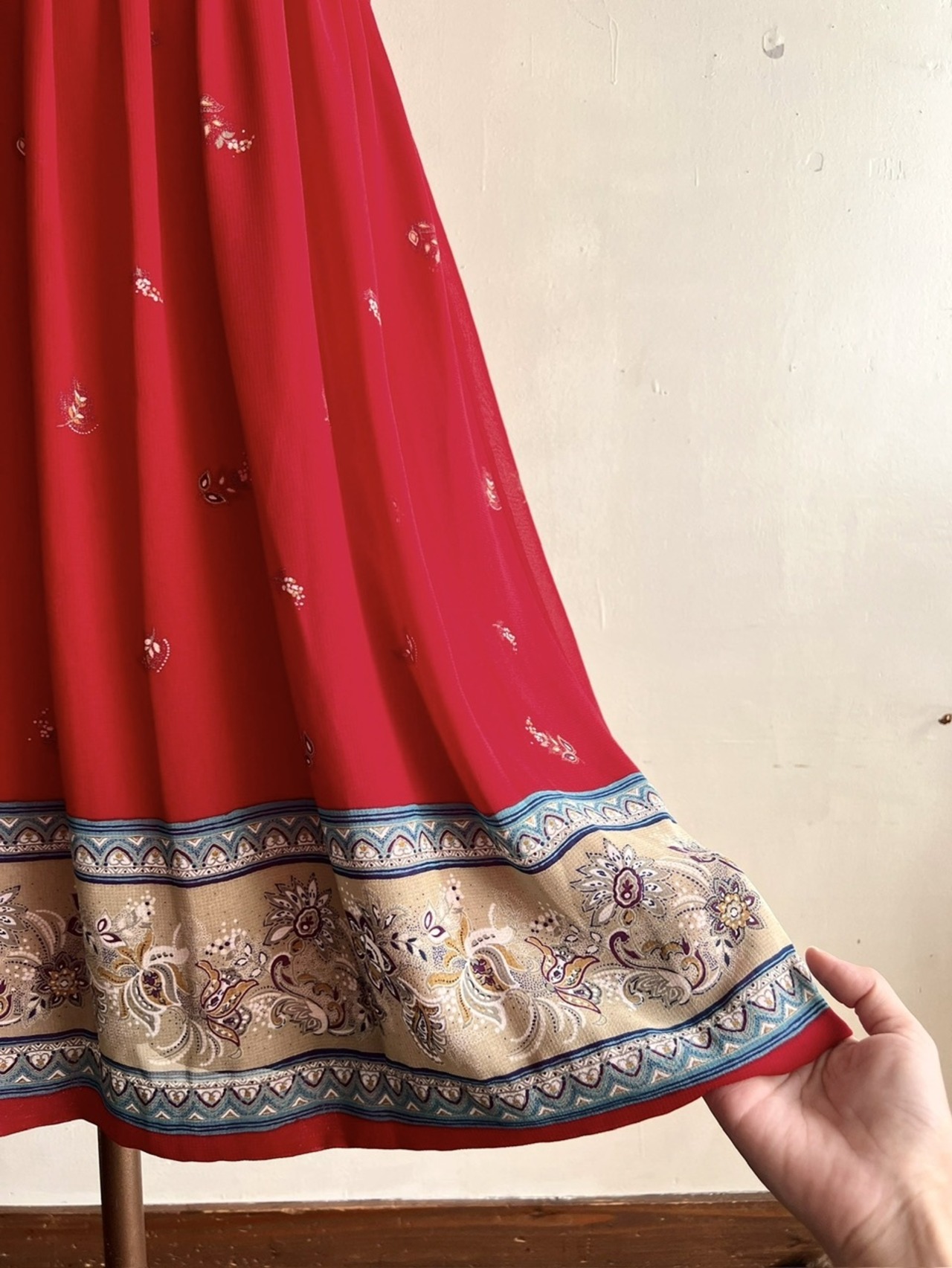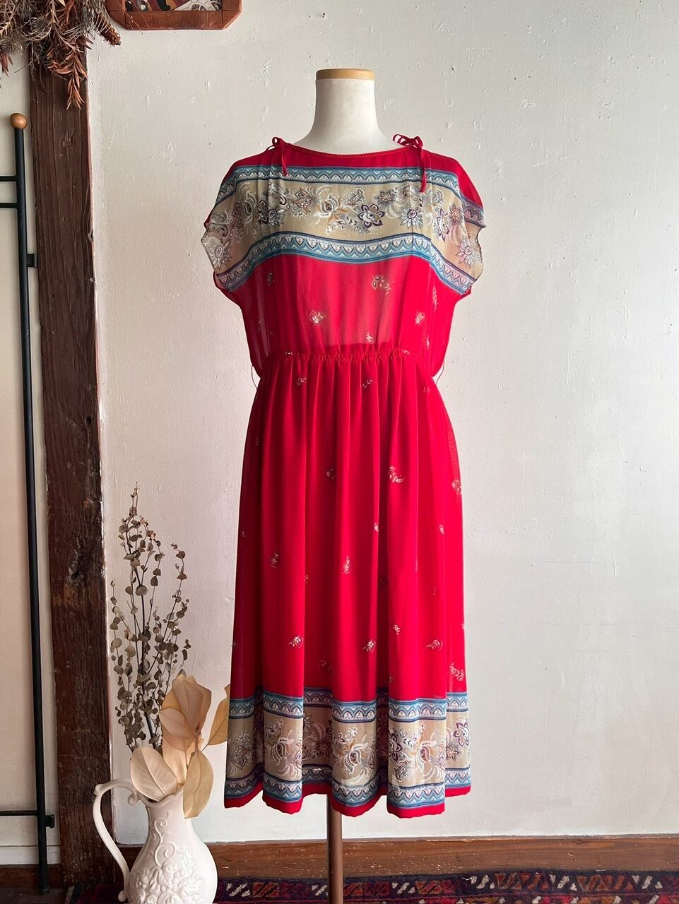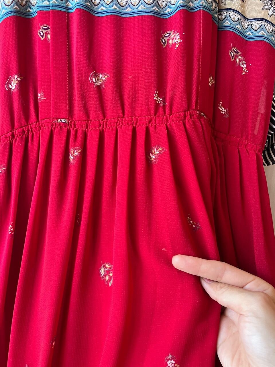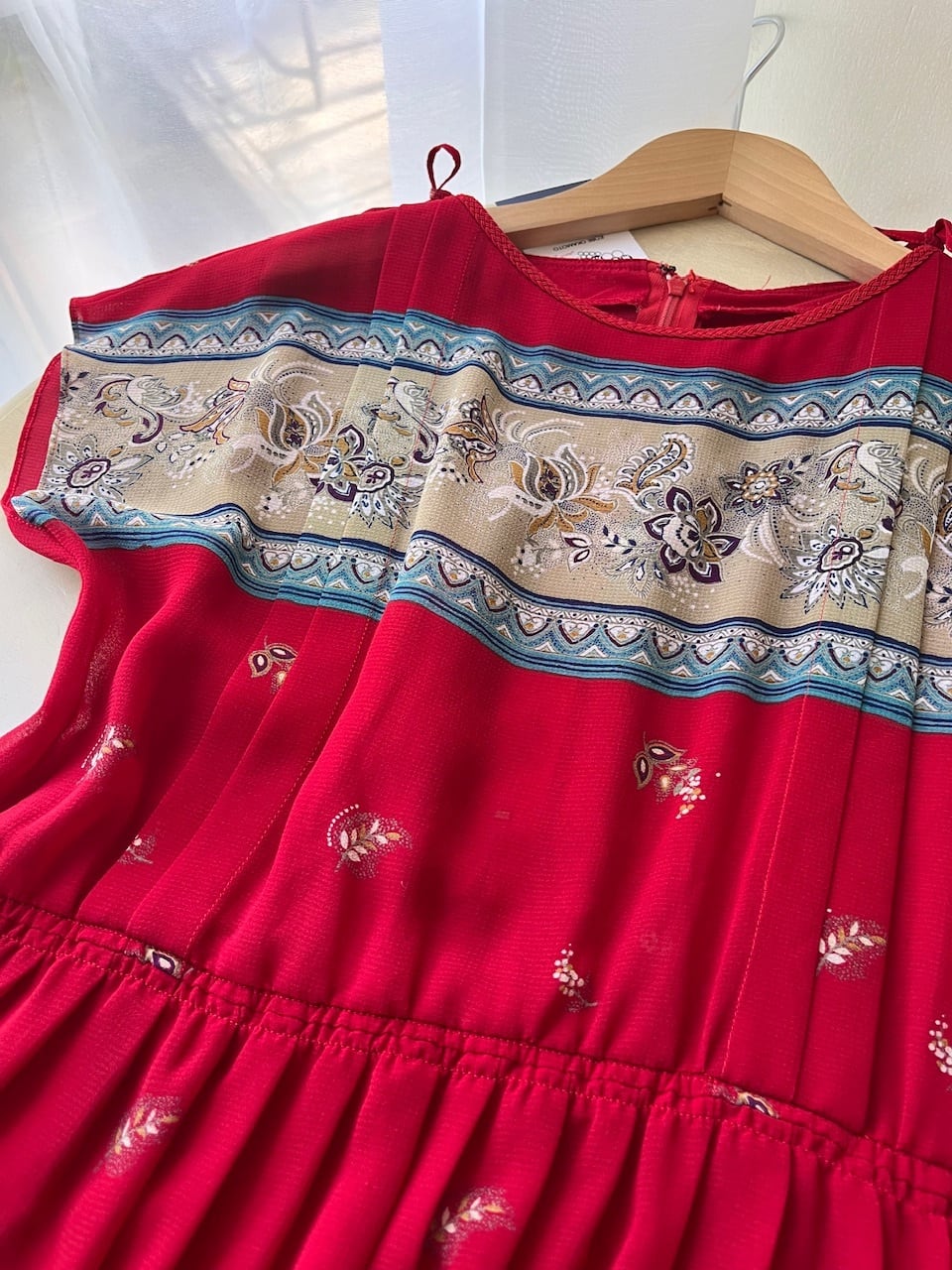 vintage french sleeve red dress/オリエンタルな赤いヴィンテージワンピース