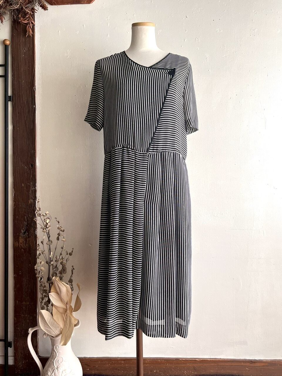 monotone design border dress/モノトーンのデザインボーダーワンピース