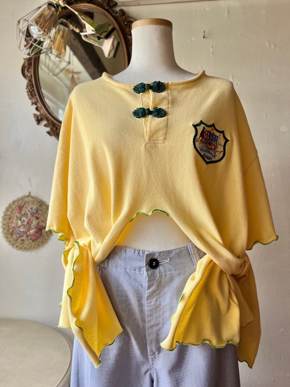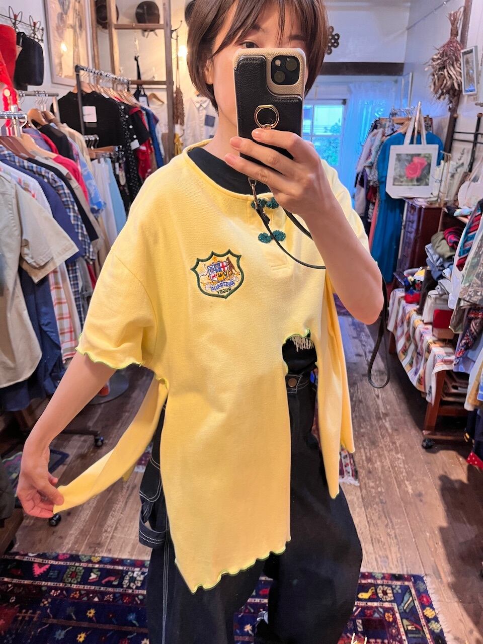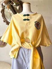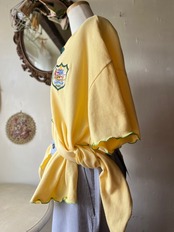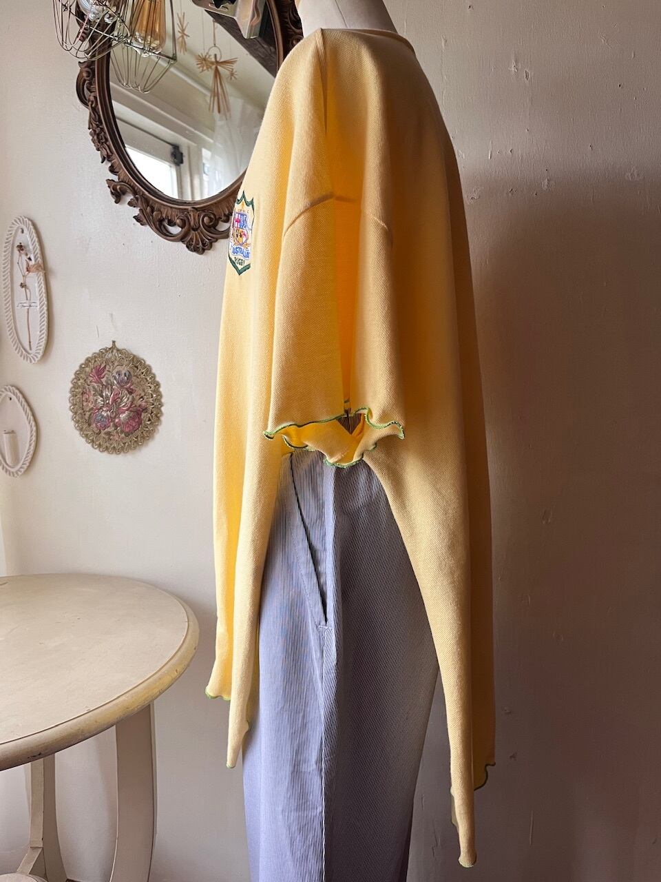 やさしいイエローの色で、生地はいわゆるポロシャツ生地です。