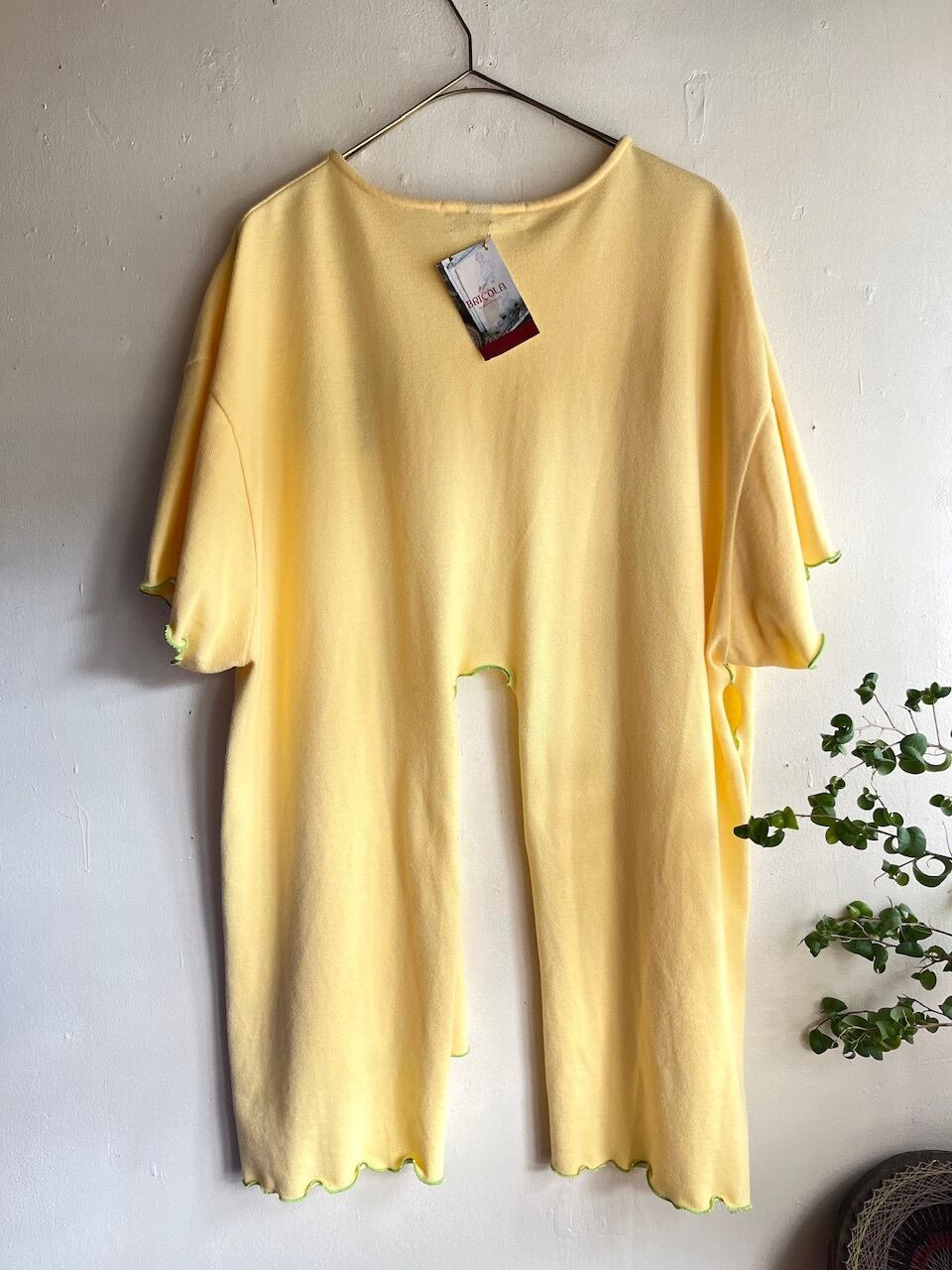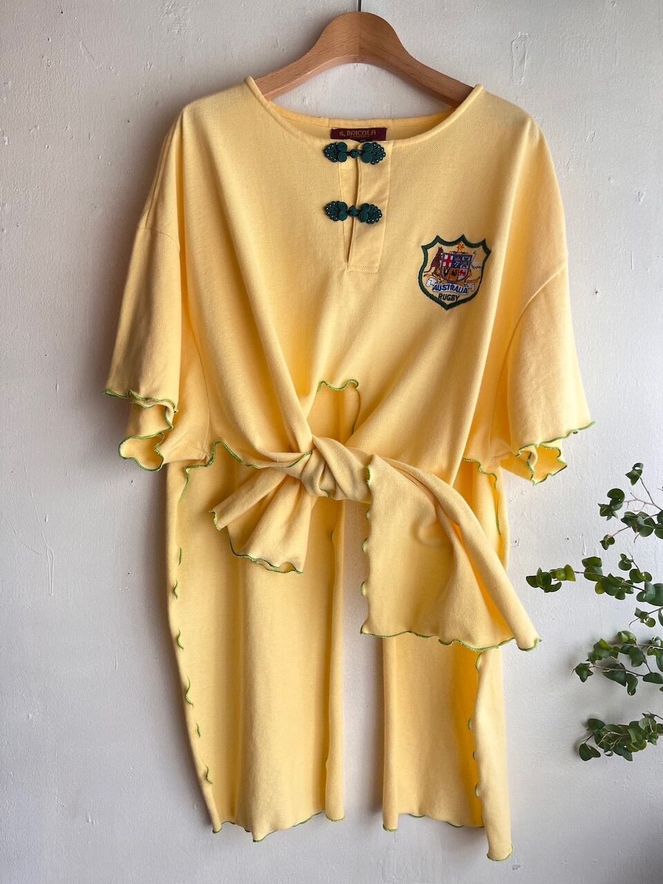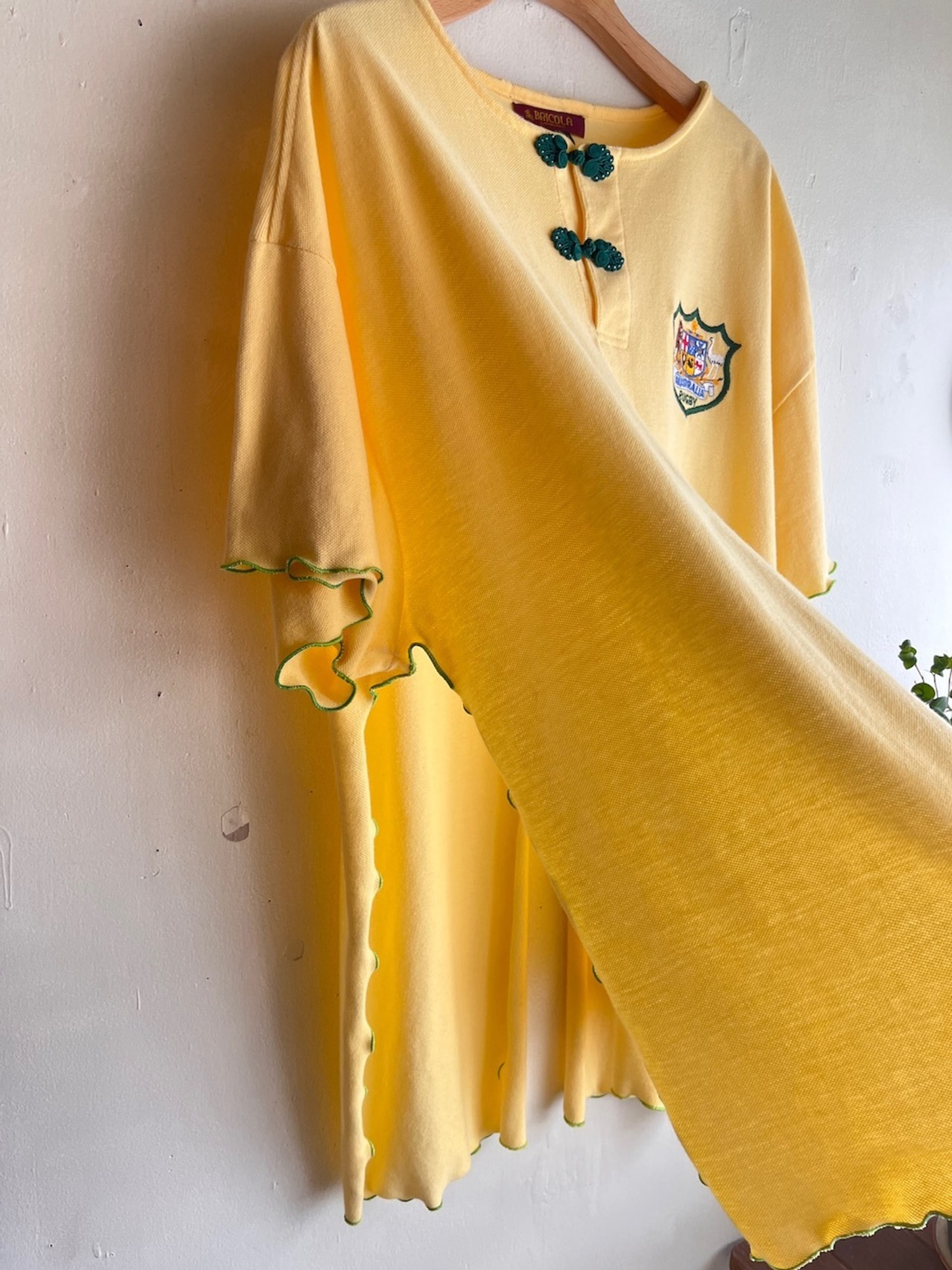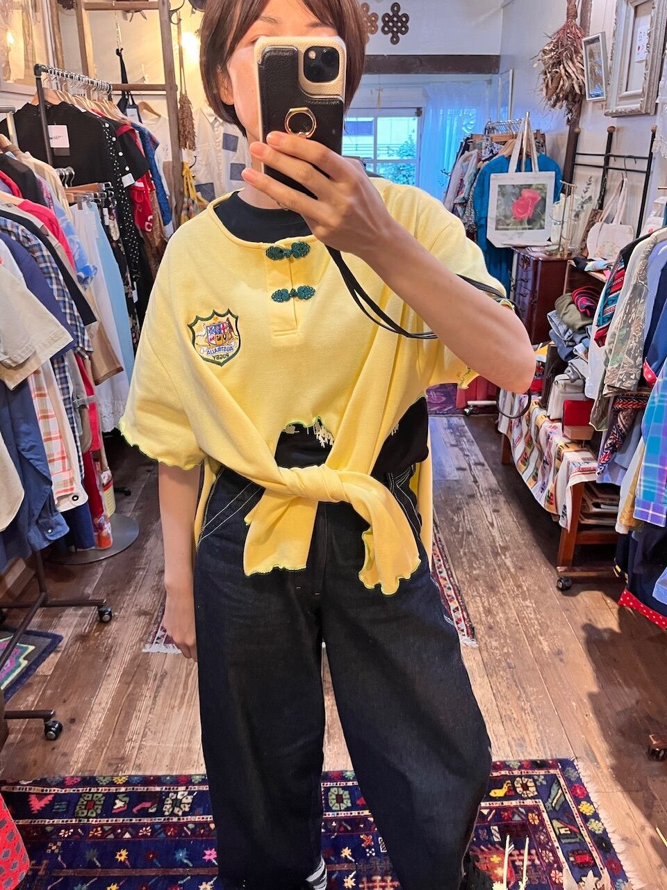 やさしいイエローの色で、生地はいわゆるポロシャツ生地です。