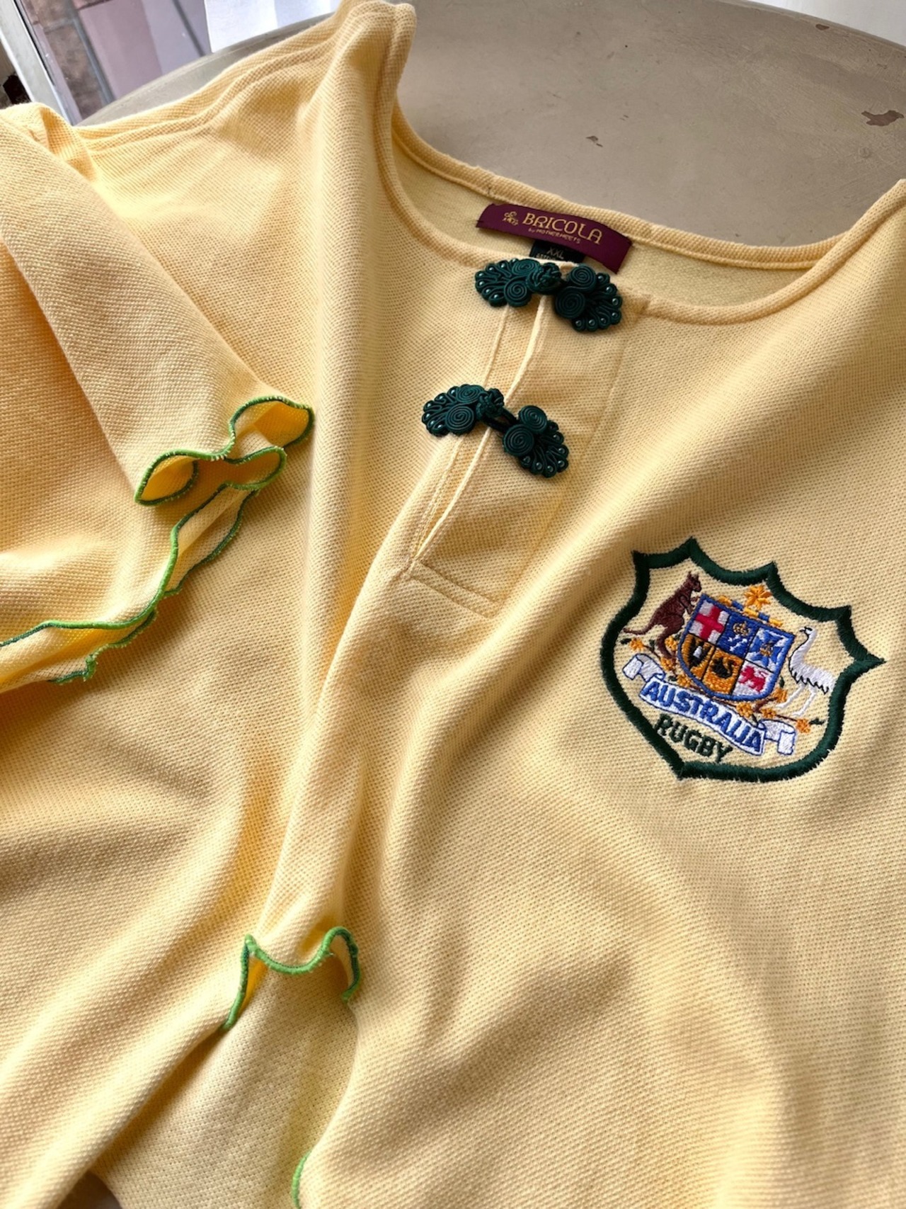 胸に刺繍でオーストラリア ラグビーの文字とカンガルーと鳥さんが入っていて可愛いです。