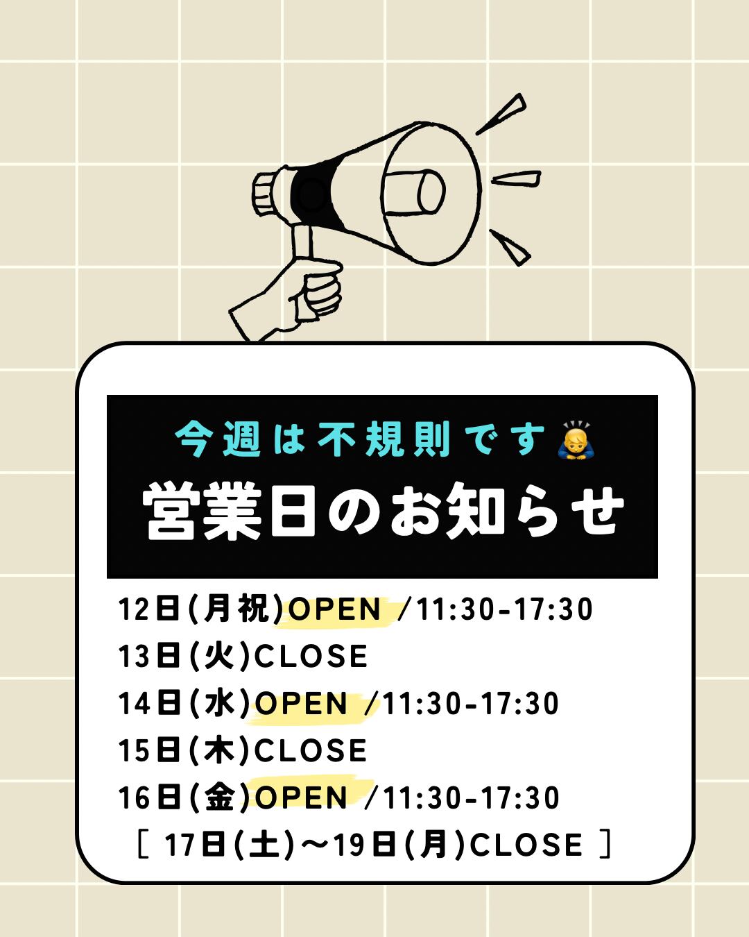 1/17-19休業につき発送はお休みいたします。