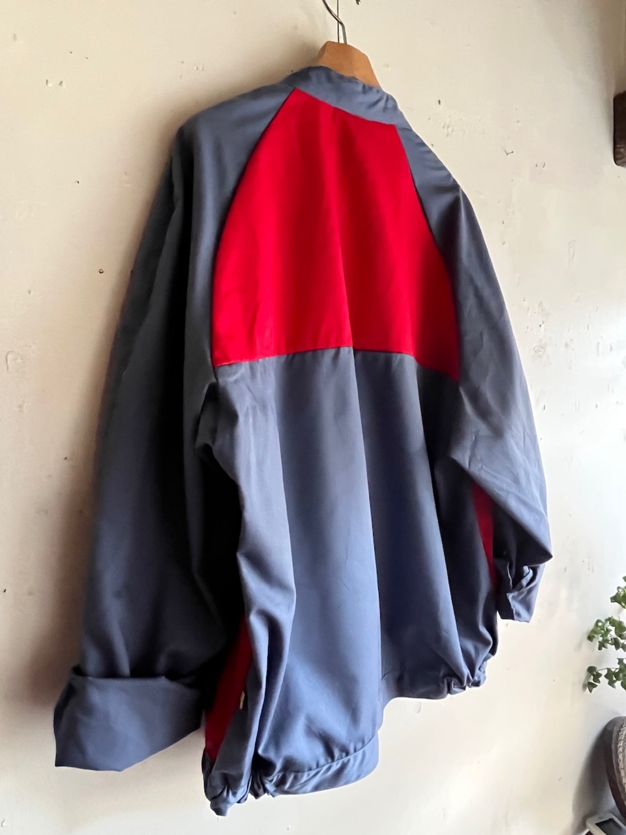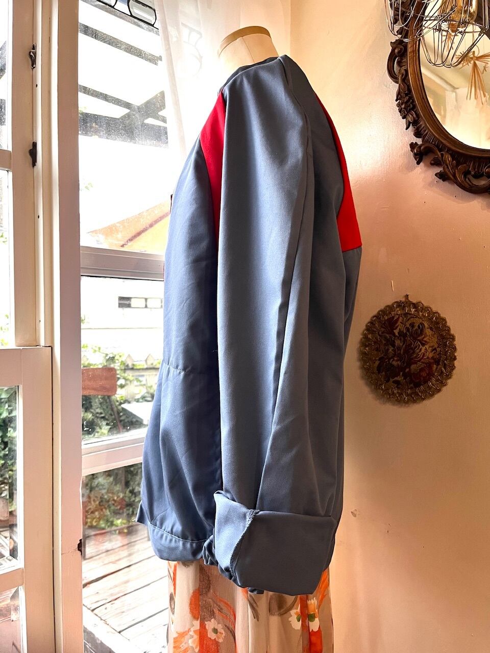 明るめの赤としっかりめのグレーのスペイシーなカラーがとってもかわいく、ジップアップの2つの縦ポケットやラグランスリーブの切り替え、