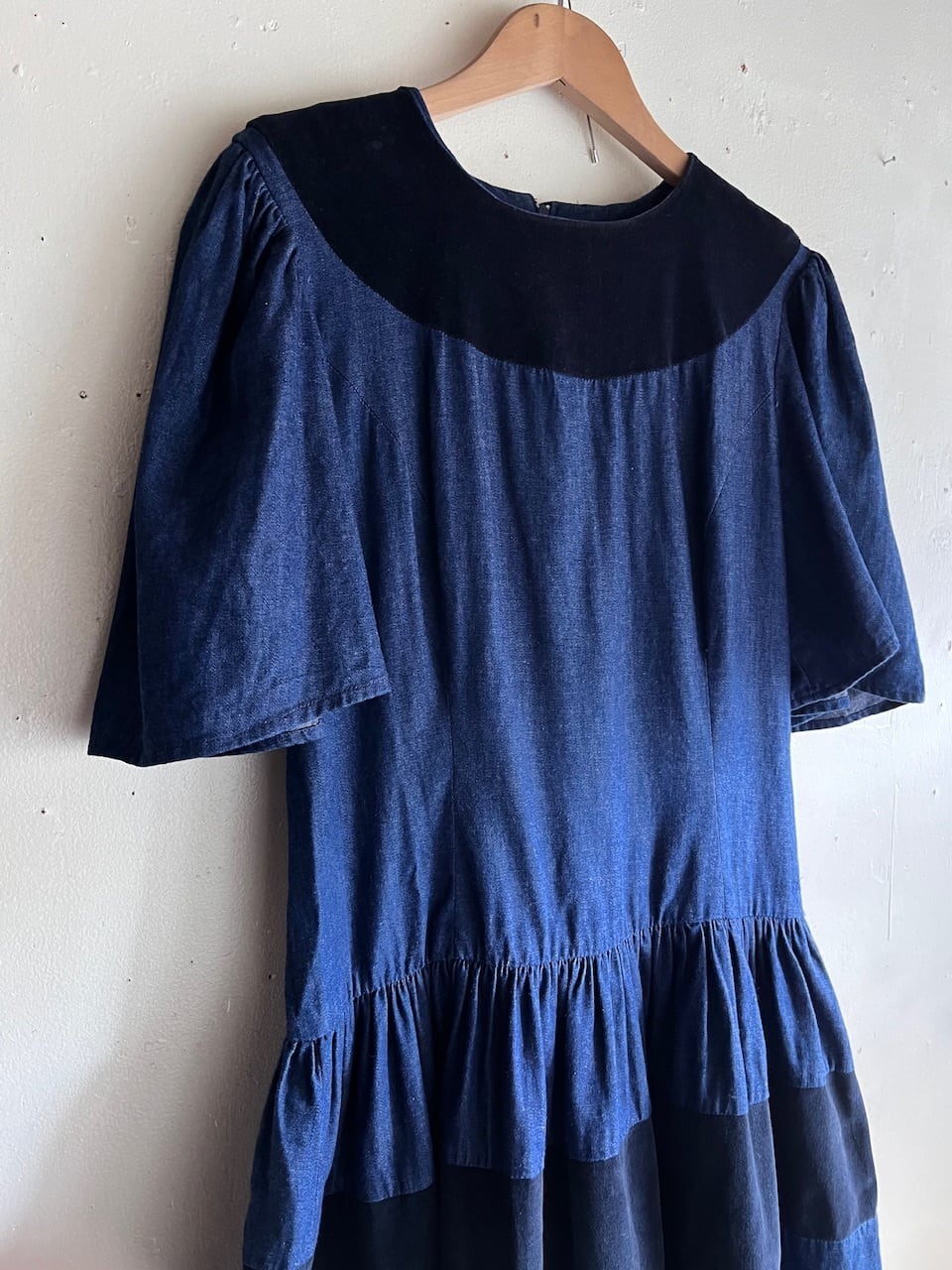 80s USA denim×velours dress/USA製デニムとベロアの切り替えワンピース