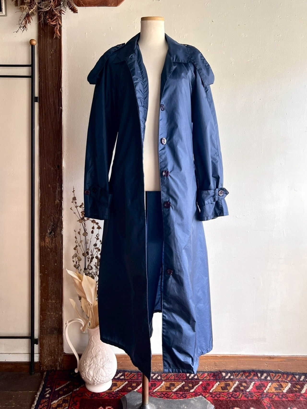 シャカシャカと軽くて肩こり知らずなナイロンのトレンチコート。