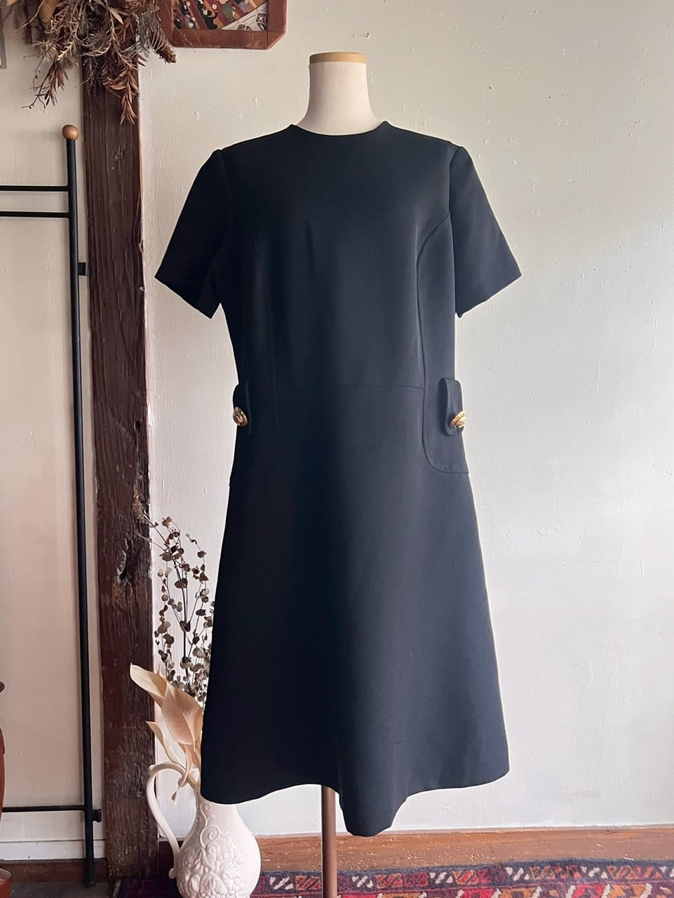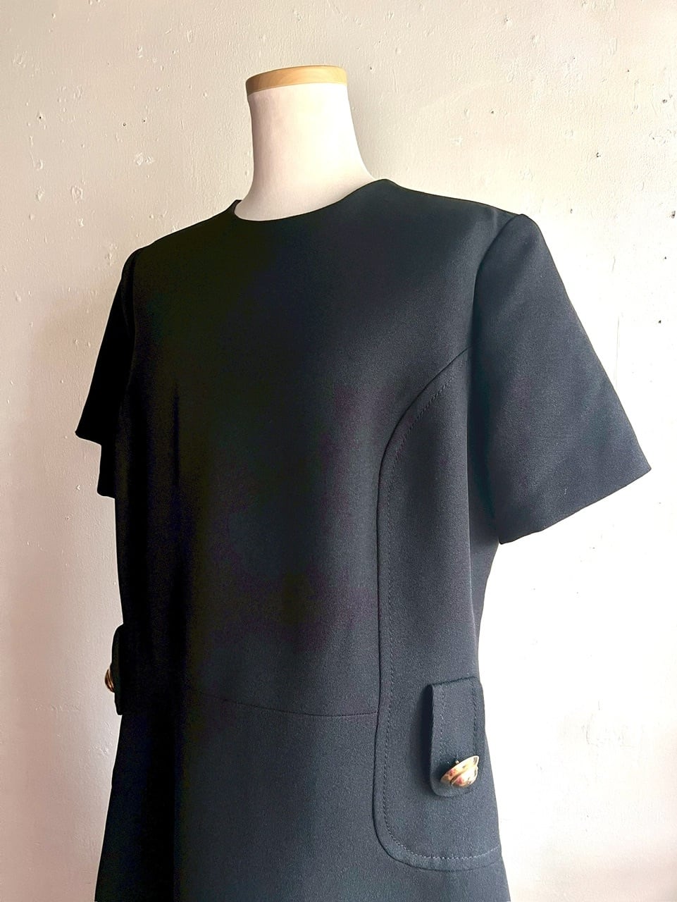 レトロな切替デザインのシルエットとブラックにゴールドのポイントがとってもかわいいです。