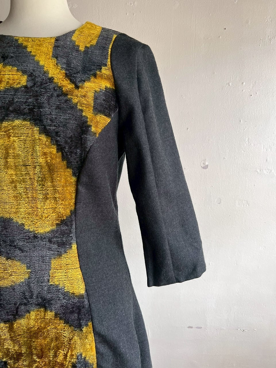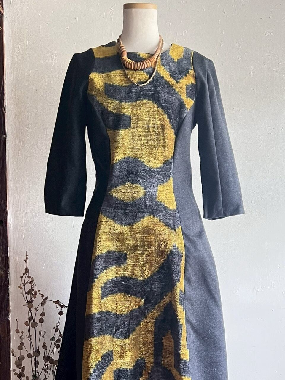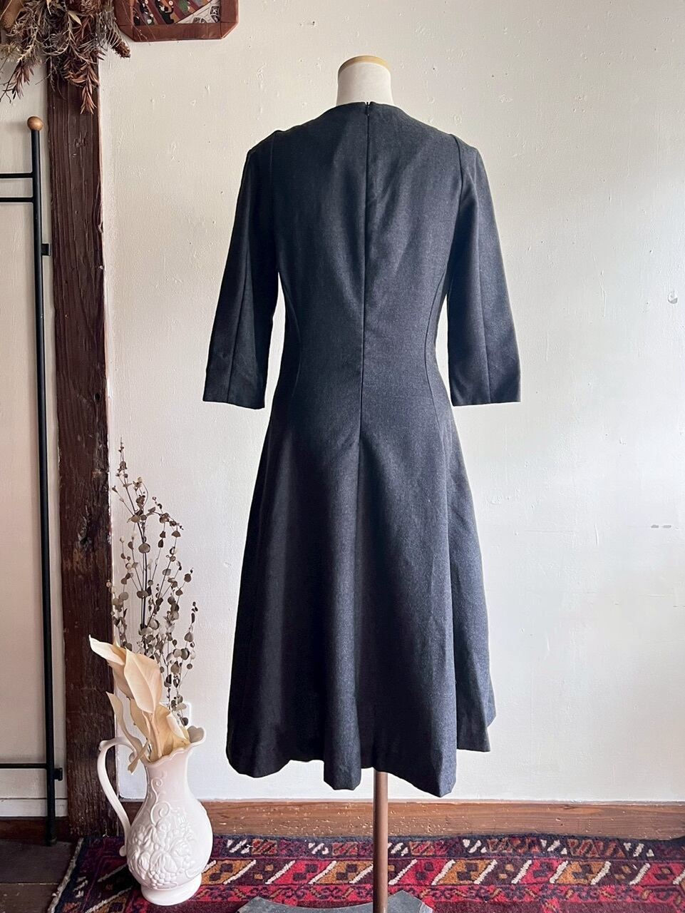 Vintage Mixed-Texture Panel Dress /チャコールグレー&ジャガード切り替えの異素材ワンピース | MOTHER MEETS vintage 〜神戸岡本・ヴィンテージ古着屋〜