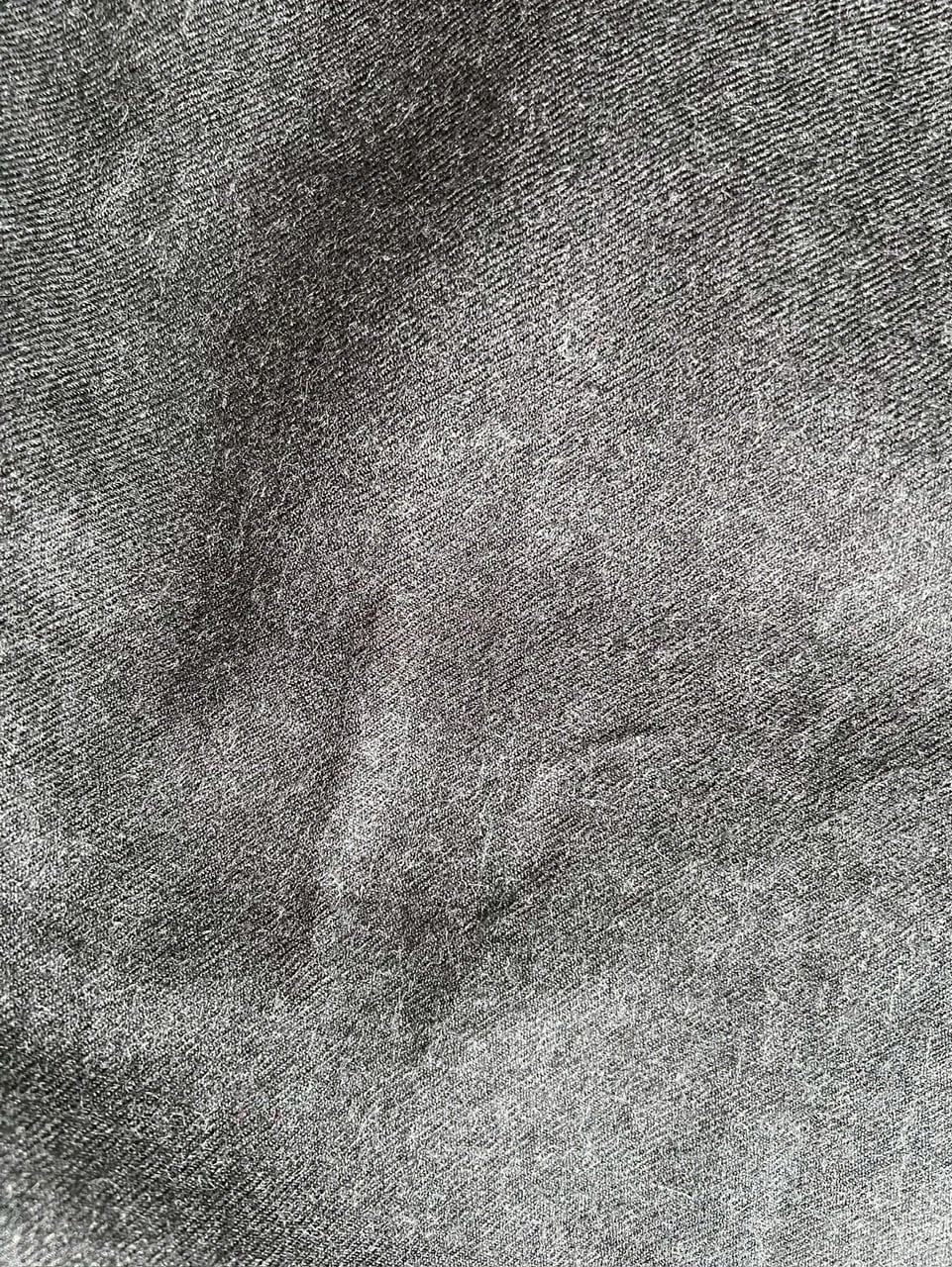 チャコールグレーの無地ベースに、前面へ立体感のあるベロア調ジャカードが大胆に配置されています。