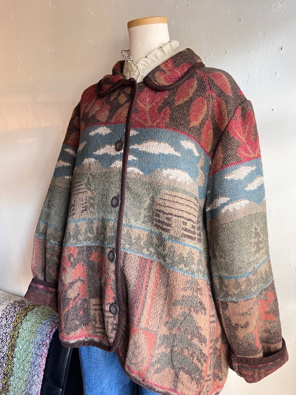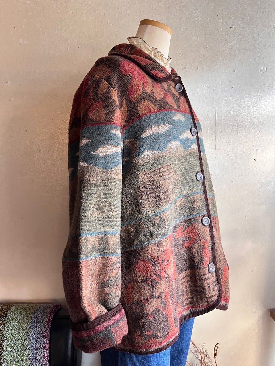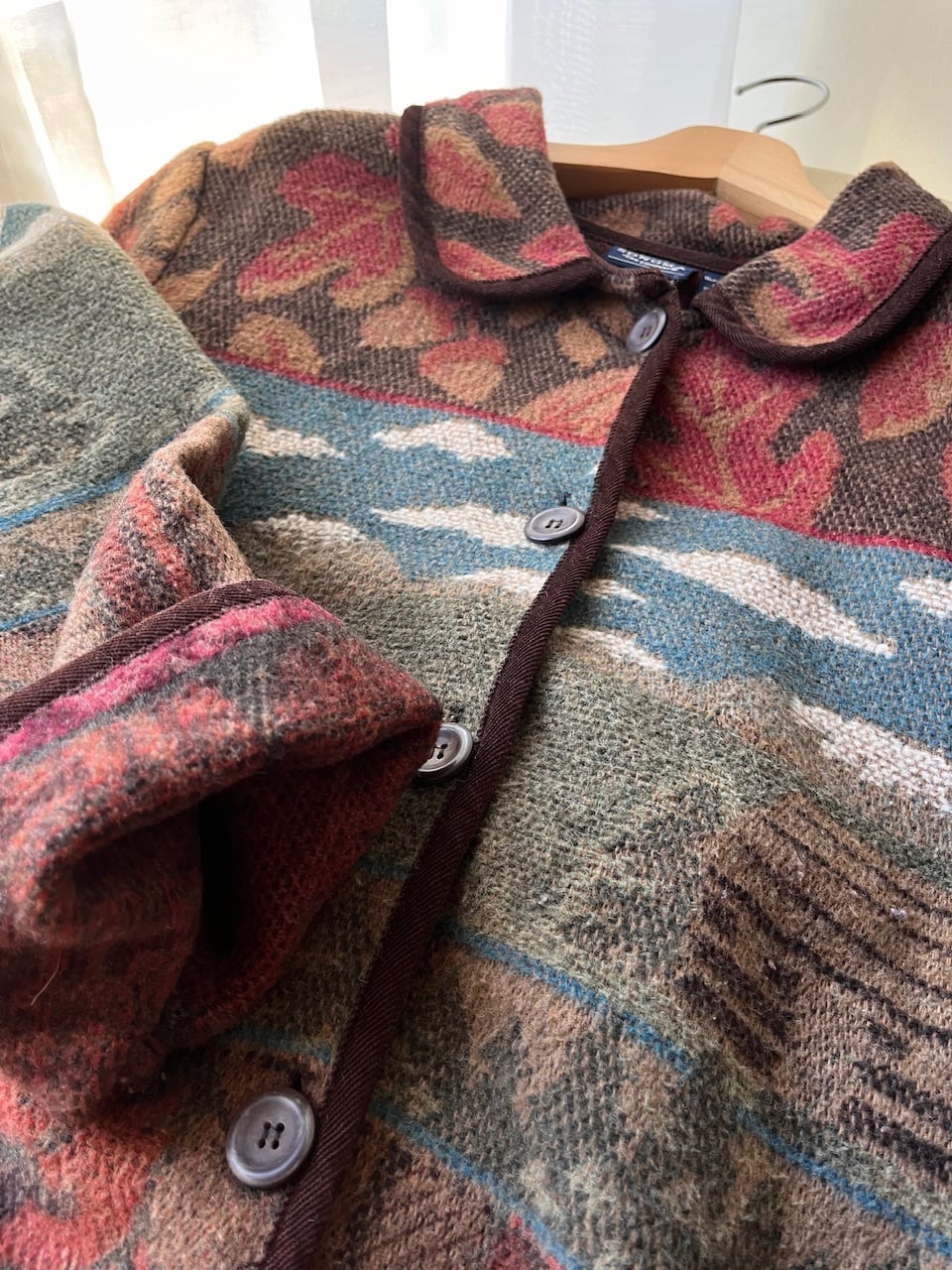 ウール混のジャカードカーディガンジャケット。