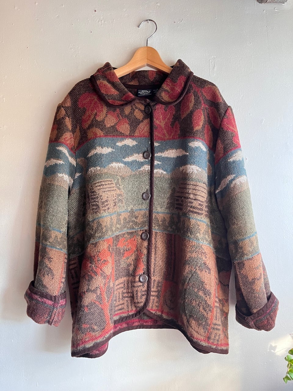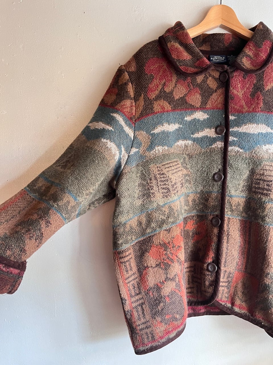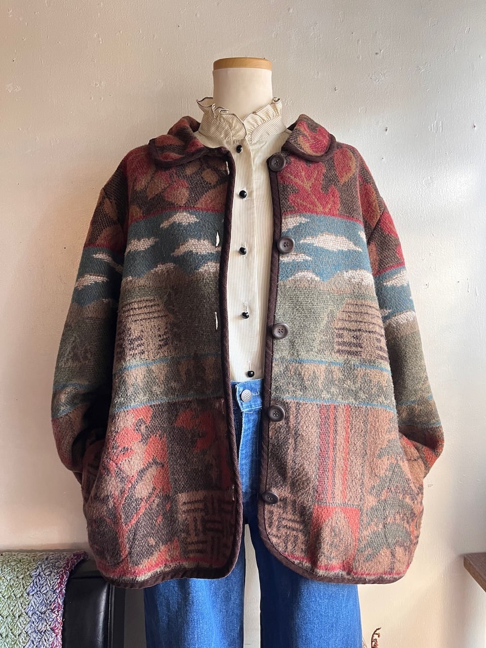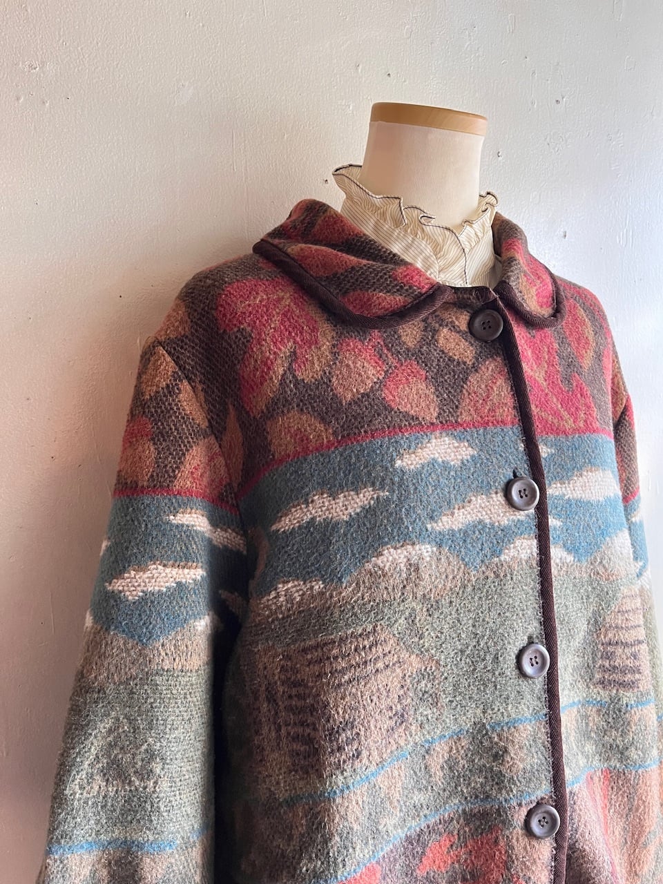 ウール混のジャカードカーディガンジャケット。