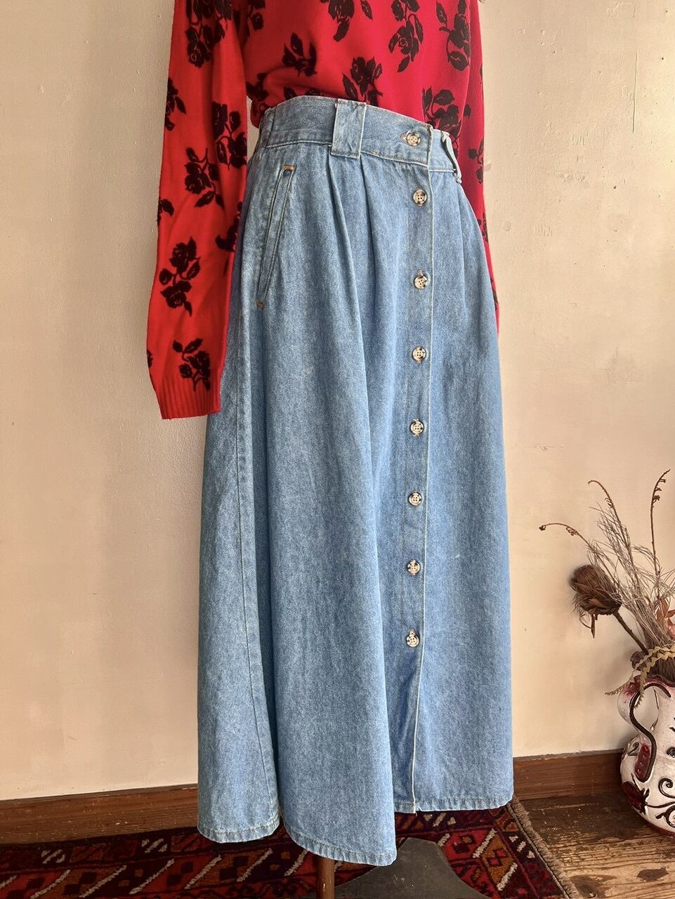 デニムロングスカート。