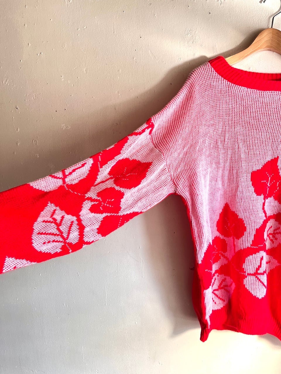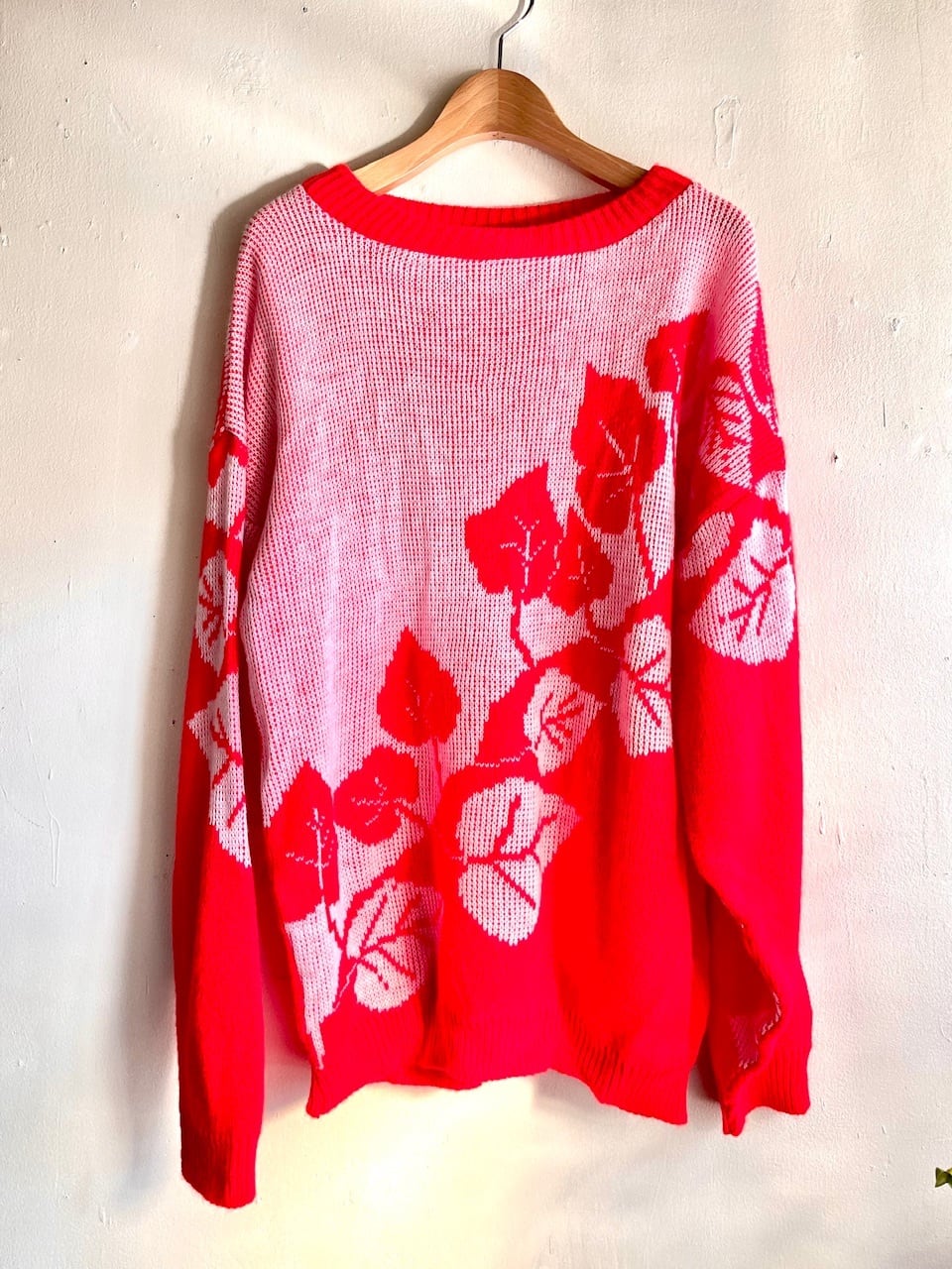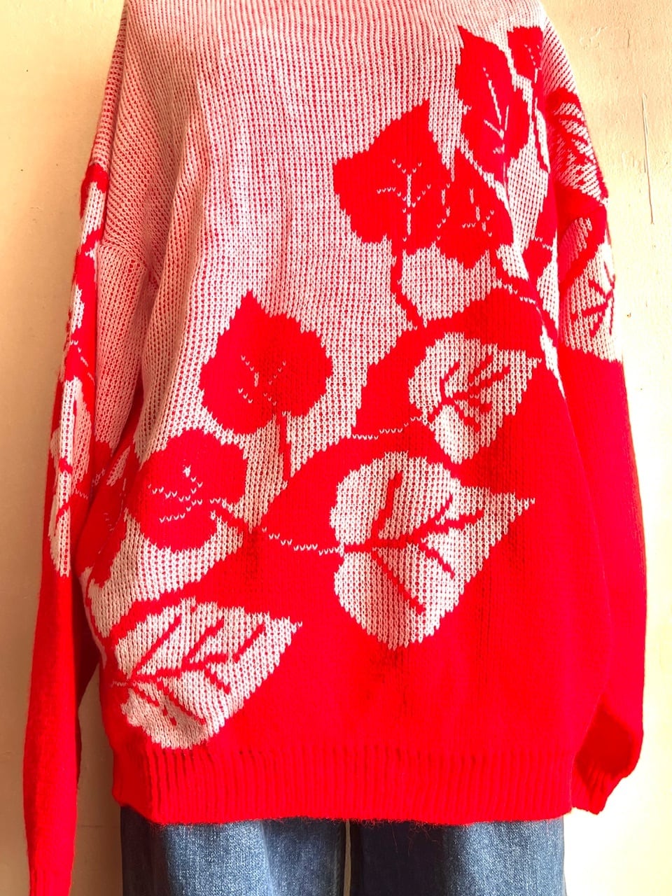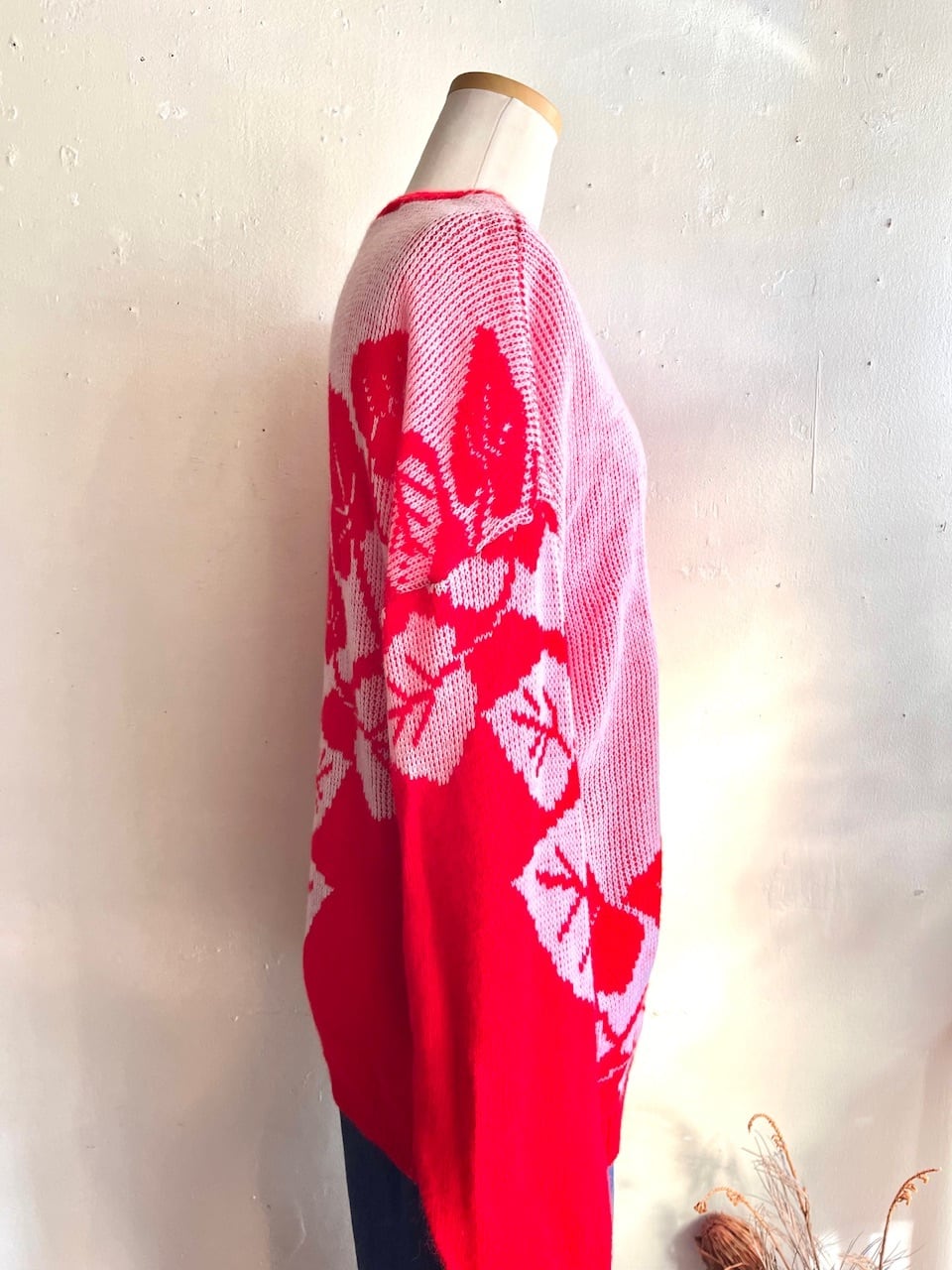 軽やかなアクリル糸で編まれたジャカードニットは、肩の落ちるリラックスシルエット。