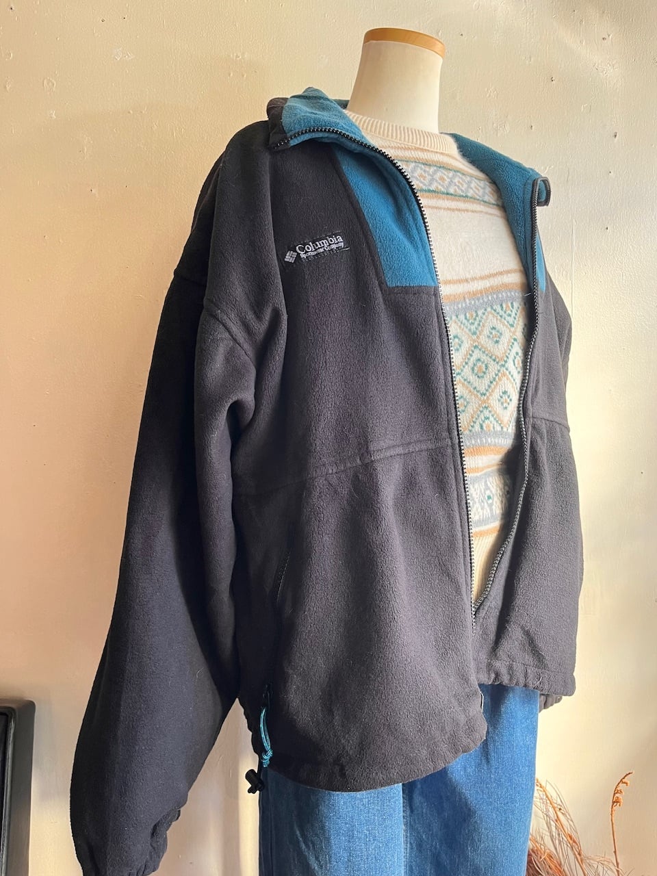 Columbia 90’s Retro Fleece Jacket /ブラック&ターコイズのヴィンテージフリースジャケット | MOTHER MEETS vintage 〜神戸岡本・ヴィンテージ古着屋〜