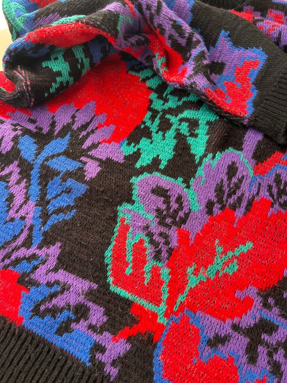 80年代アメリカ製のビビッドなフローラルアートニット。
