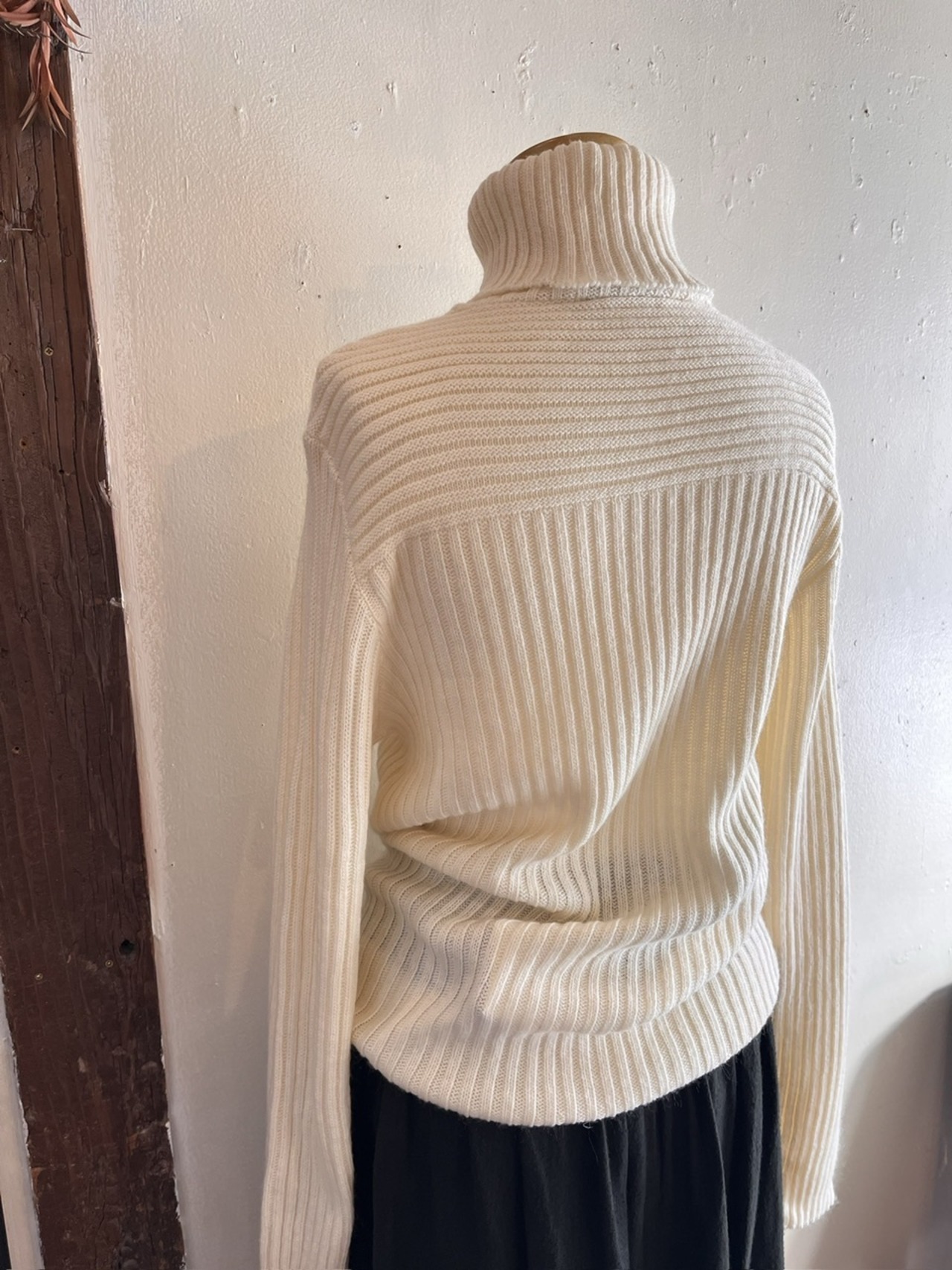 柔らかなアイボリーカラーが上品な、USA製のリブタートルニット。
