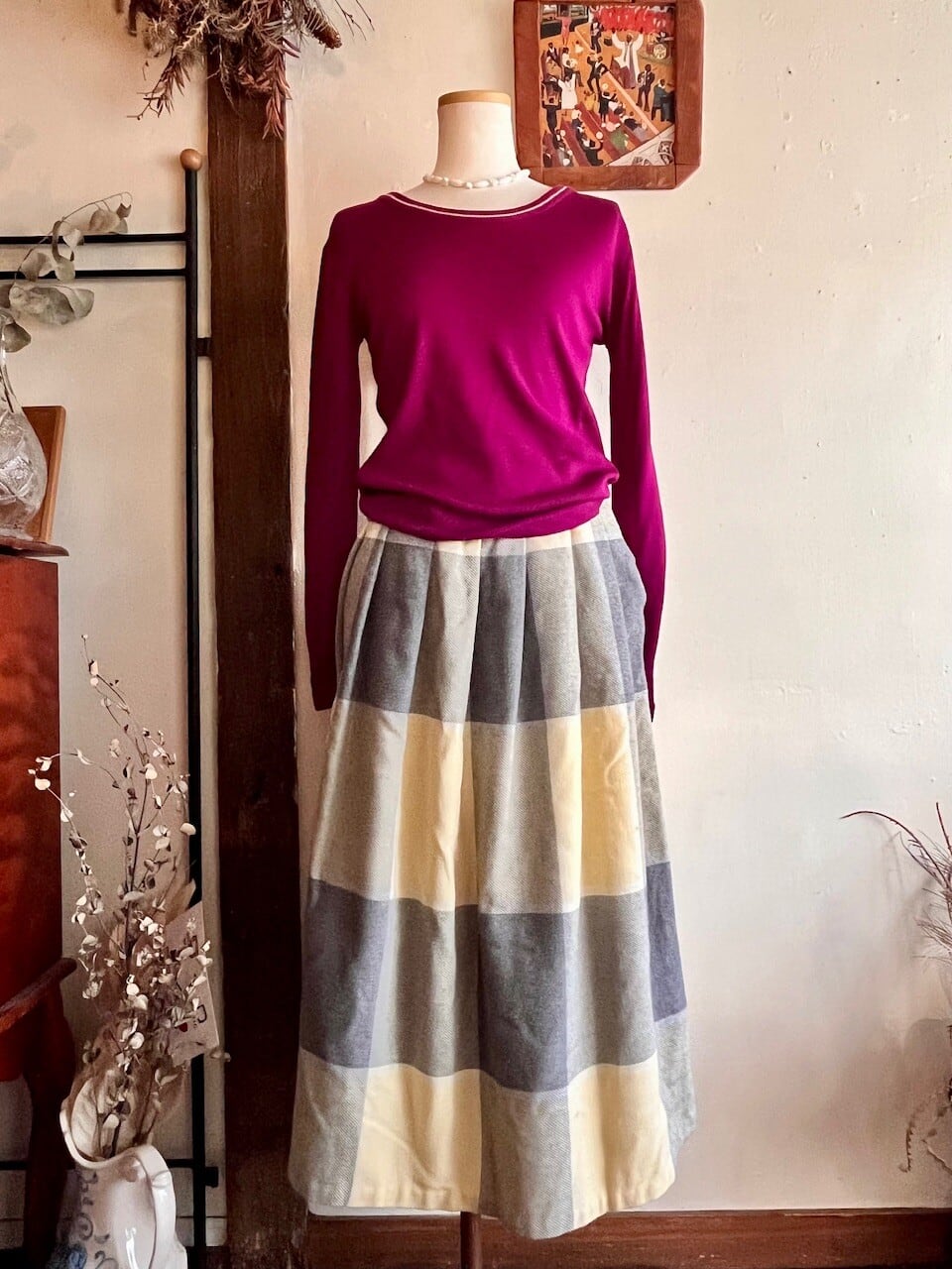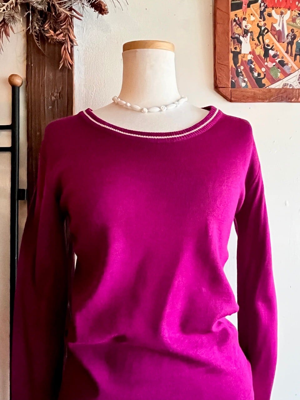 プラム〜ボルドーのお色が大変美しいヴィンテージの薄手ニット。