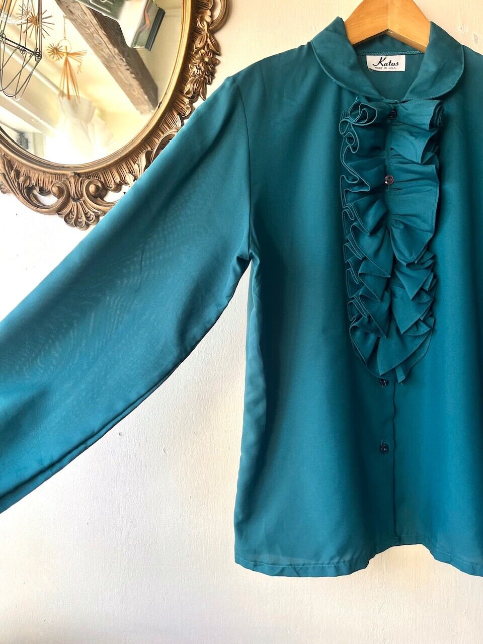 80s made in USA frill green blouse/アメリカ製フリルつきグリーンのヴィンテージブラウス | MOTHER MEETS vintage 〜神戸岡本・ヴィンテージ古着屋〜
