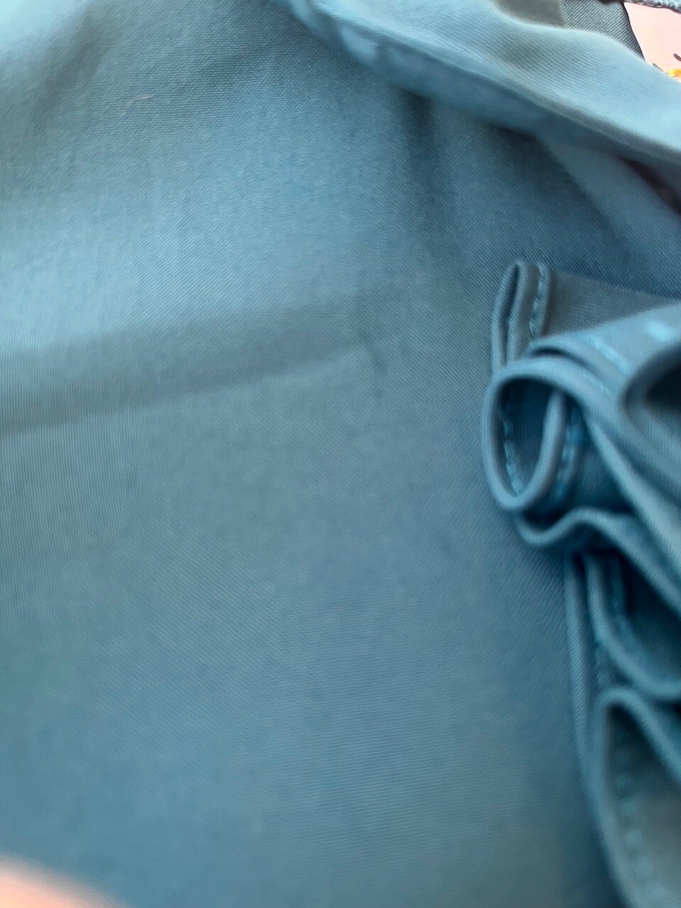 お色が濃いのでわかりにくいのですが、右袖とフリルの横あたりに薄い小さなシミのようなものが見られます。