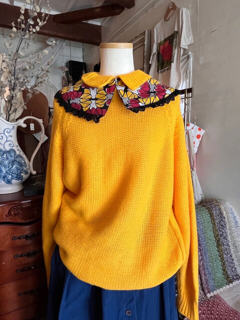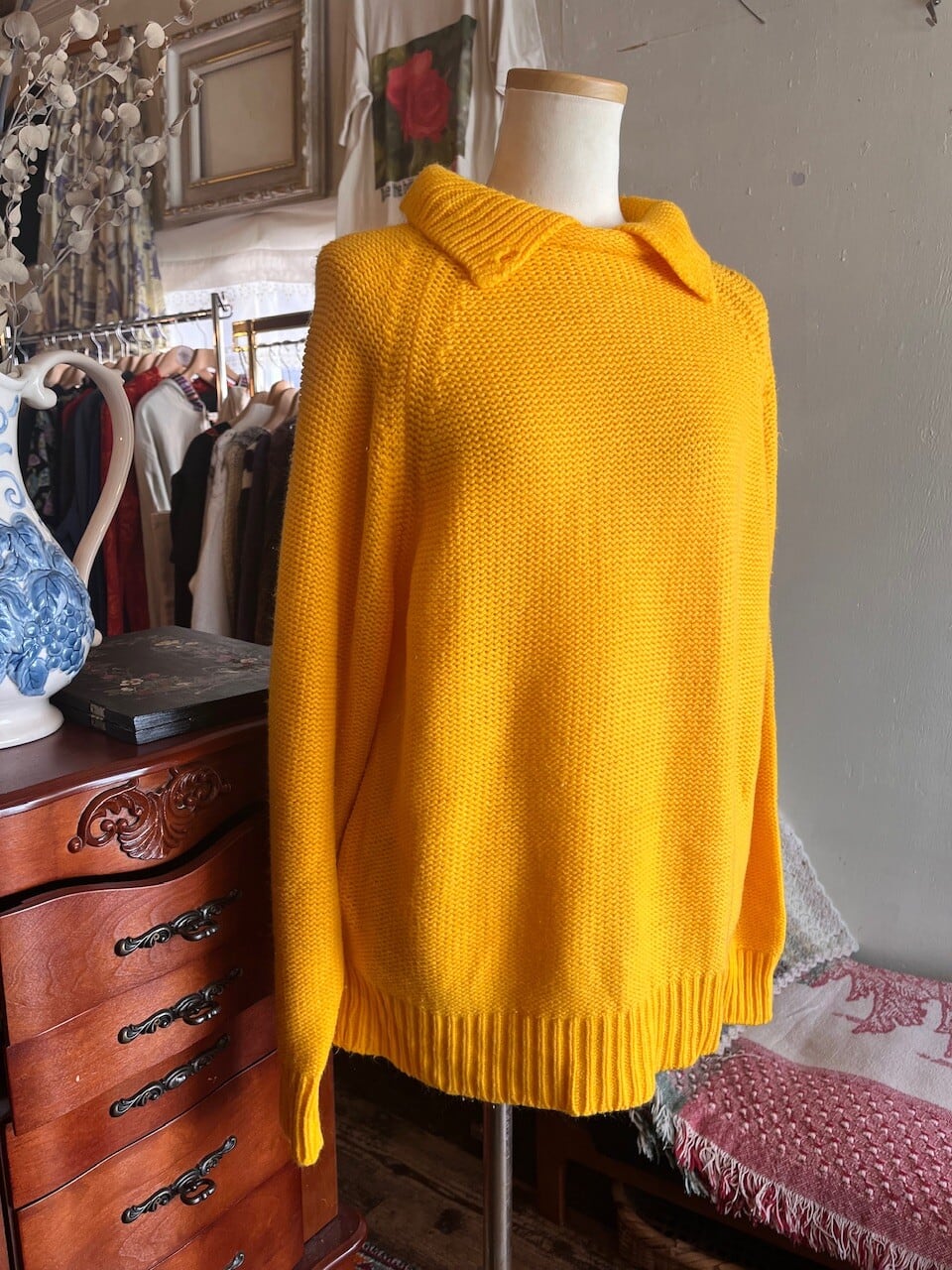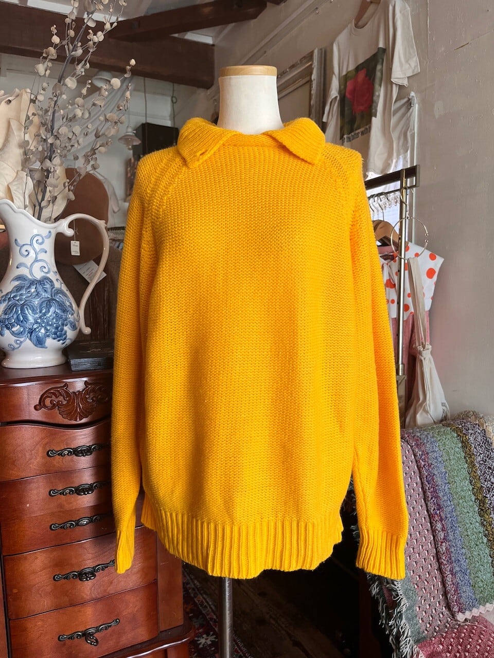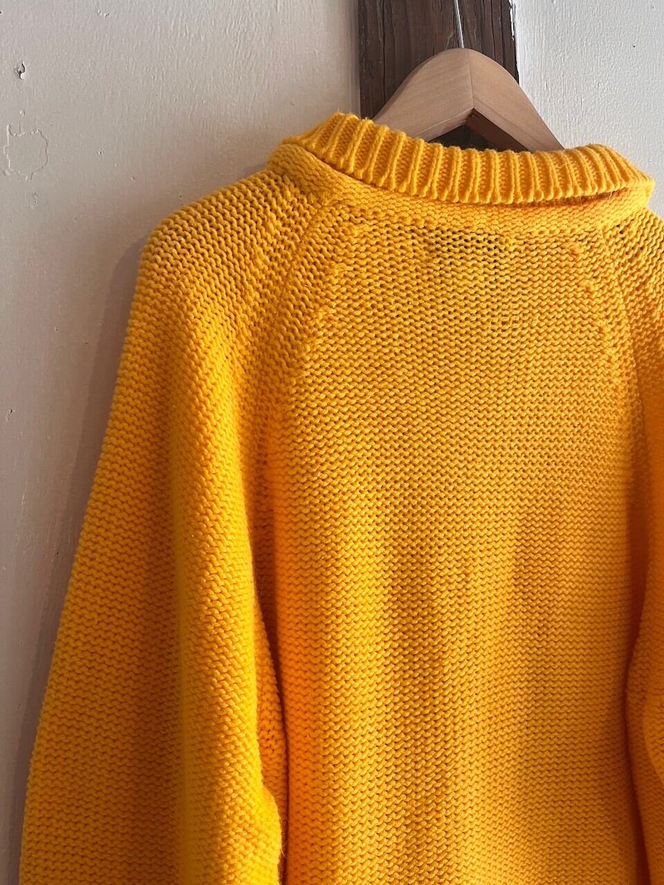90s USA mustard knit/マスタードイエローの襟デザインニット