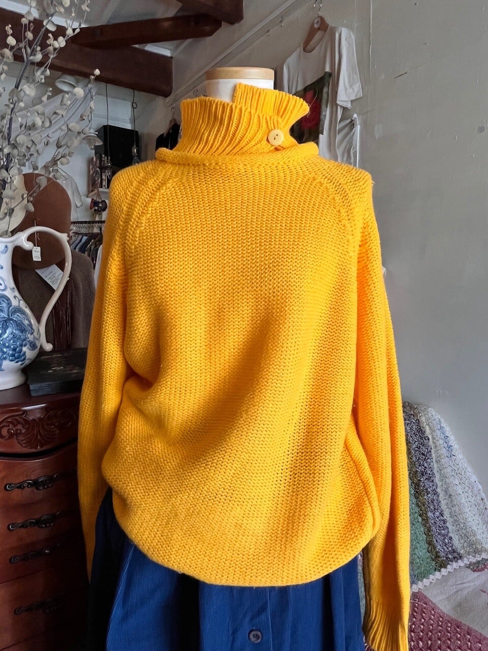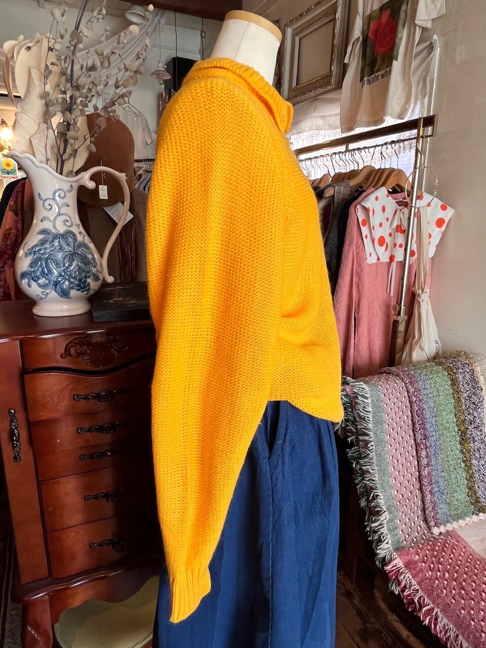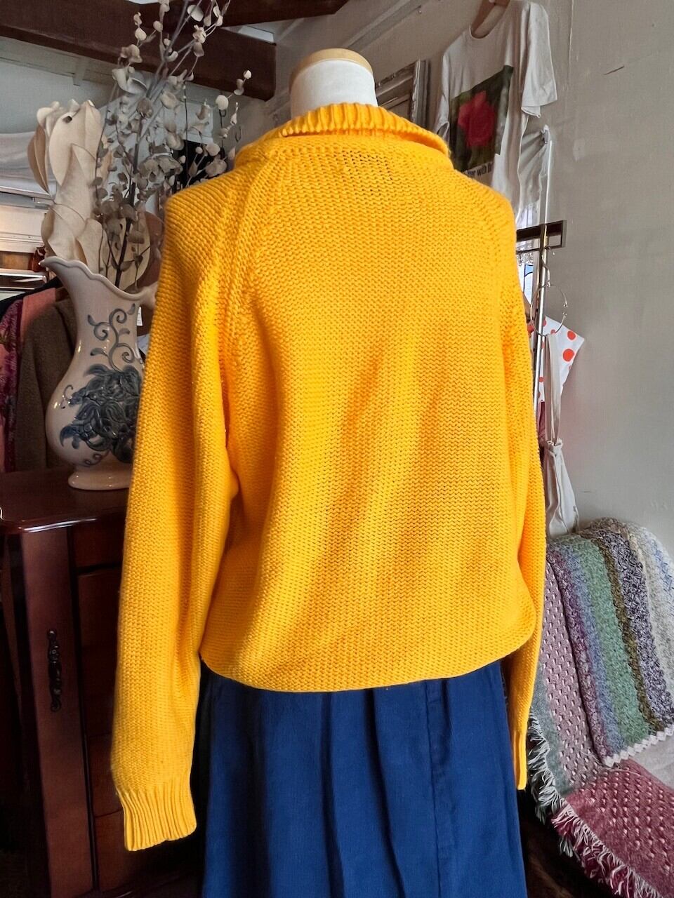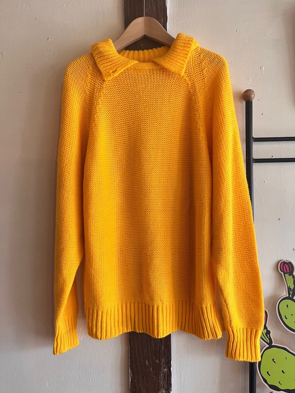 90s USA mustard knit/マスタードイエローの襟デザインニット