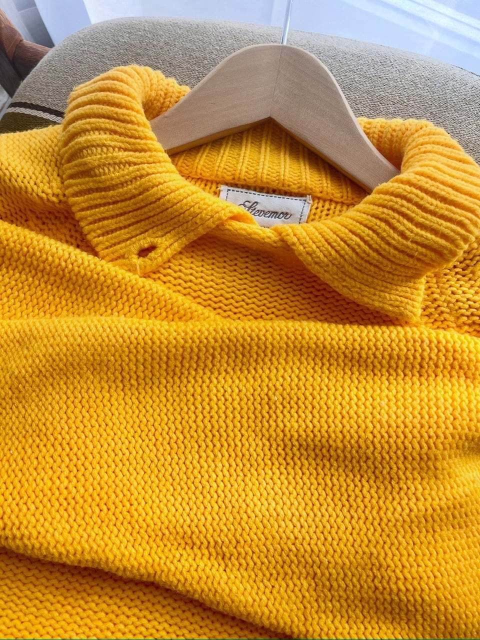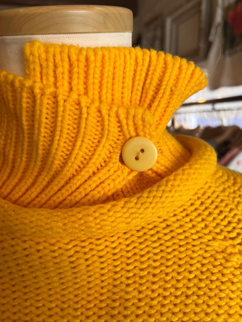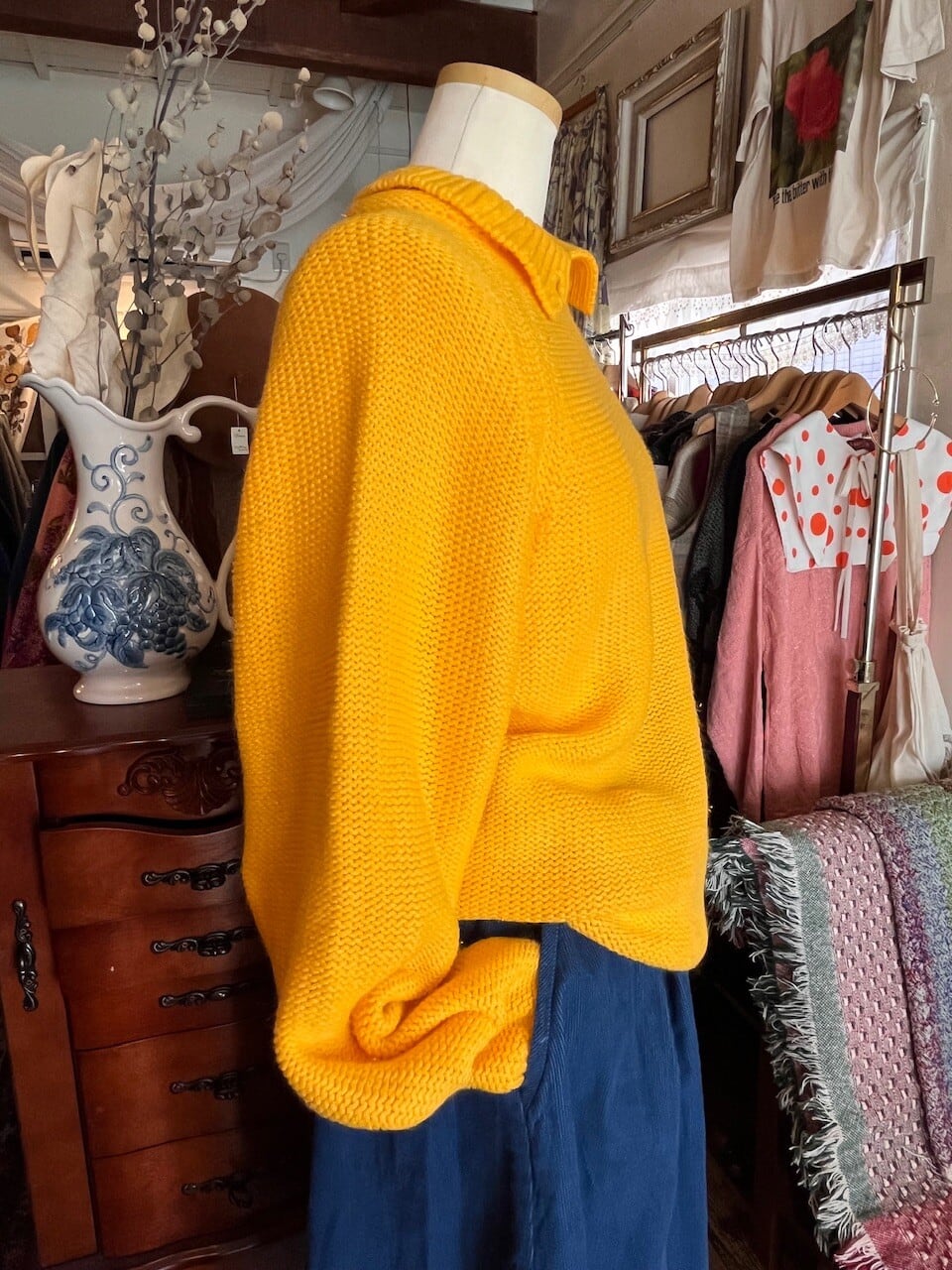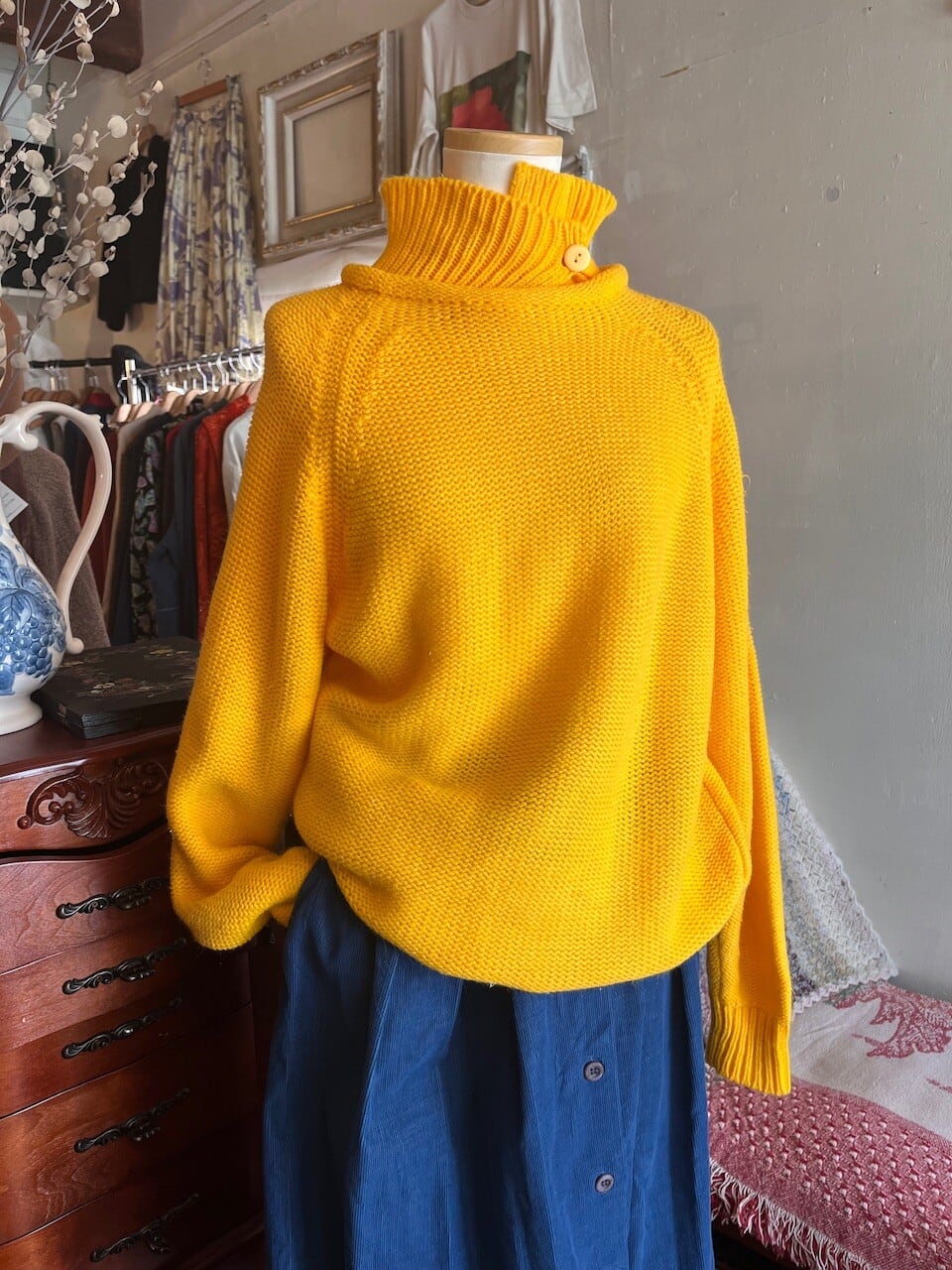 90s USA mustard knit/マスタードイエローの襟デザインニット