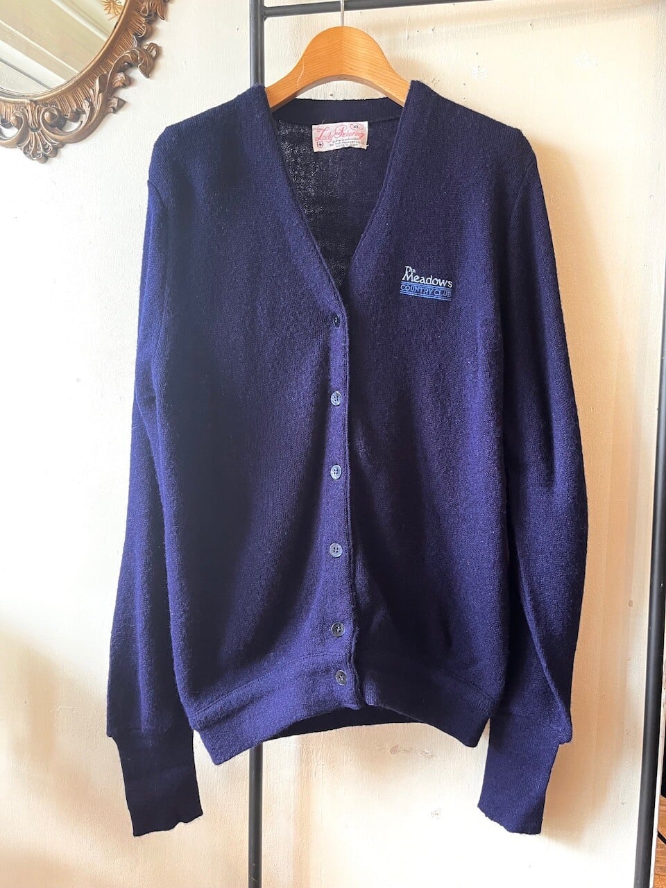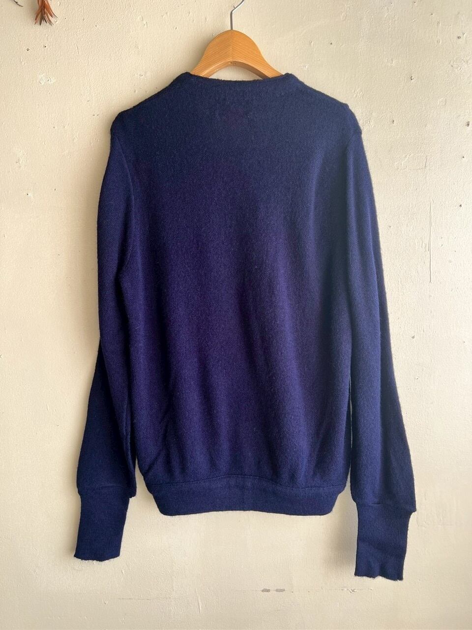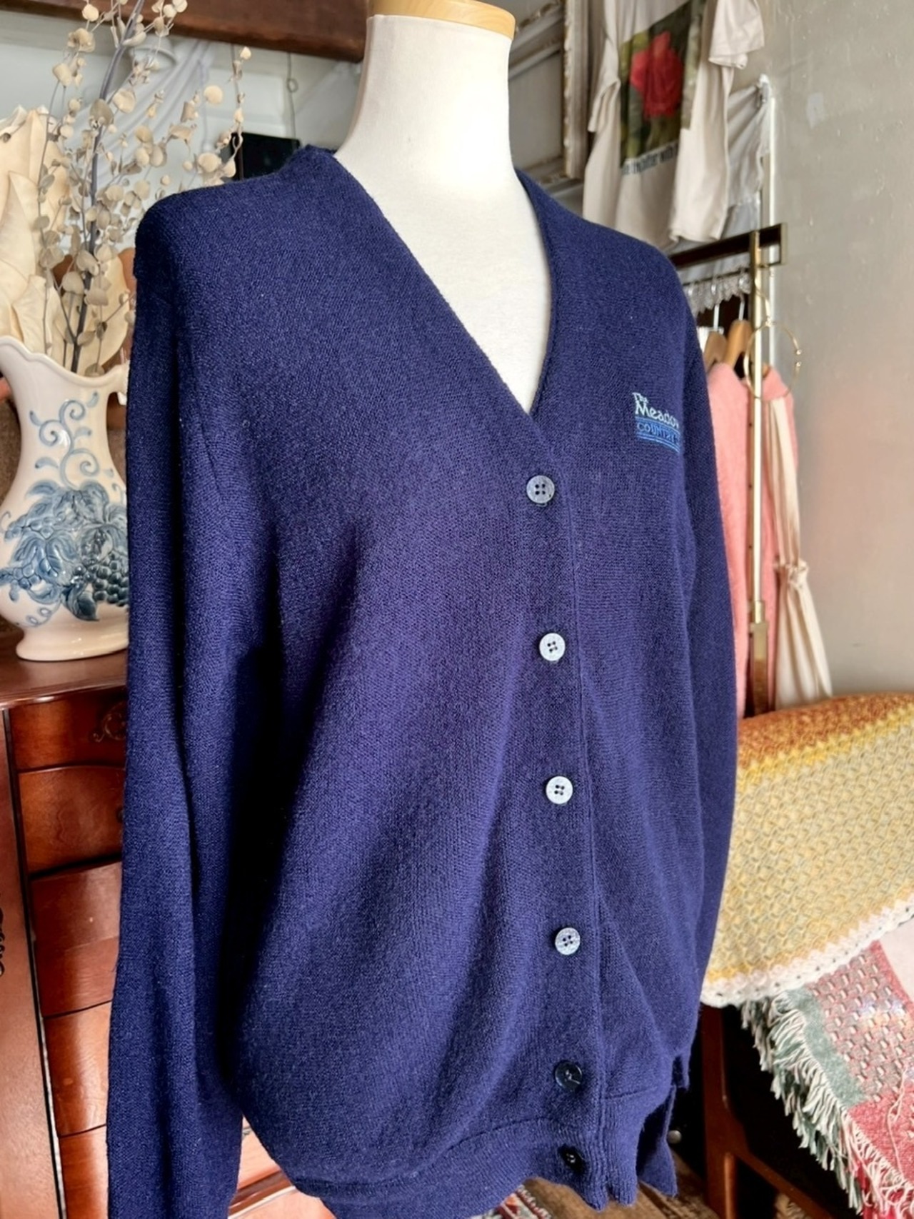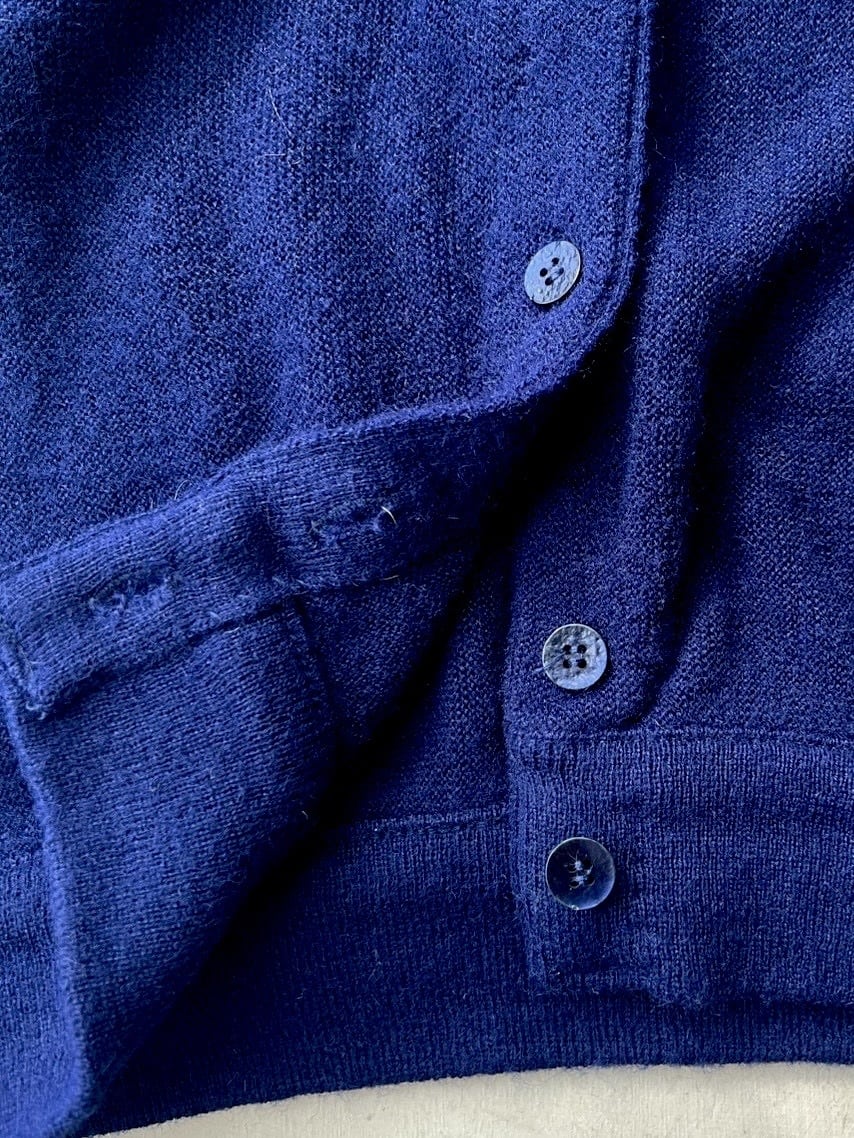 made in USA 80s dark navy cardigan /刺繍ロゴ入りヴィンテージニットカーディガン