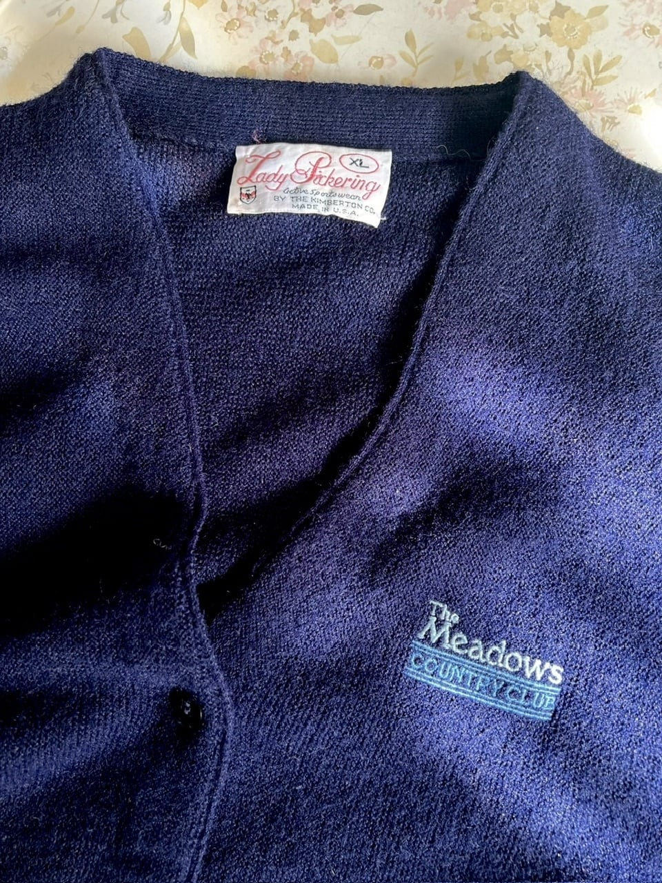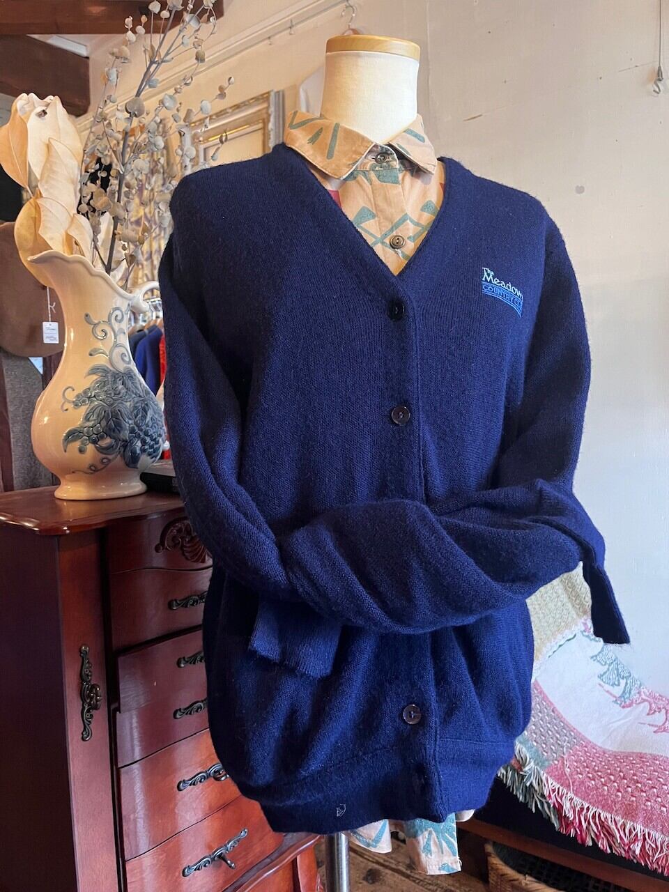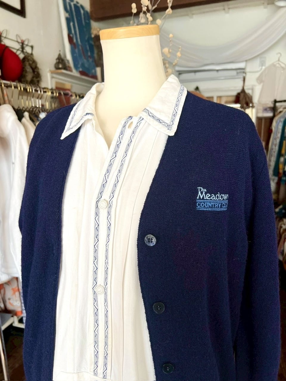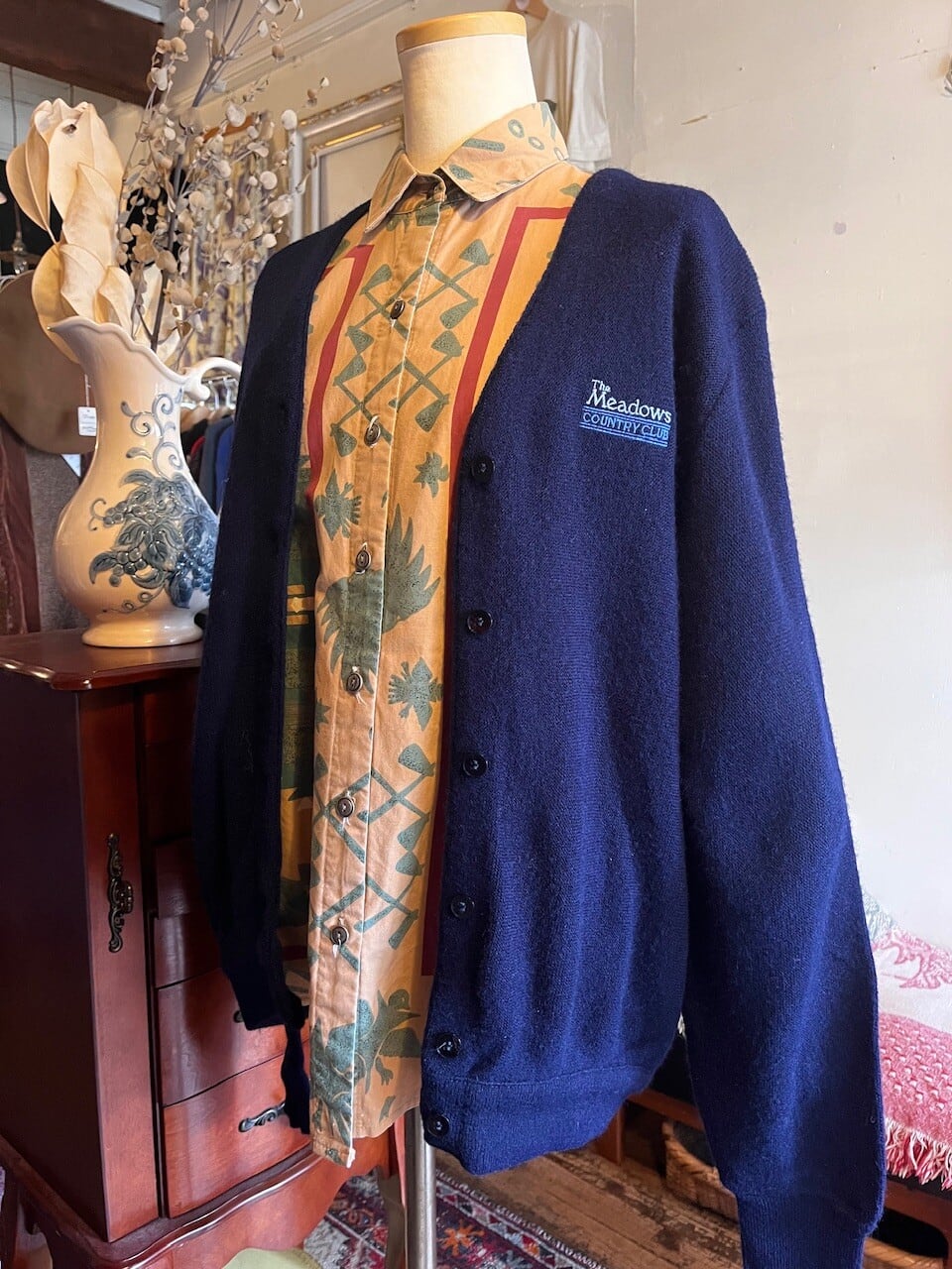 80年代のアメリカ製、刺繍ロゴ入りニットカーディガン。