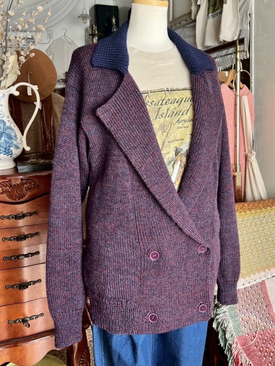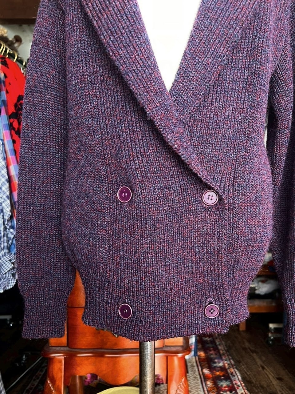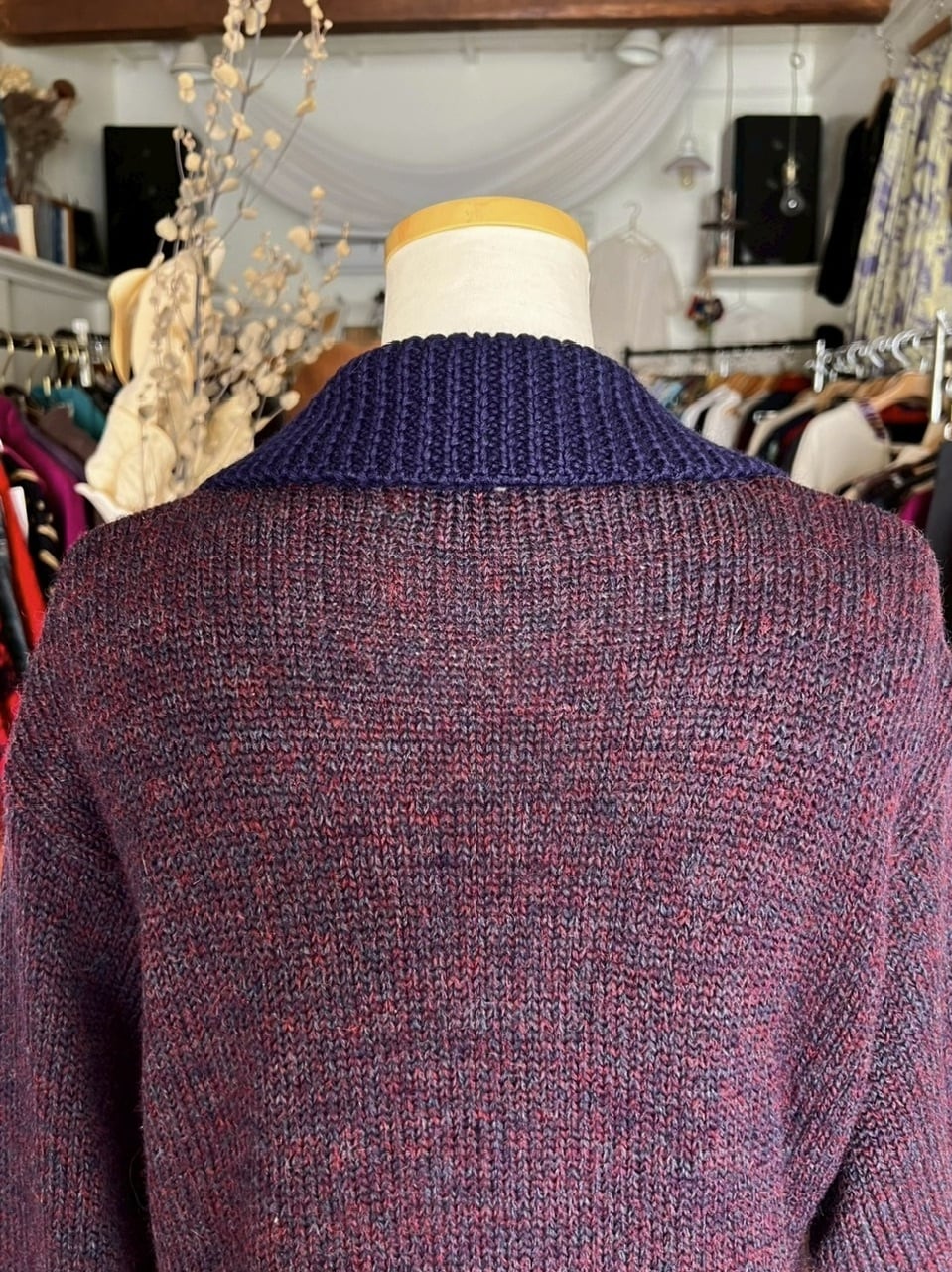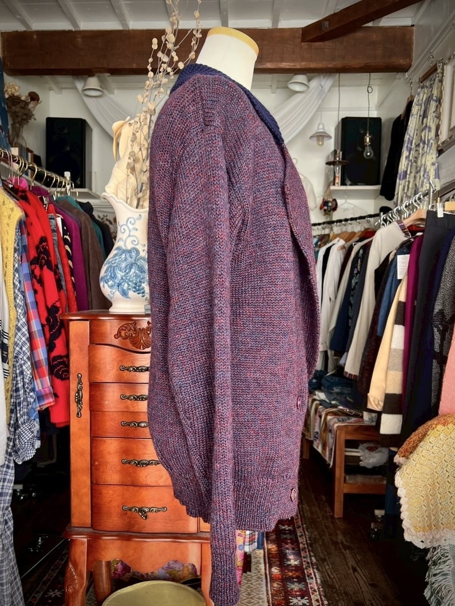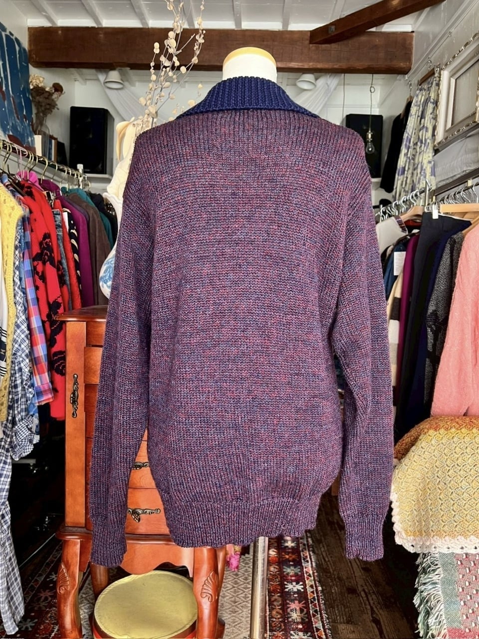 80-90s shawl collar knit jacket /ミックスカラーとダークネイビーのジャケットニットカーディガン