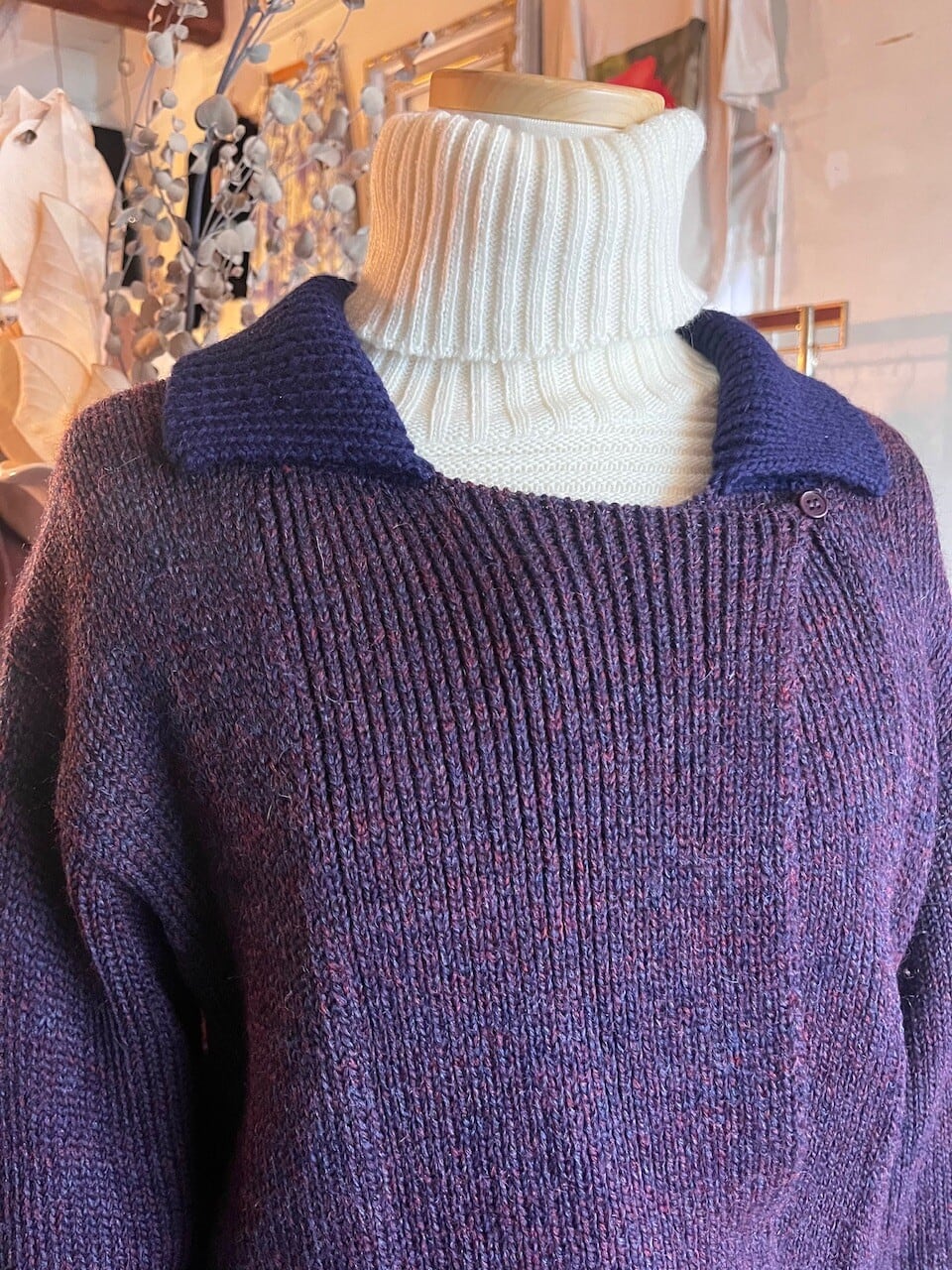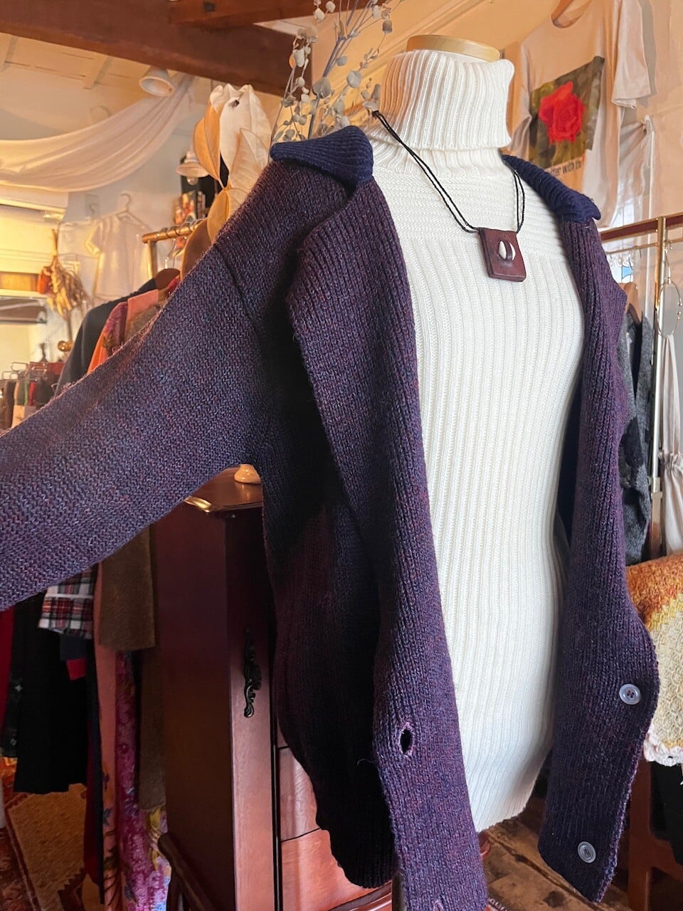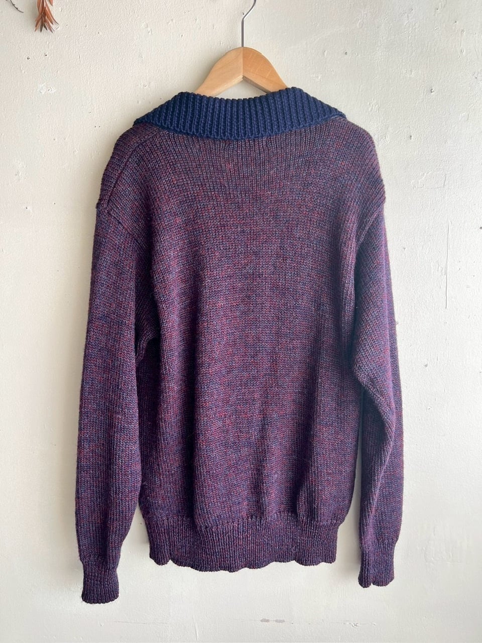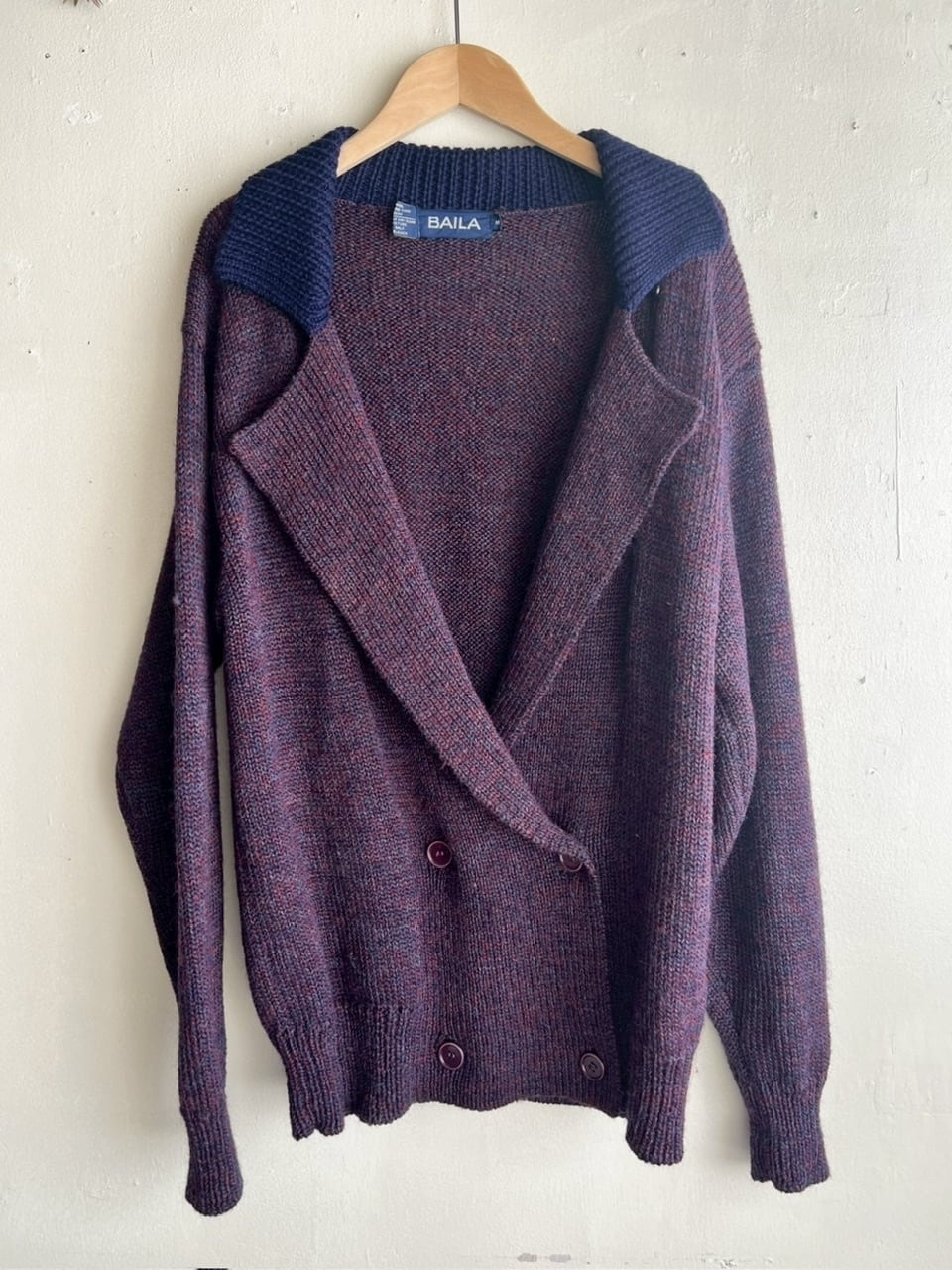 80-90s shawl collar knit jacket /ミックスカラーとダークネイビーのジャケットニットカーディガン
