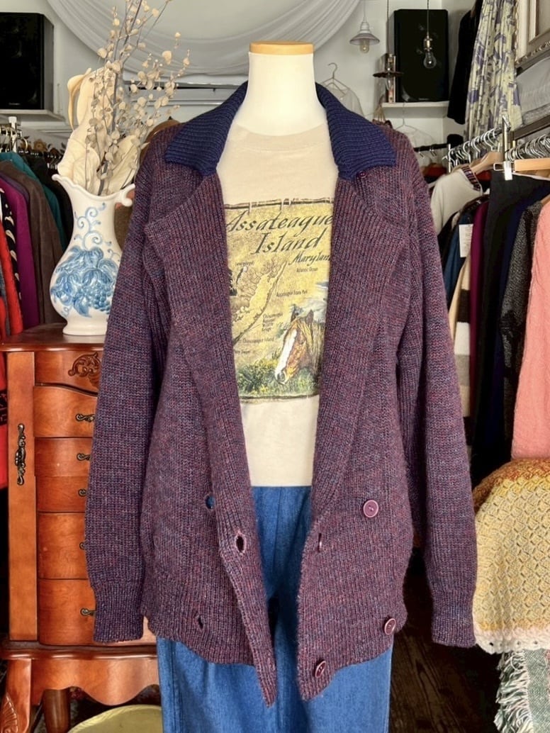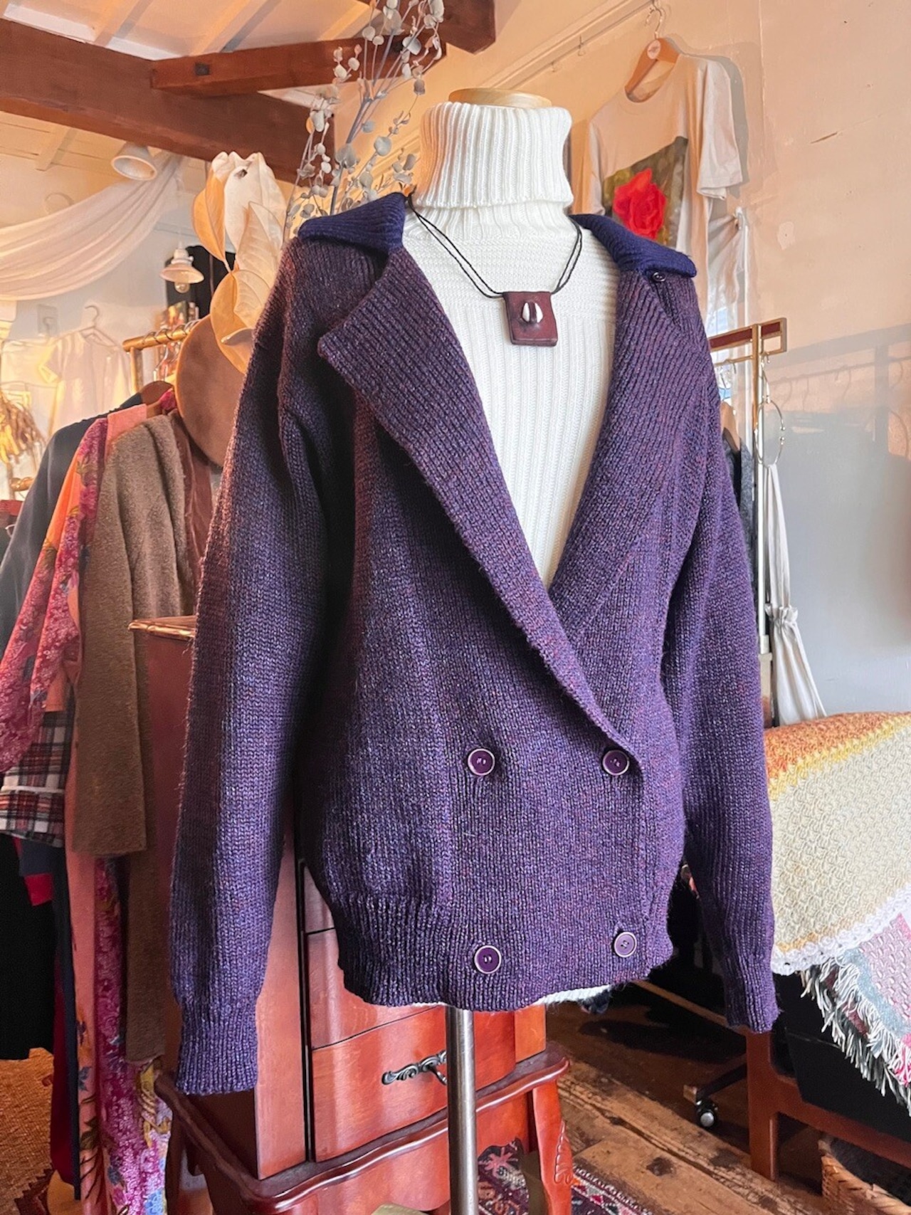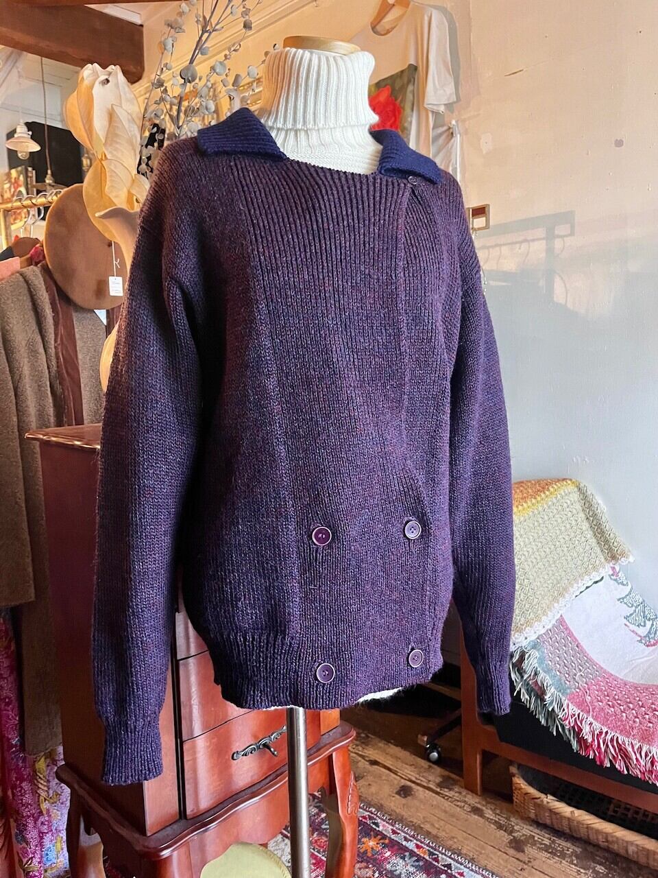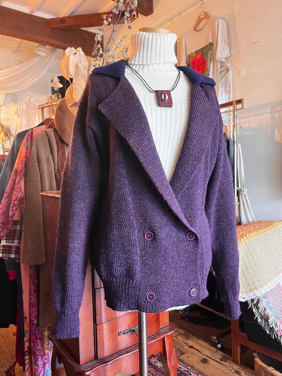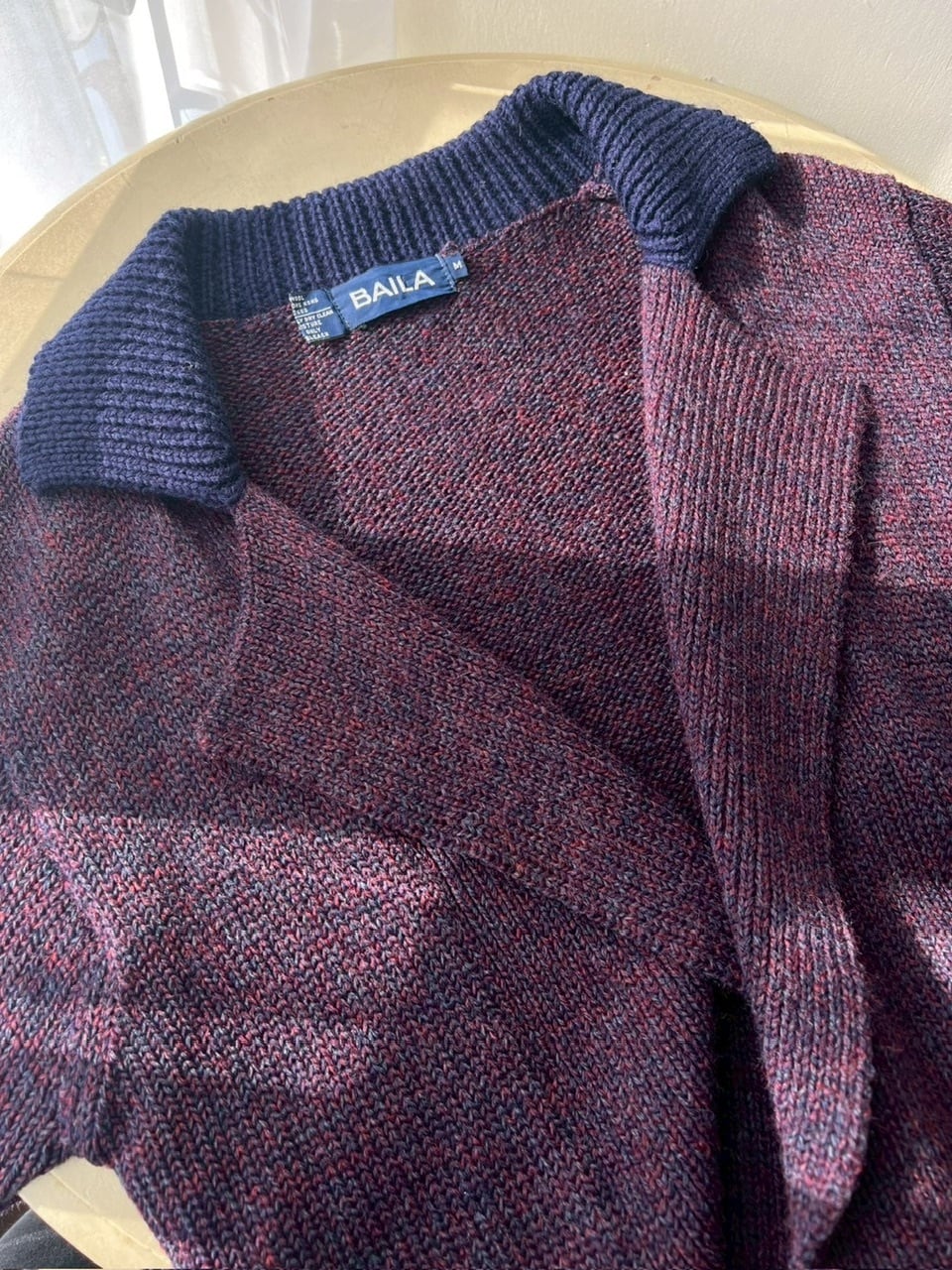 80-90s shawl collar knit jacket /ミックスカラーとダークネイビーのジャケットニットカーディガン