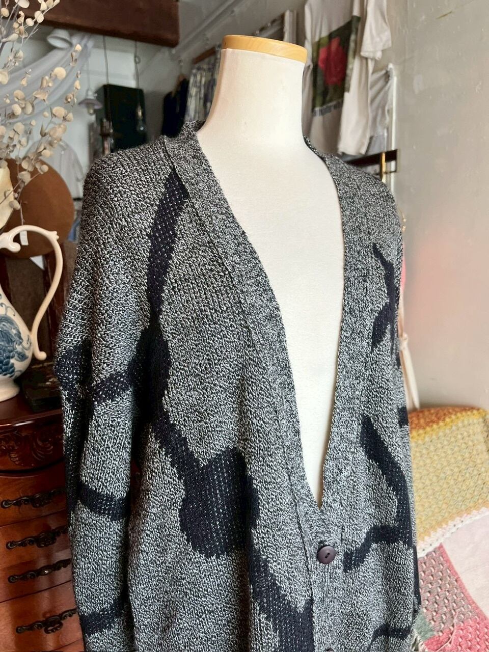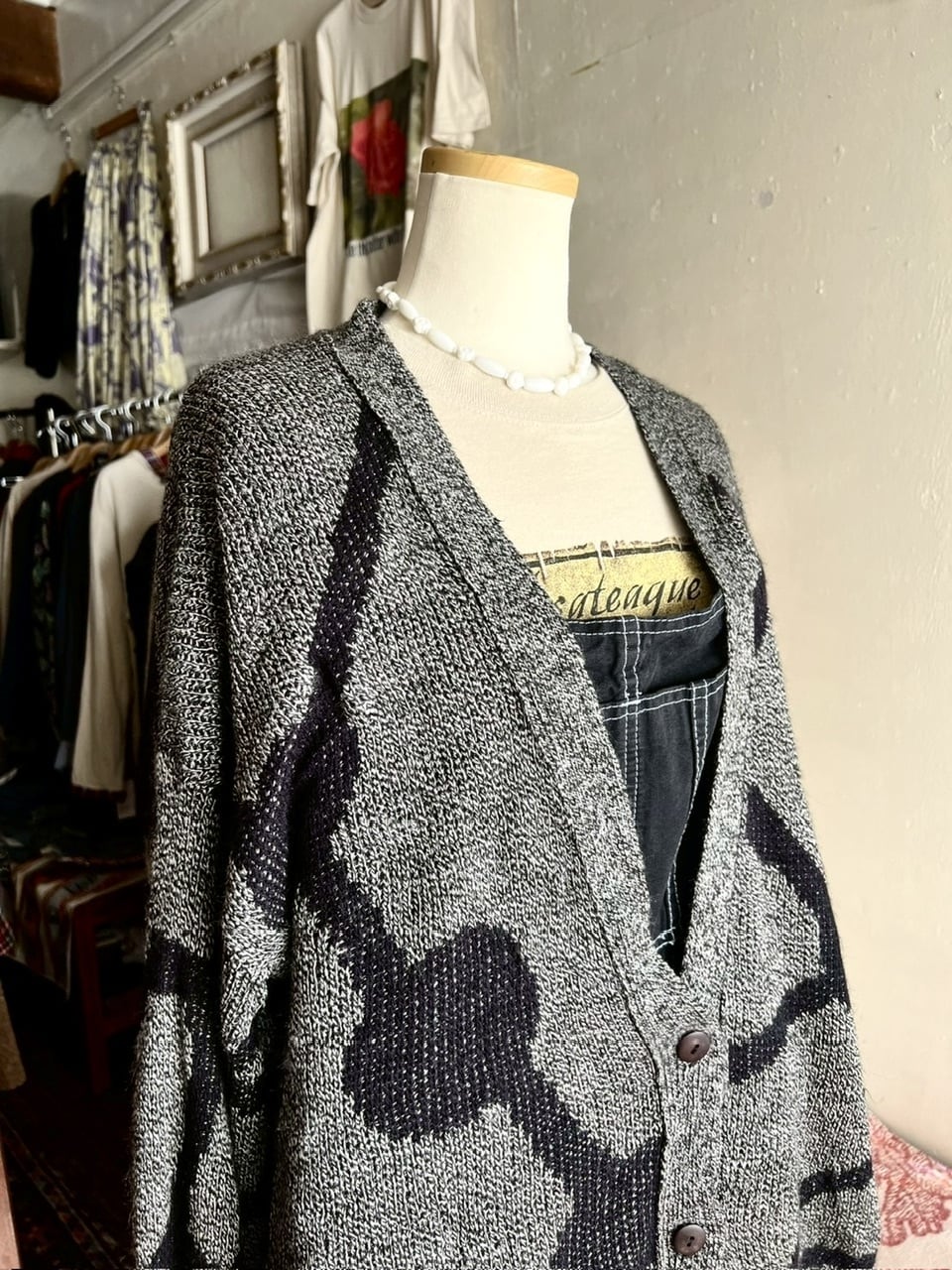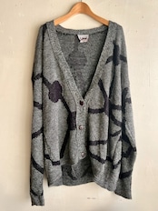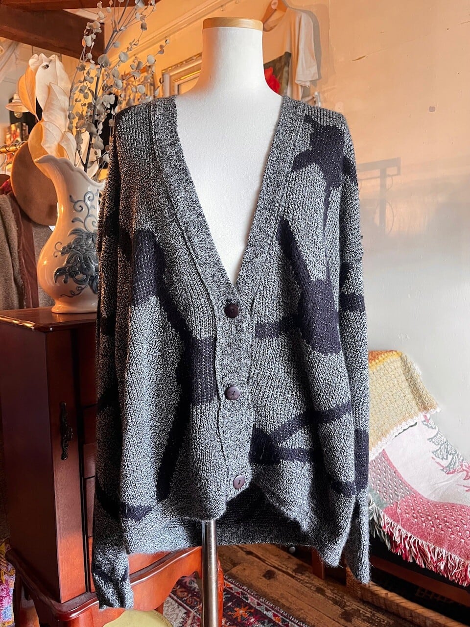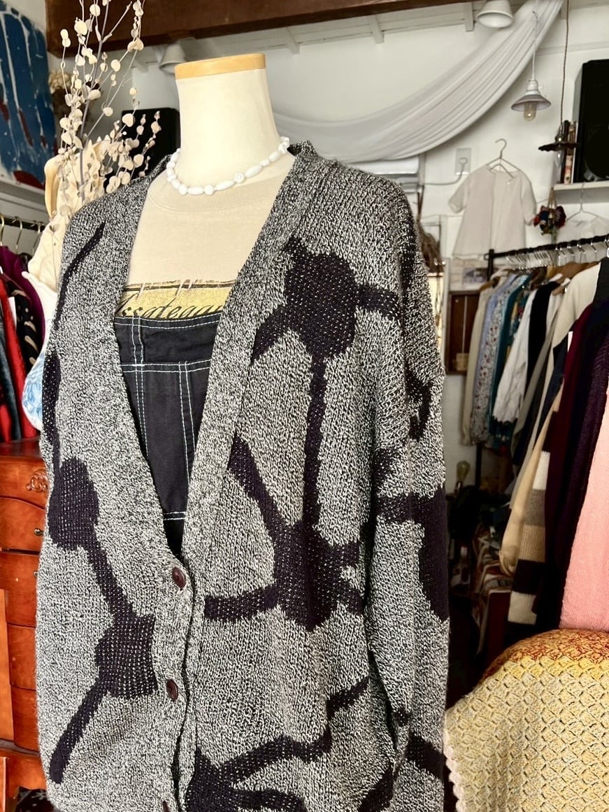 made in USA 80s knit cardigan/ブラック&グレーのミックスヴィンテージカーディガン