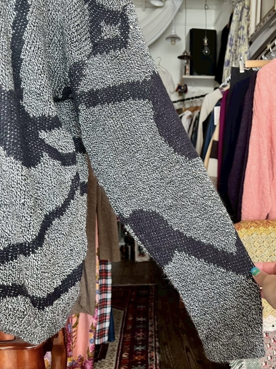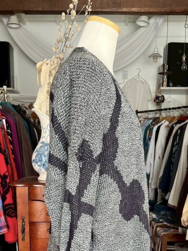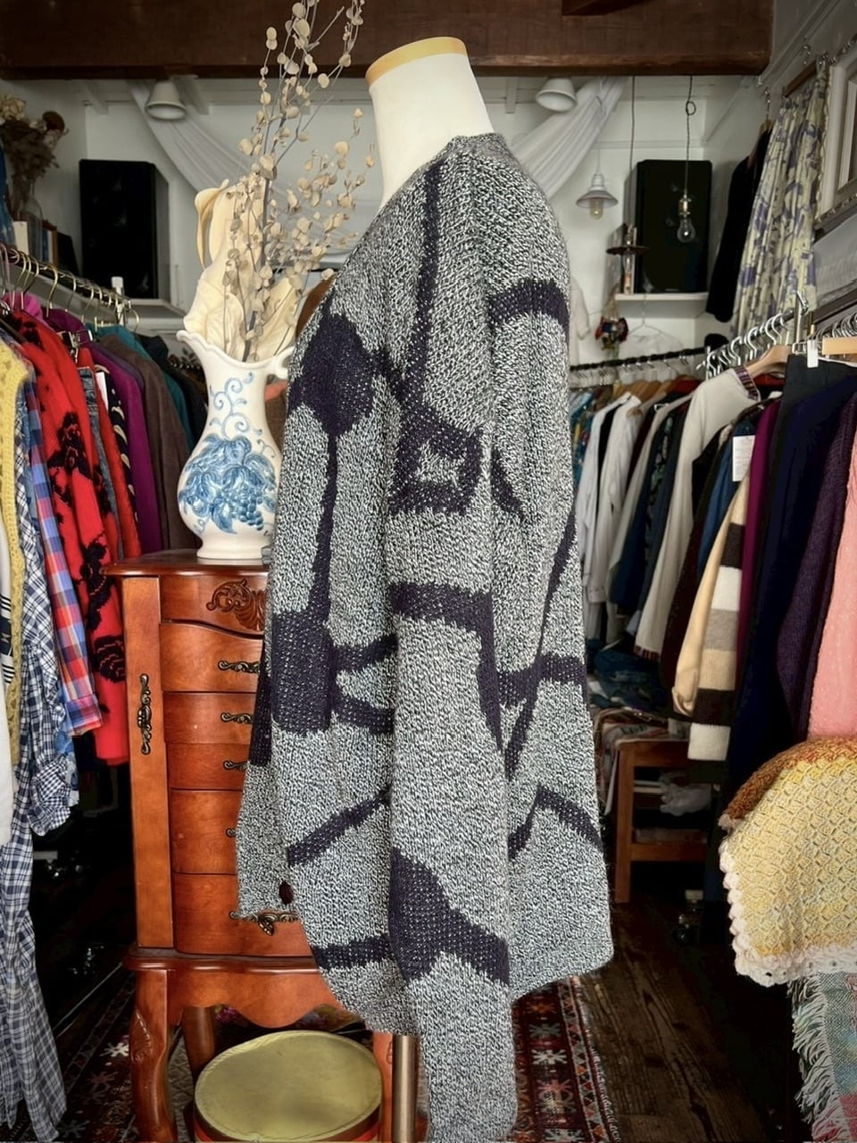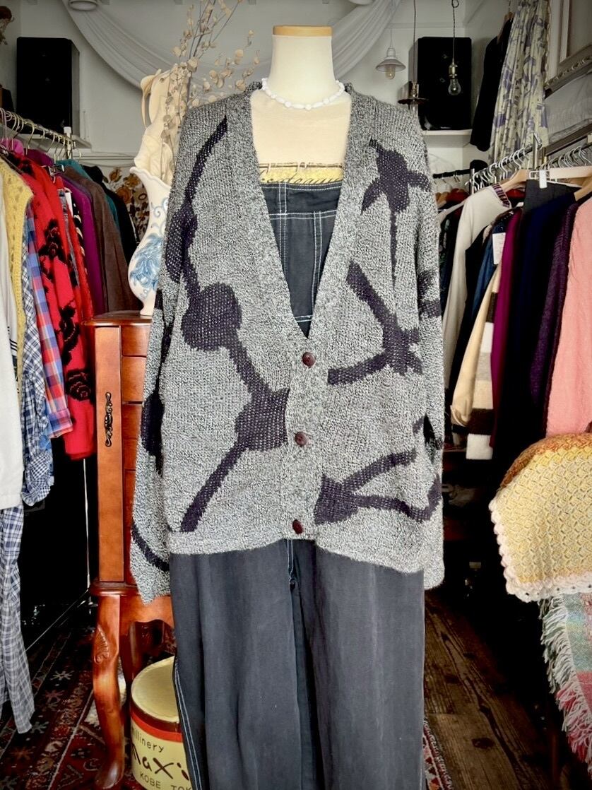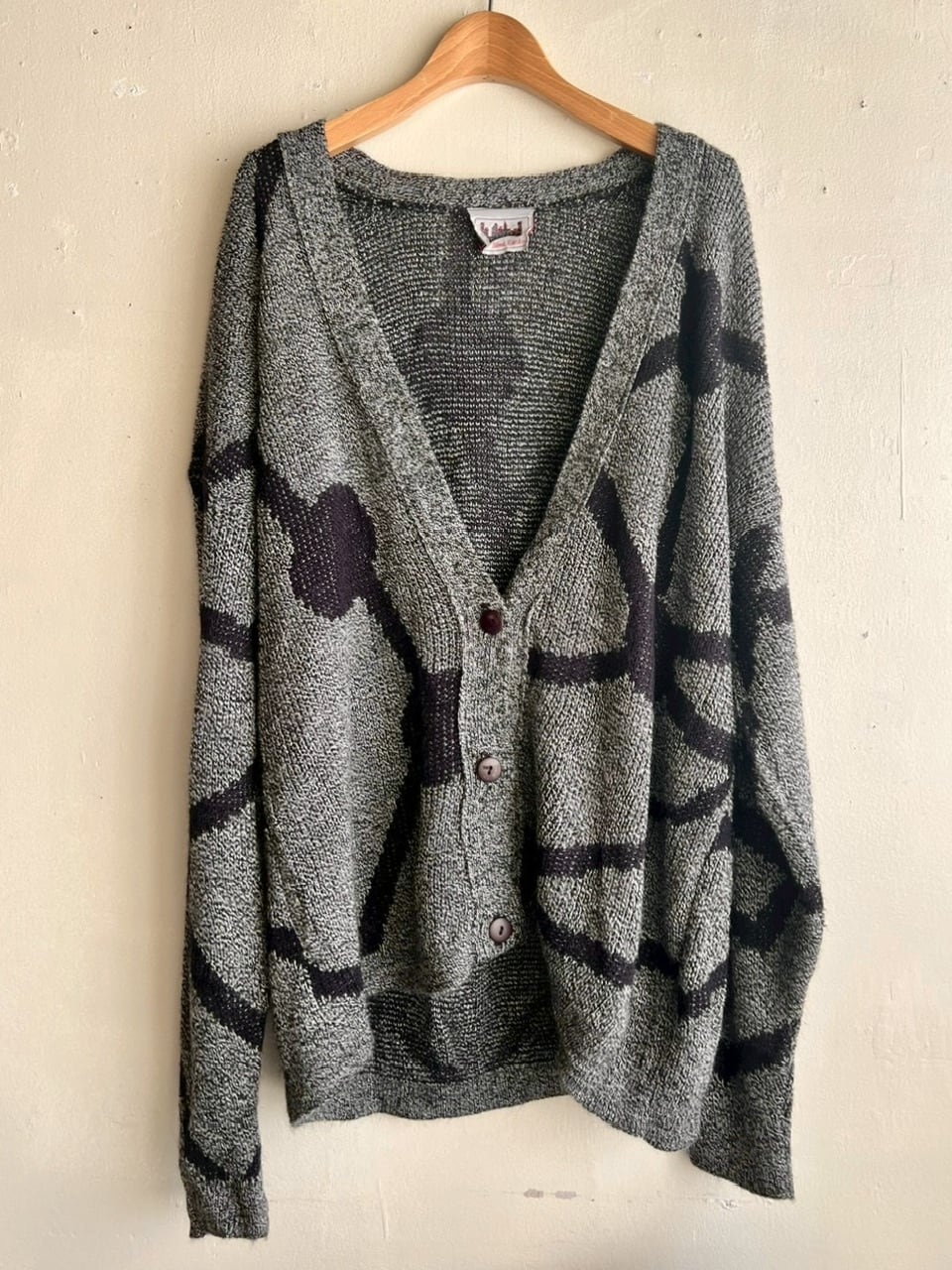 made in USA 80s knit cardigan/ブラック&グレーのミックスヴィンテージカーディガン