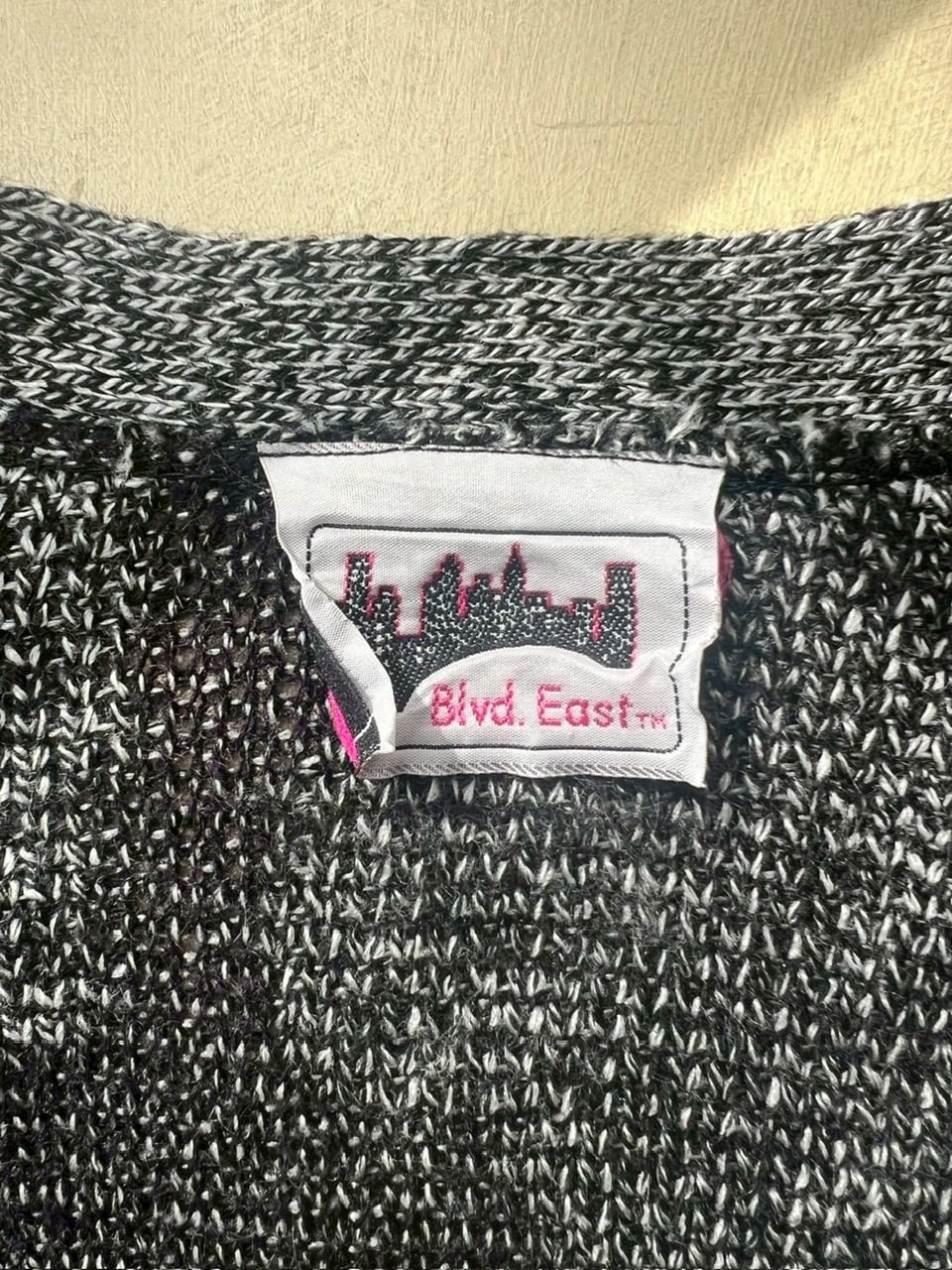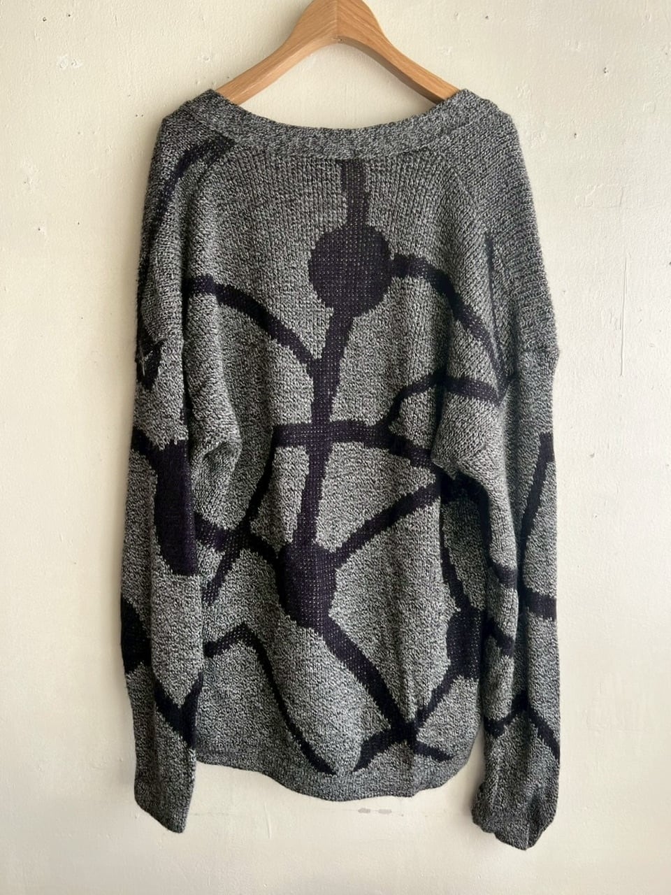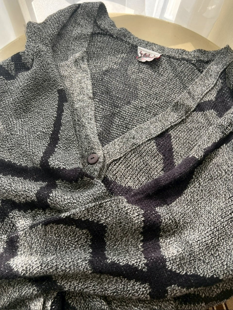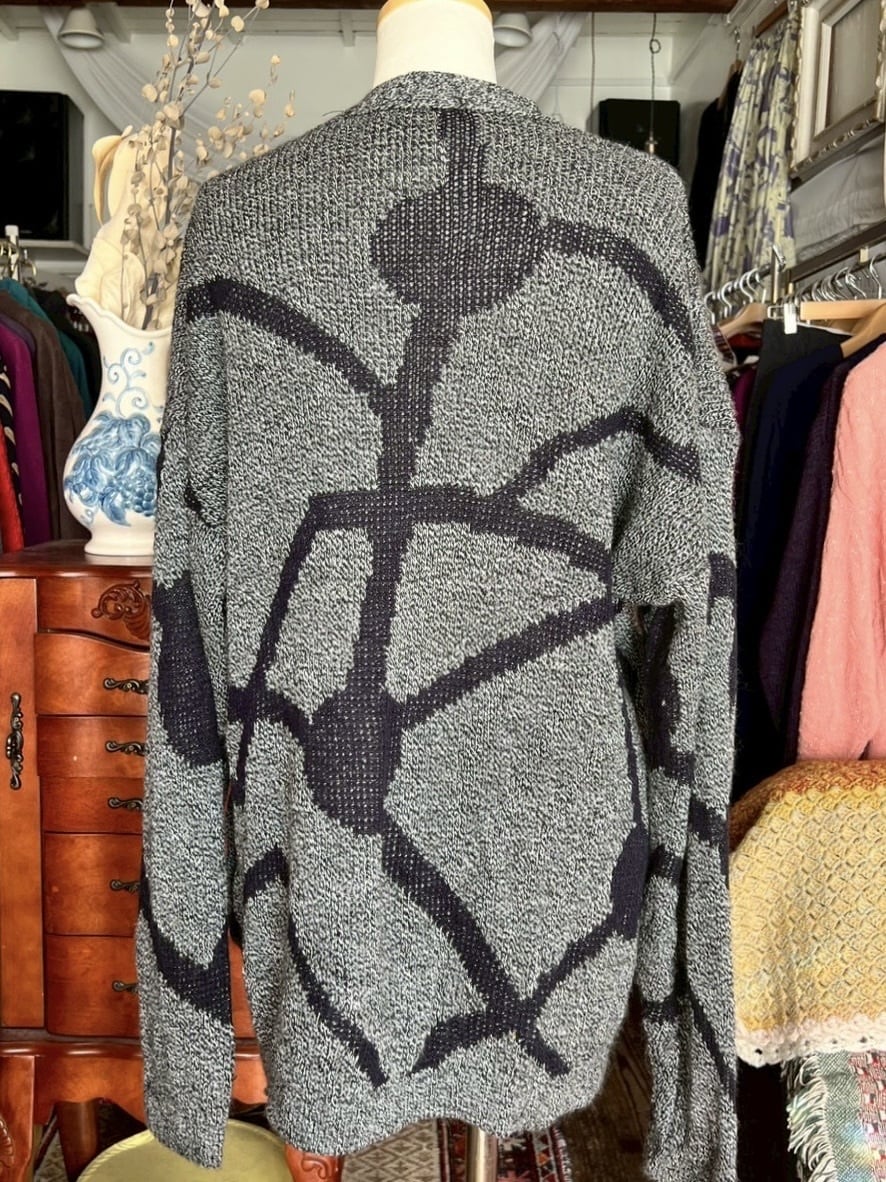 made in USA 80s knit cardigan/ブラック&グレーのミックスヴィンテージカーディガン