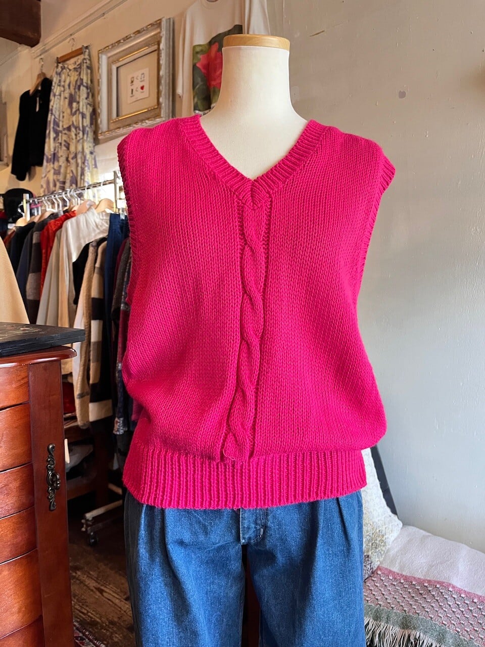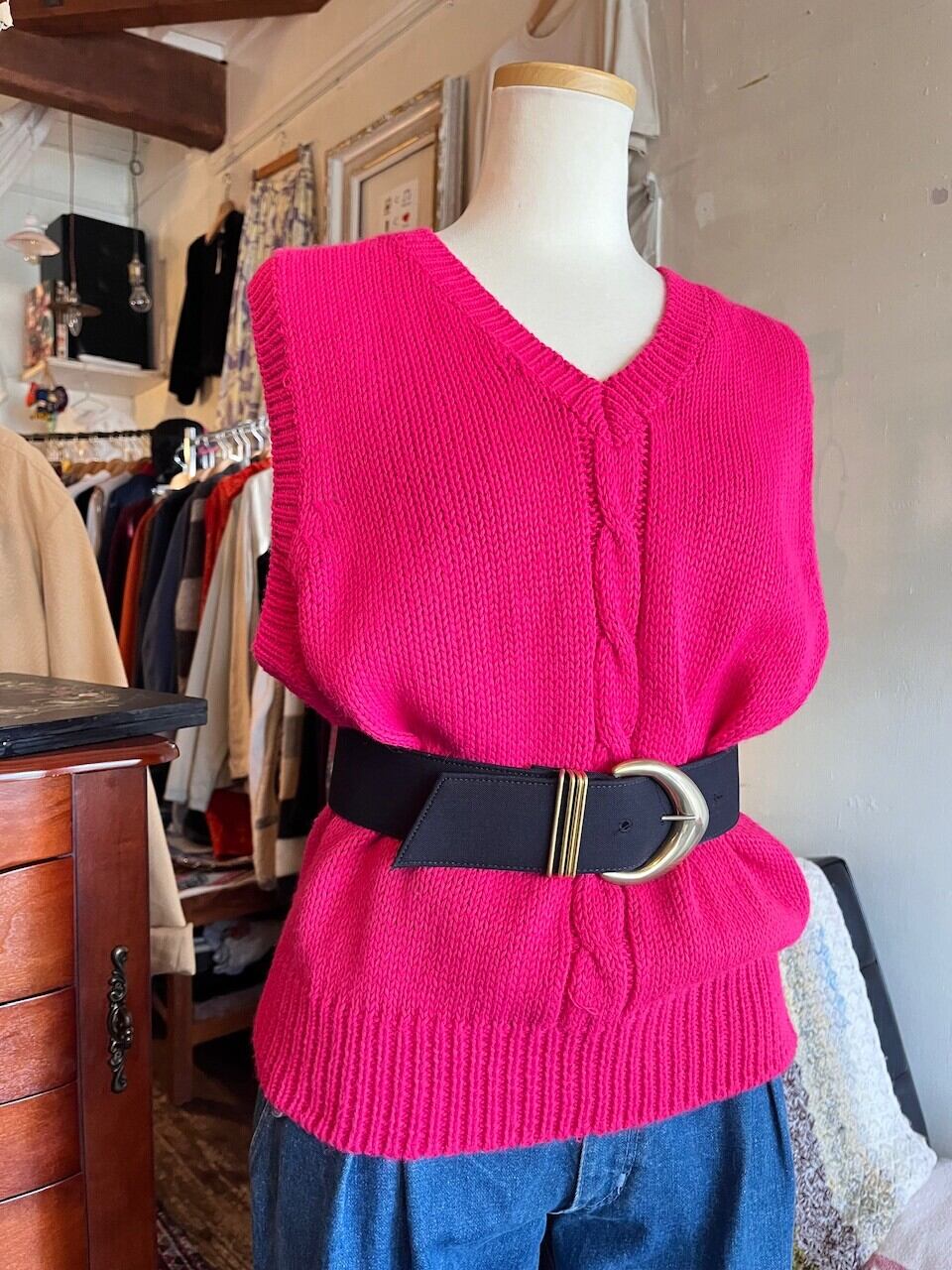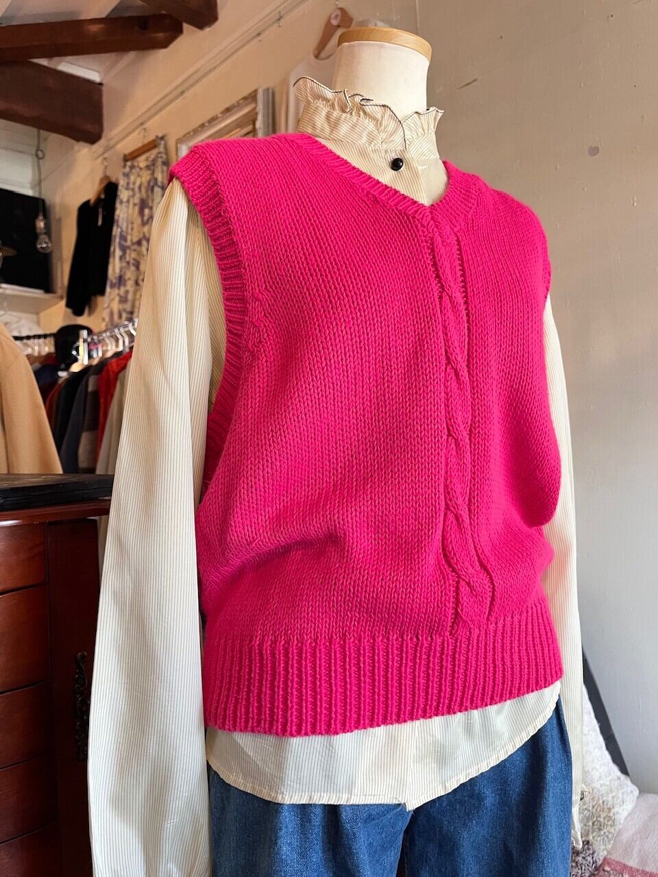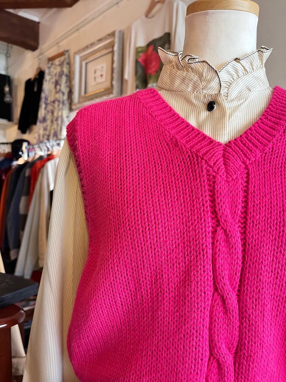 80-90s magenta pink vest/鮮やかなマゼンタピンクのアクリルベスト
