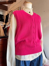 鮮やかなマゼンタピンクが目を惹く、ニットベスト。