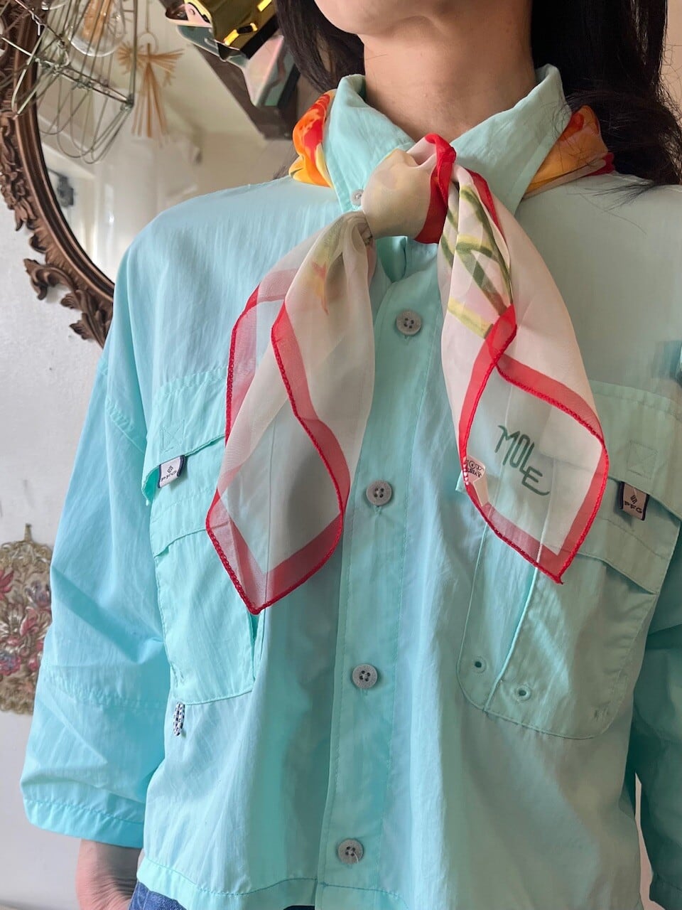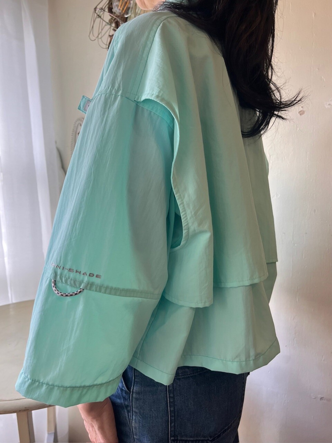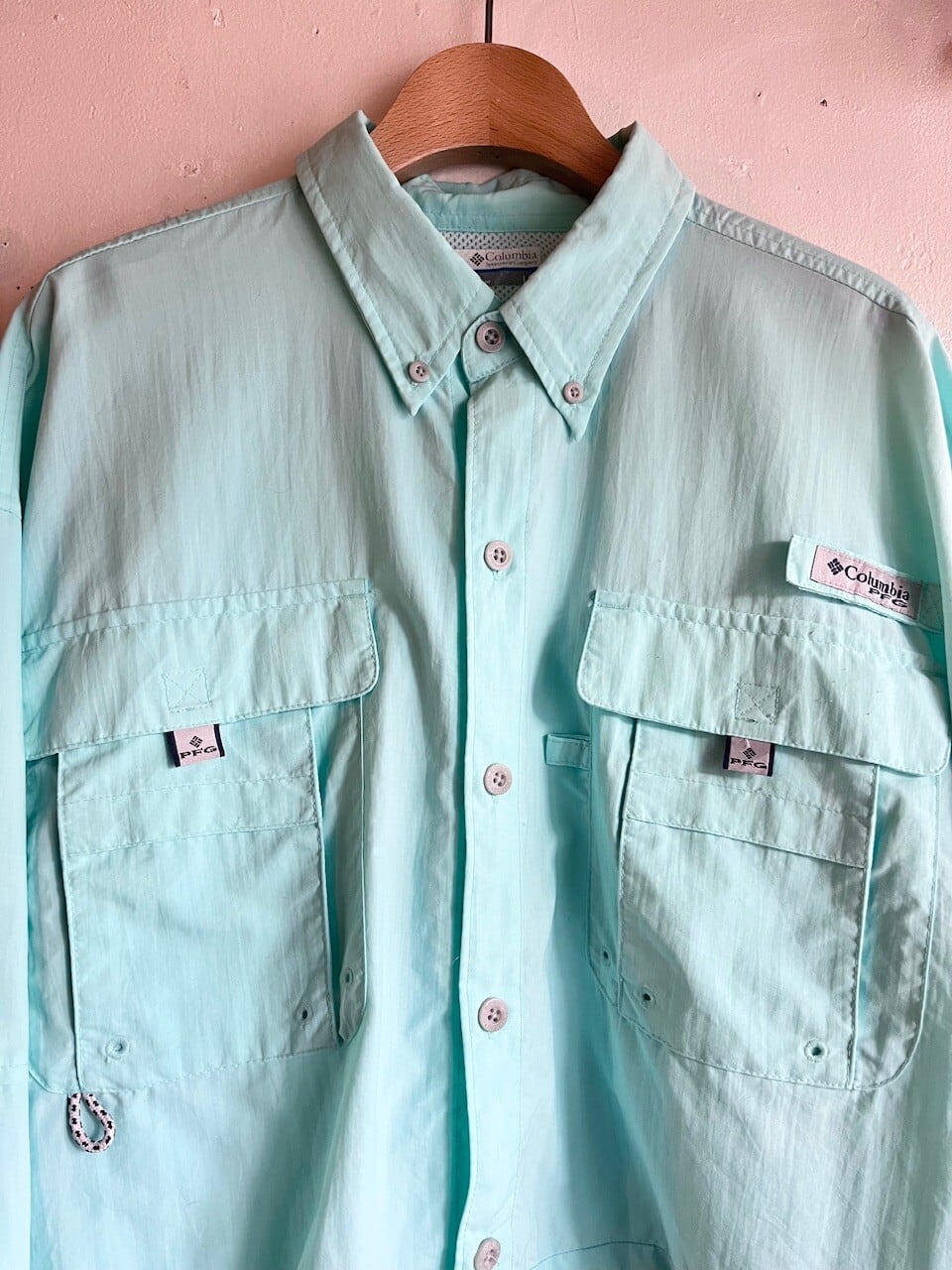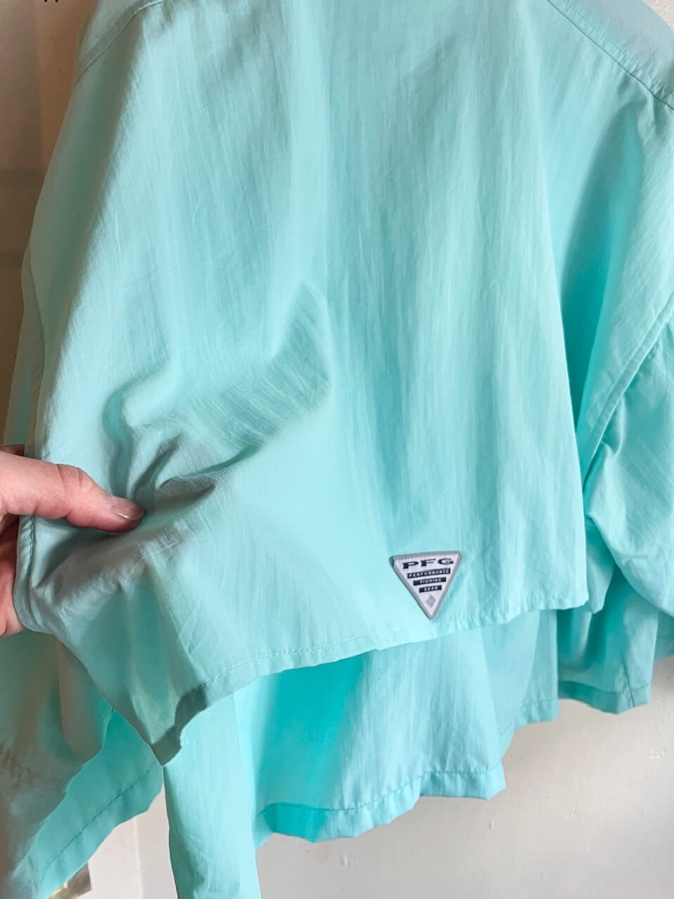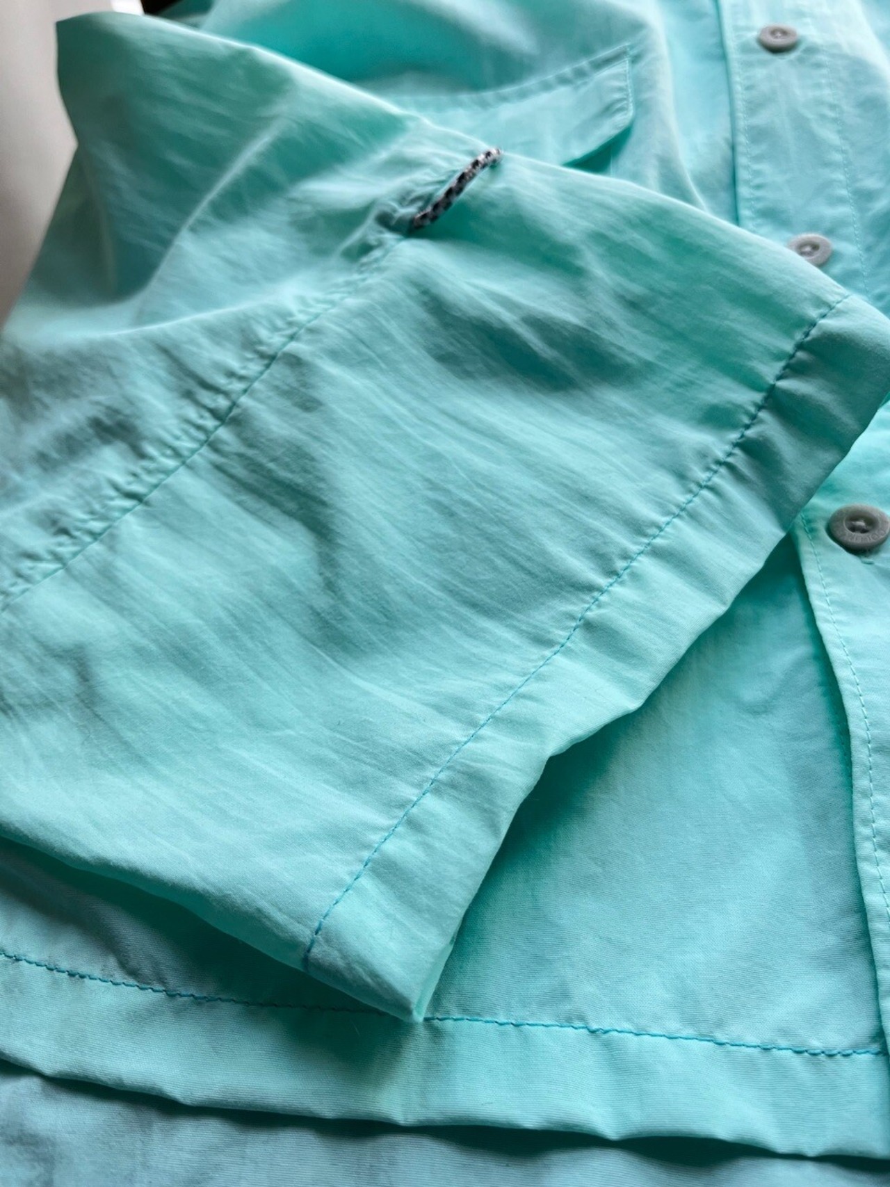 Columbia PFGのきれいなミントグリーンのフィッシングシャツをカットオフリメイク。