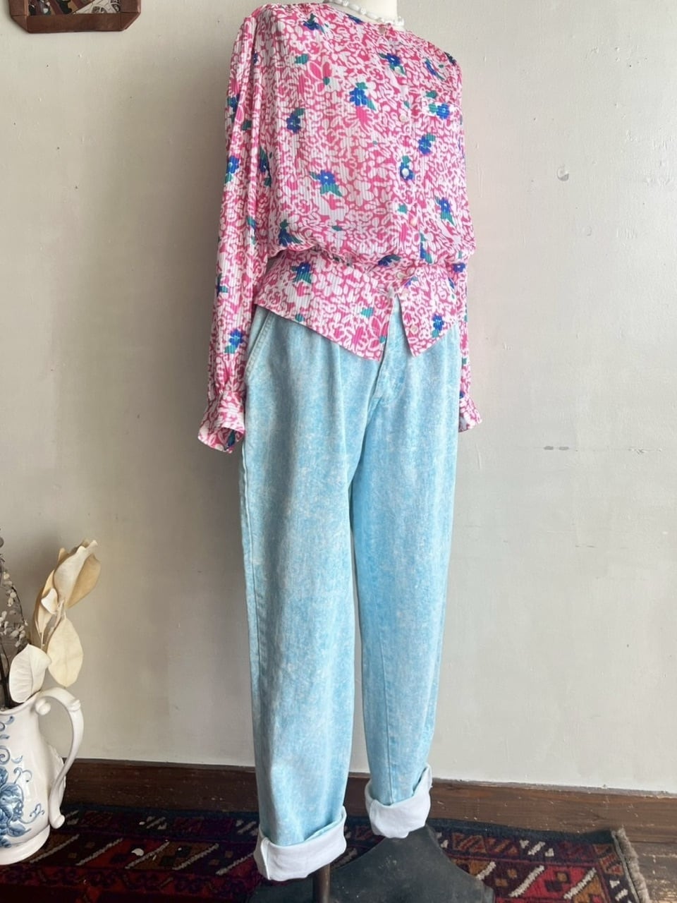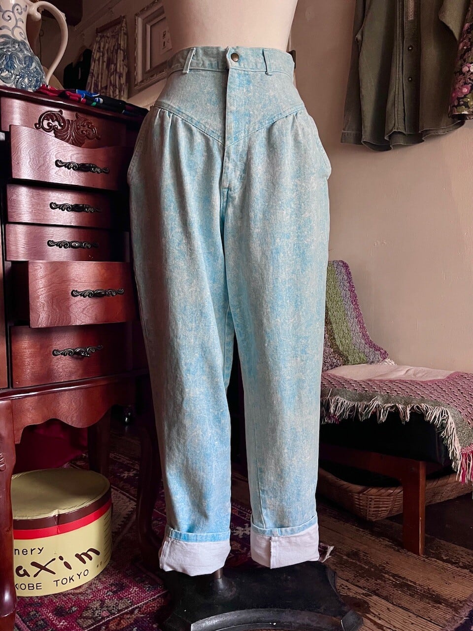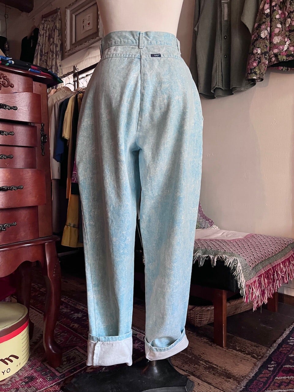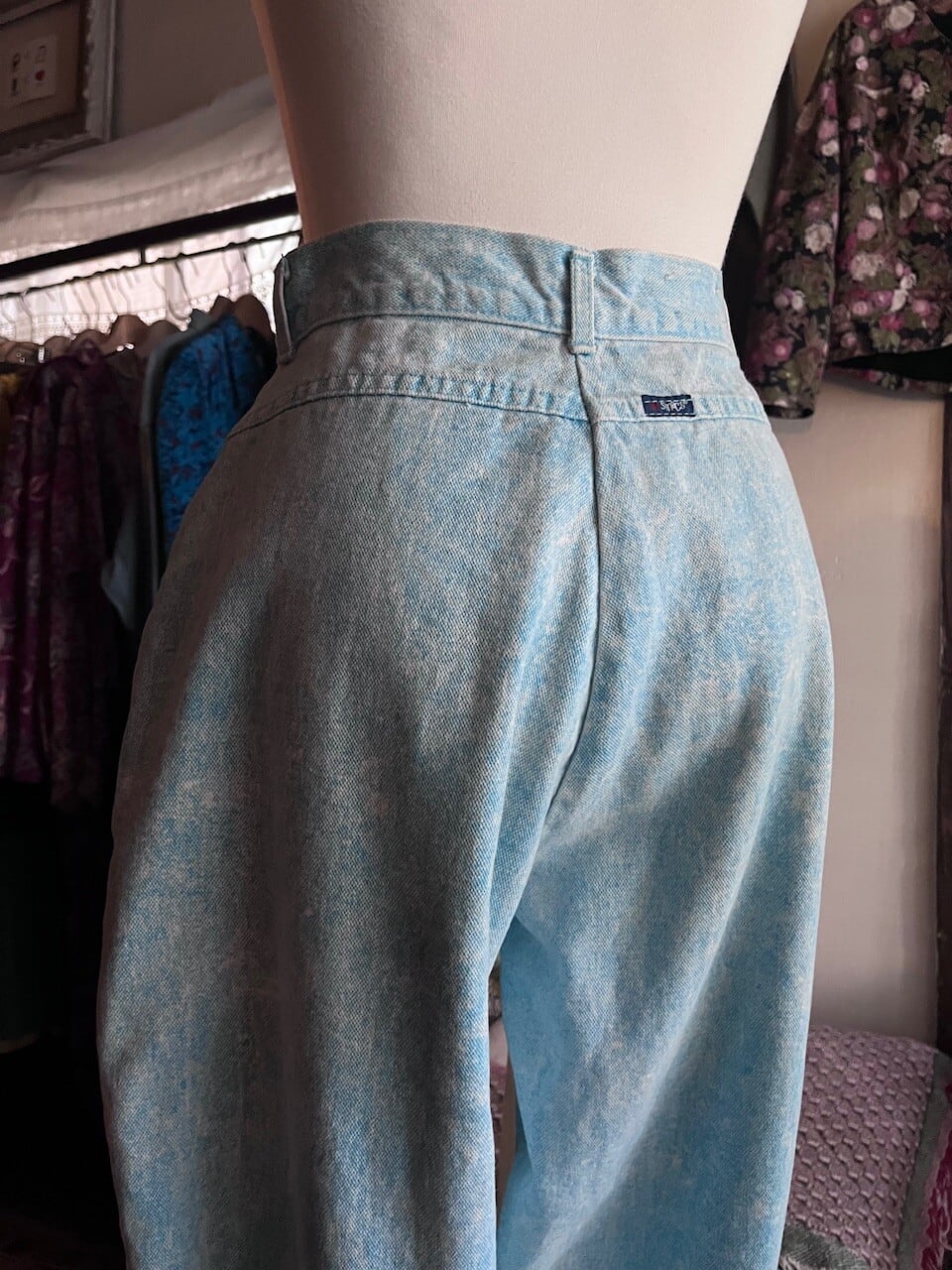 90s USA ice blue cotton pants/アメリカ製アイスブルーのケミカルウォッシュパンツ