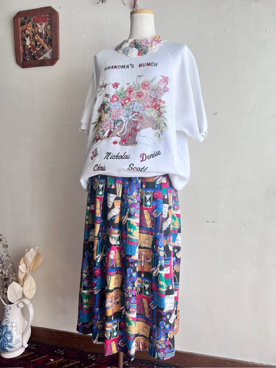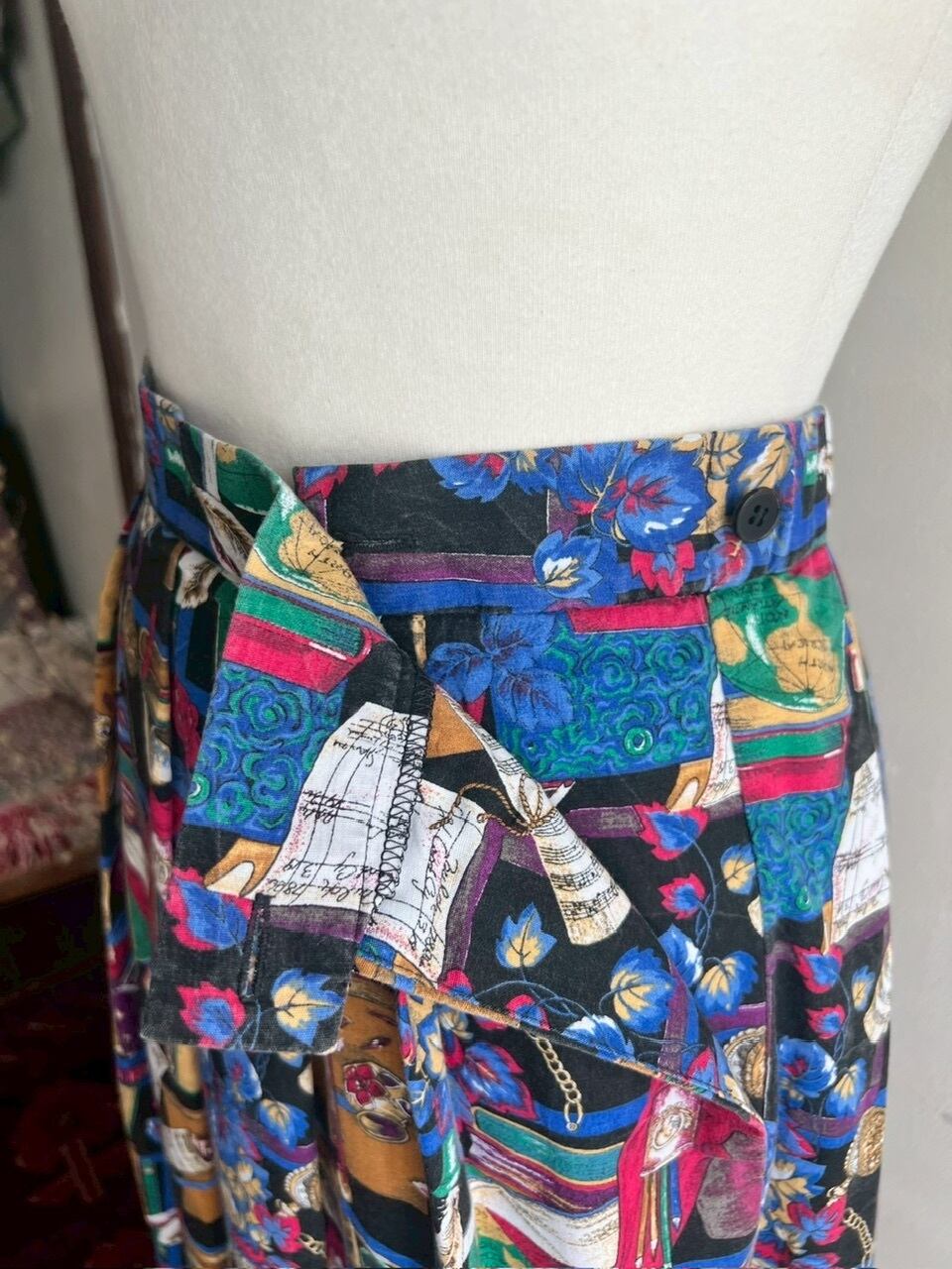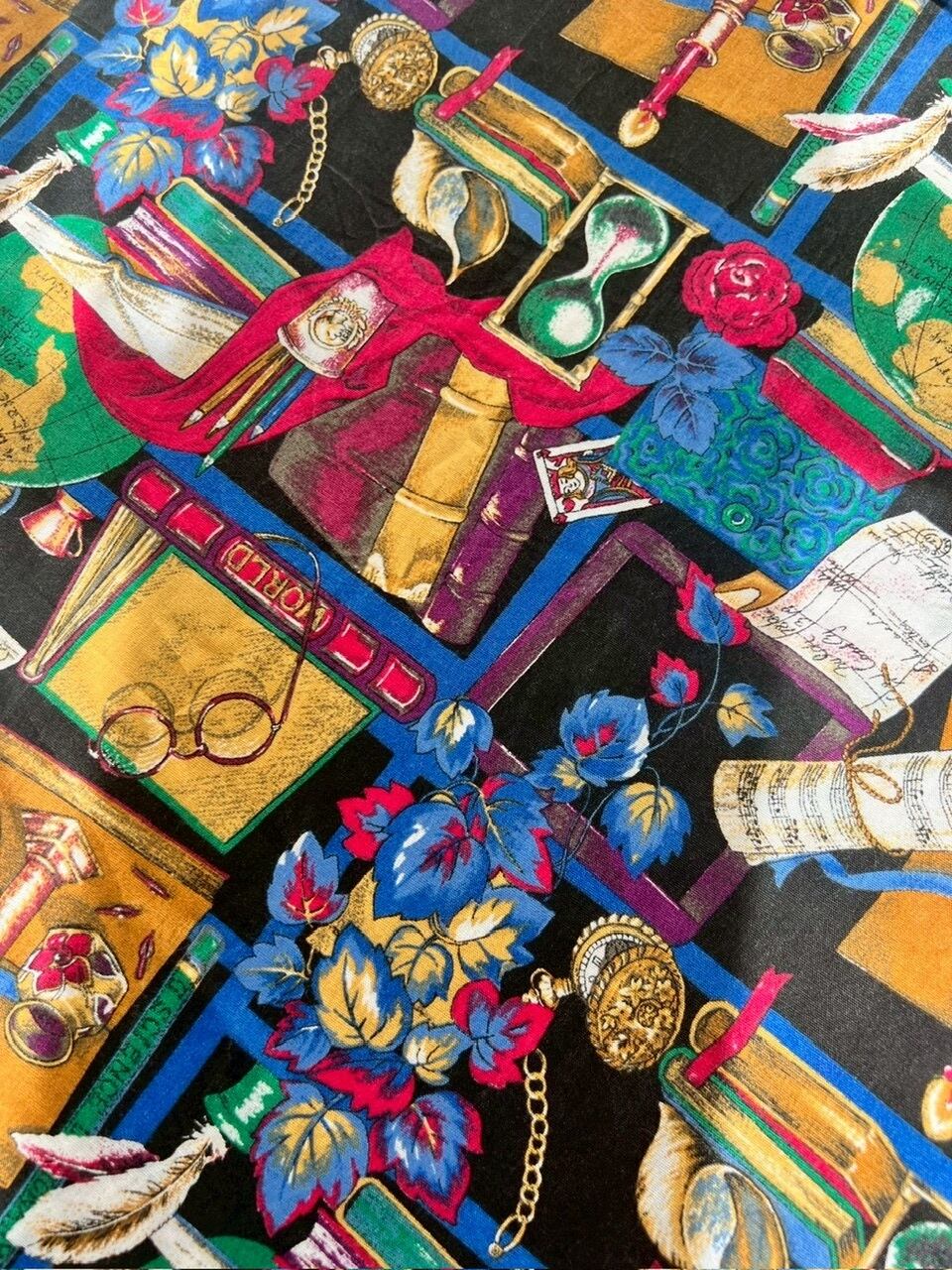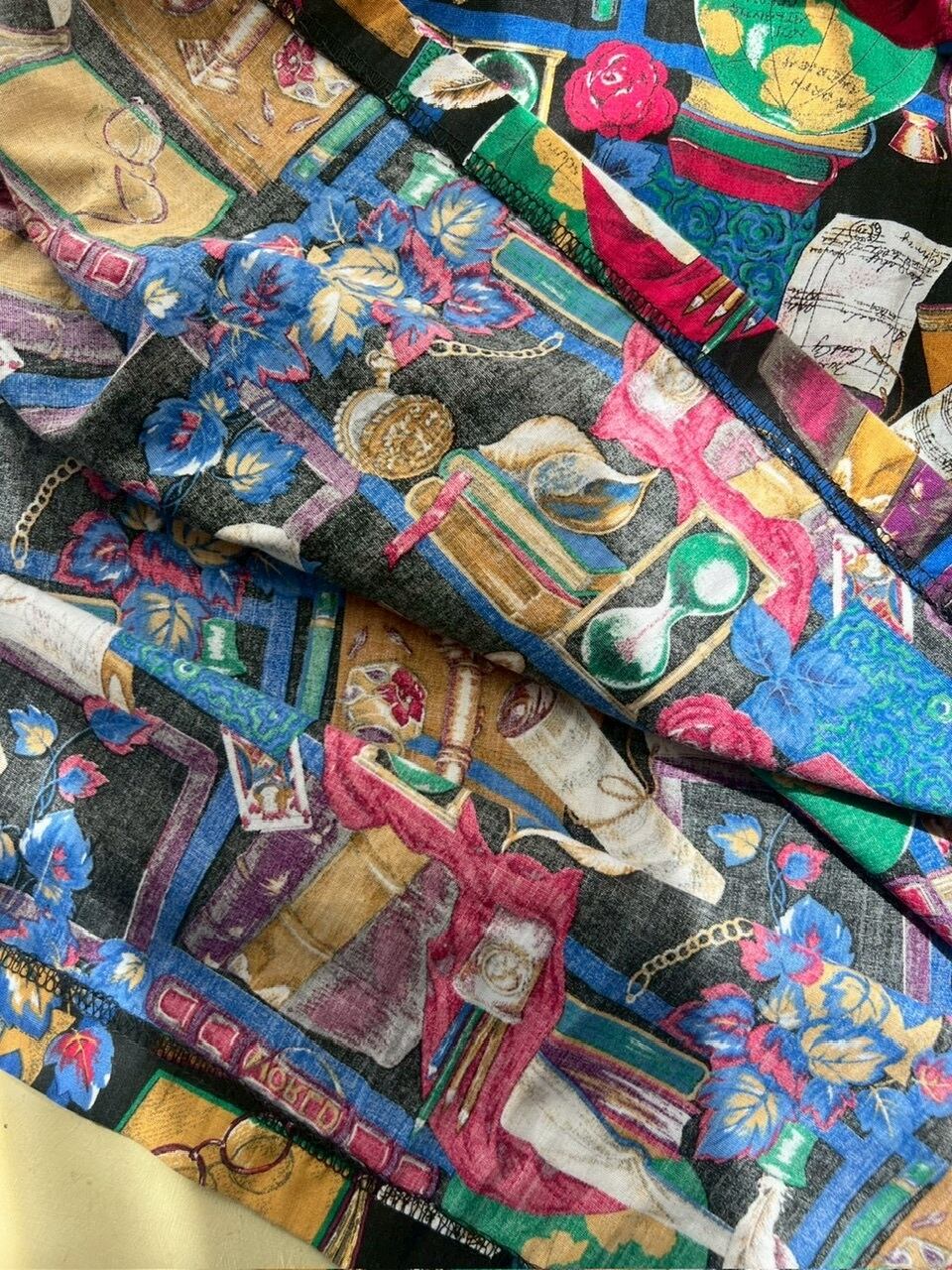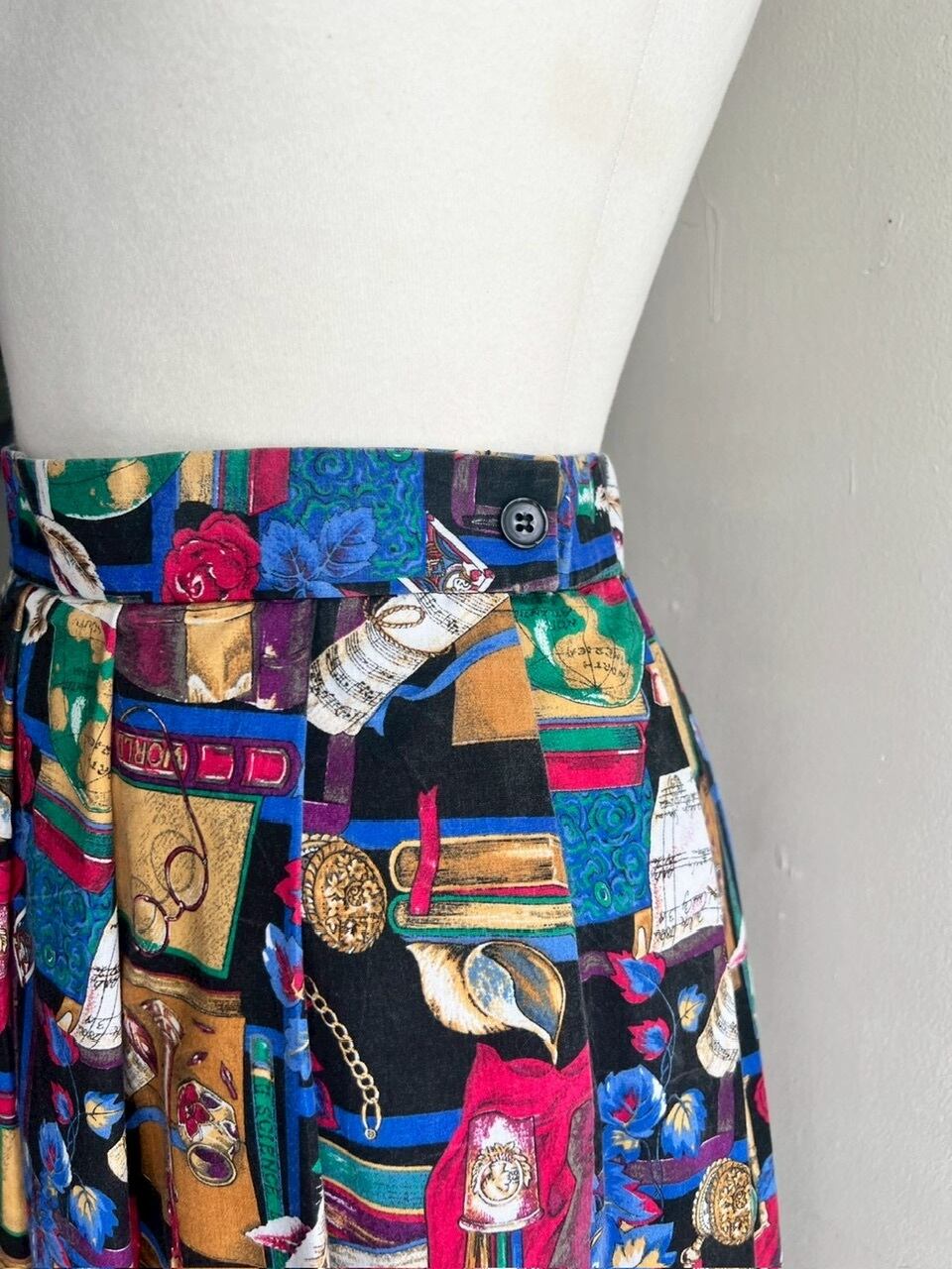 80-90s USA Library Novelty Print PMidi Skirt/書斎プリントのヴィンテージスカート