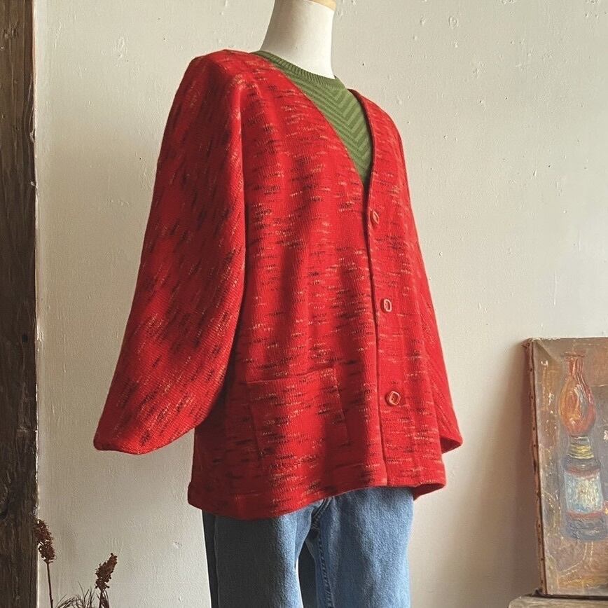 キモノスリーブのボリュームが印象的なニットカーディガン。