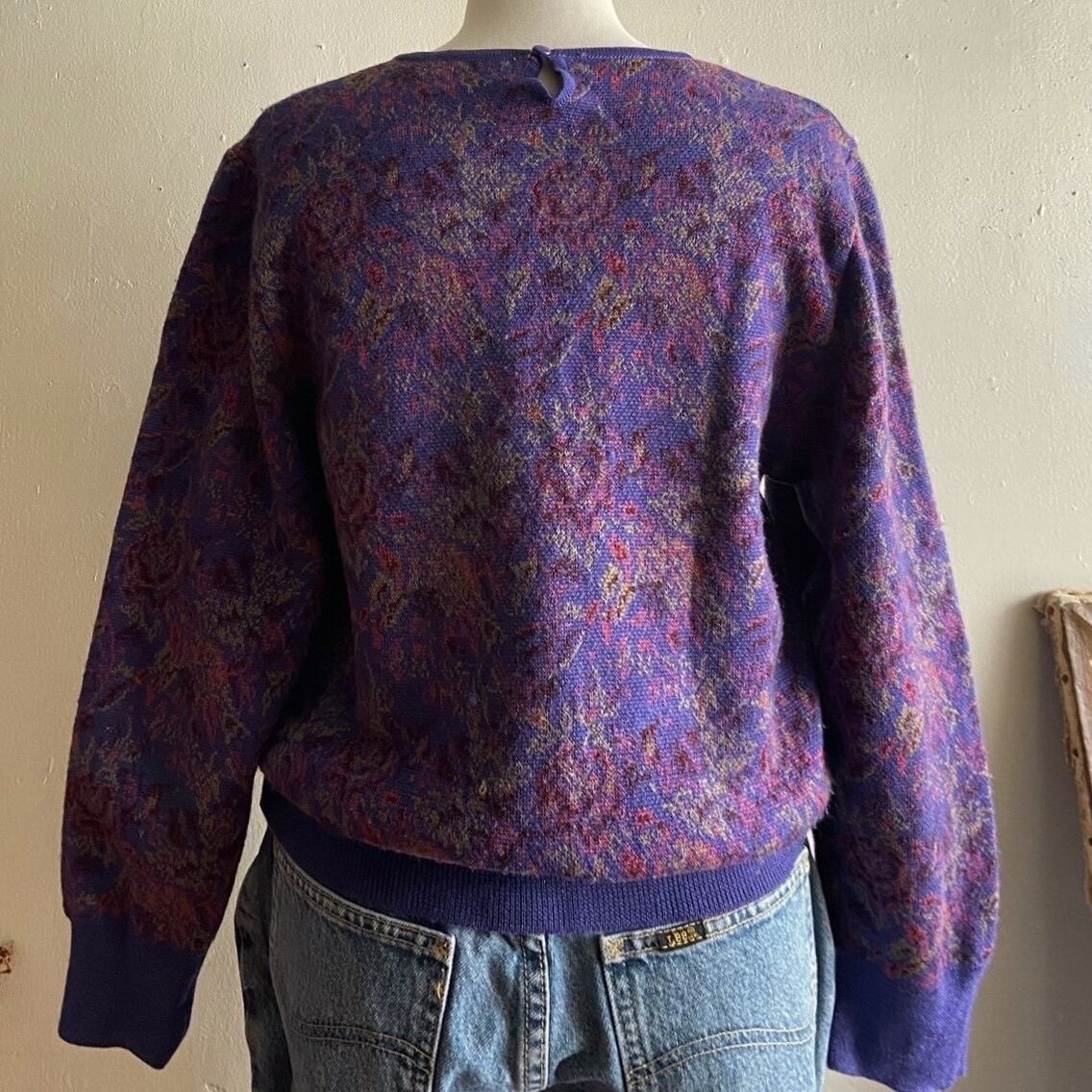 ミックスカラーのほんのりローズの柄が素敵なレトロニット。