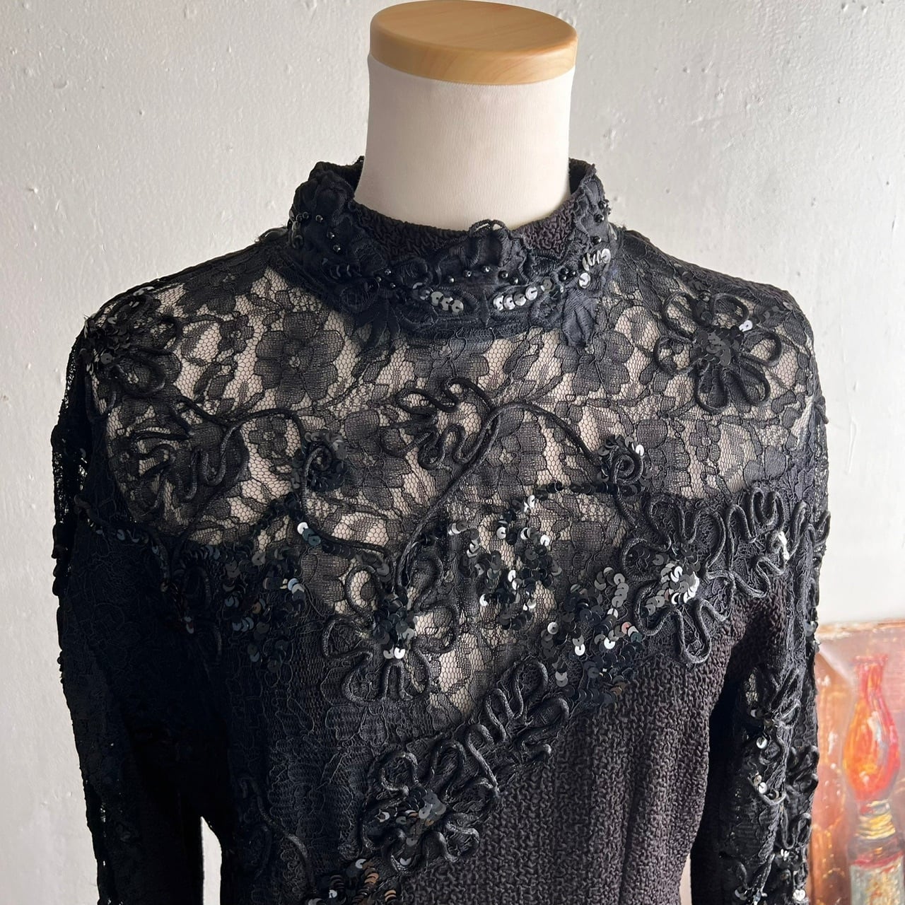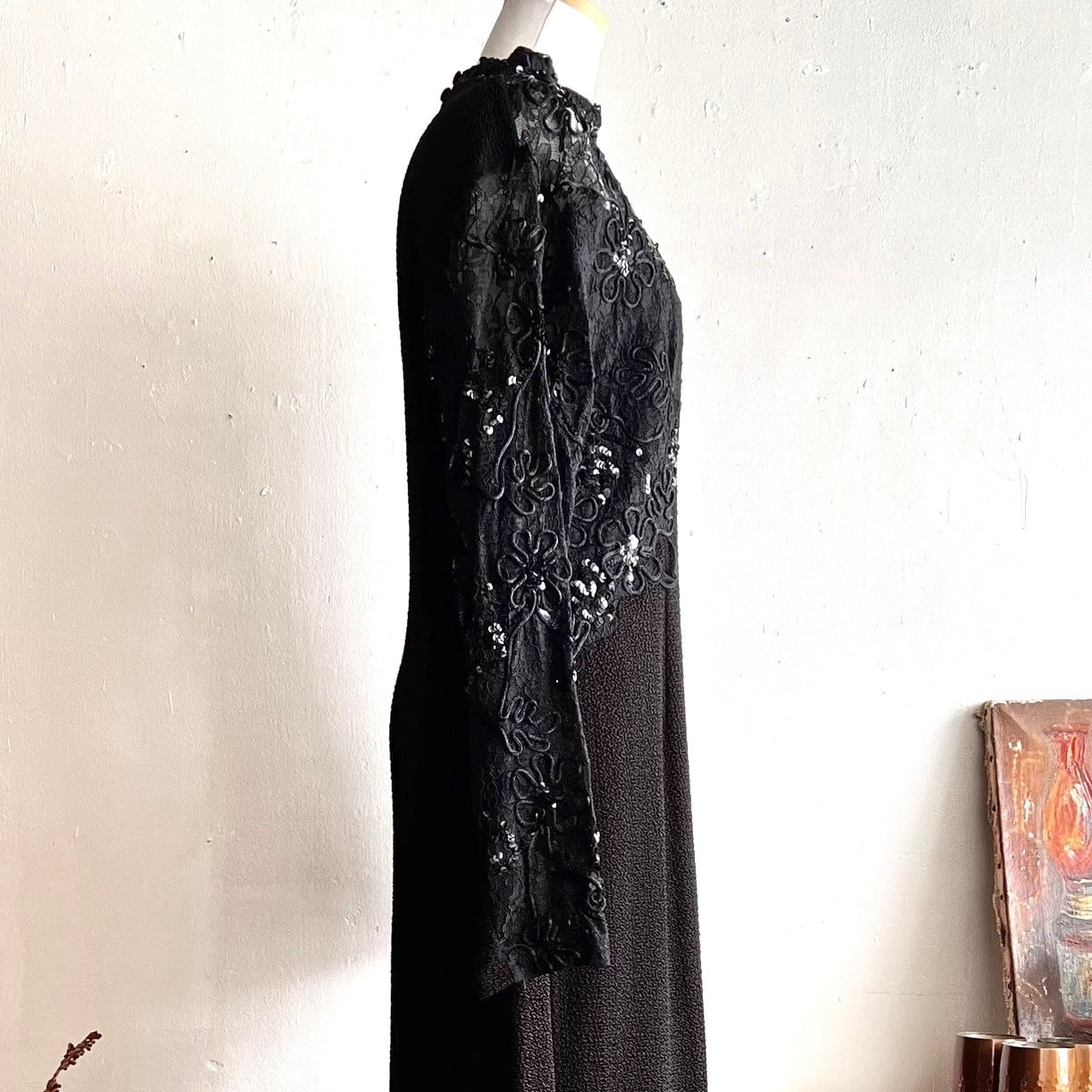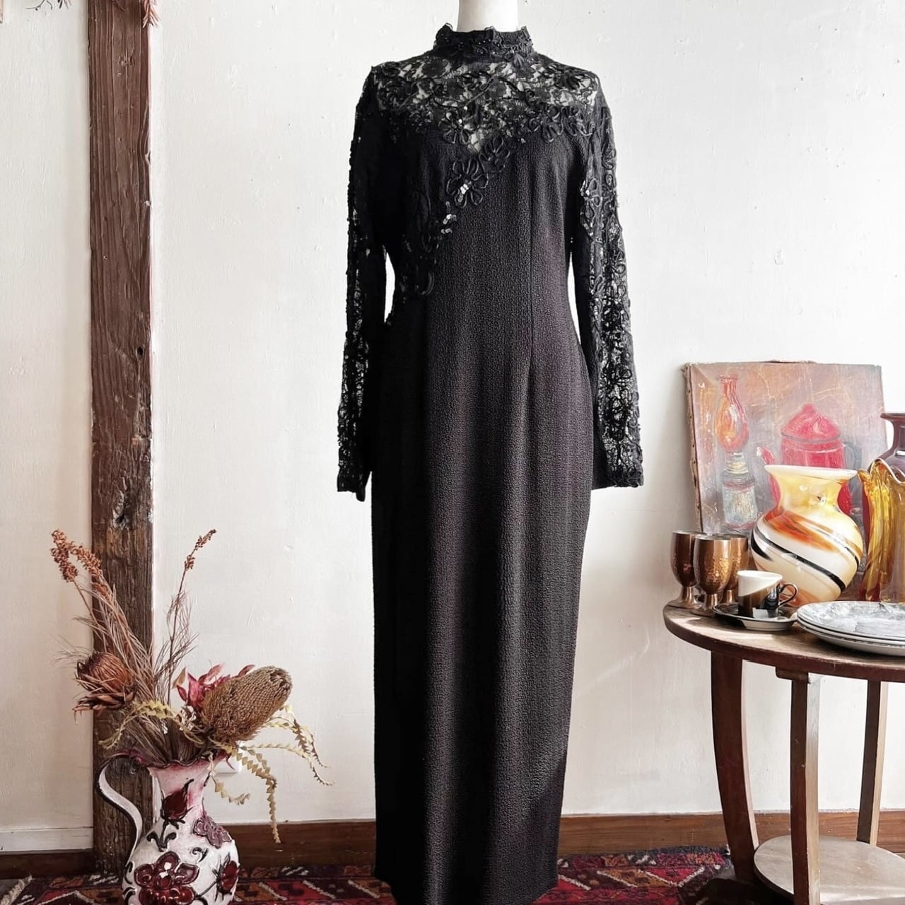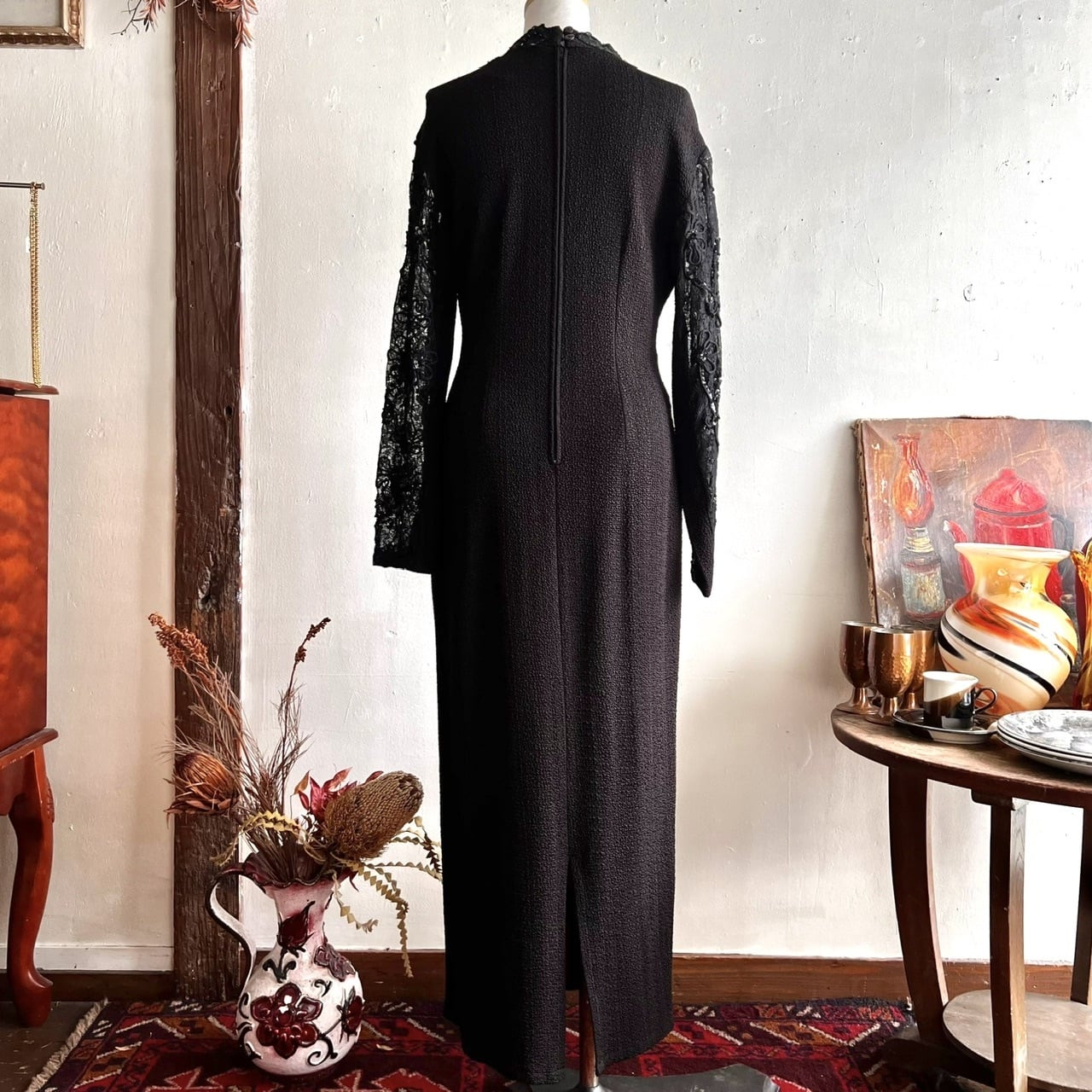 Euro vintage lace&bijou black dress/ブラックレースとビーズのデザインヴィンテージドレス | MOTHER MEETS vintage 〜神戸岡本・ヴィンテージ古着屋〜