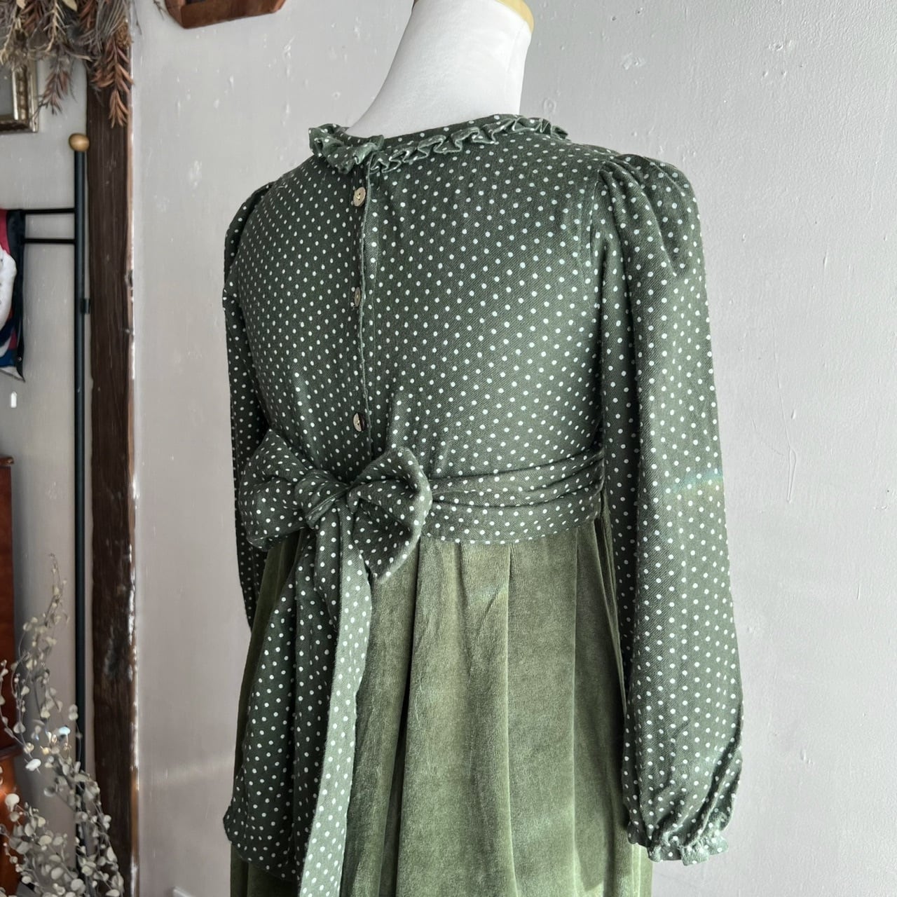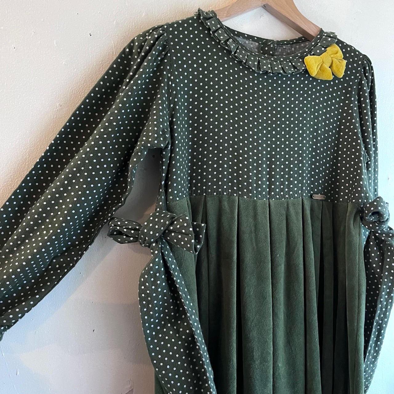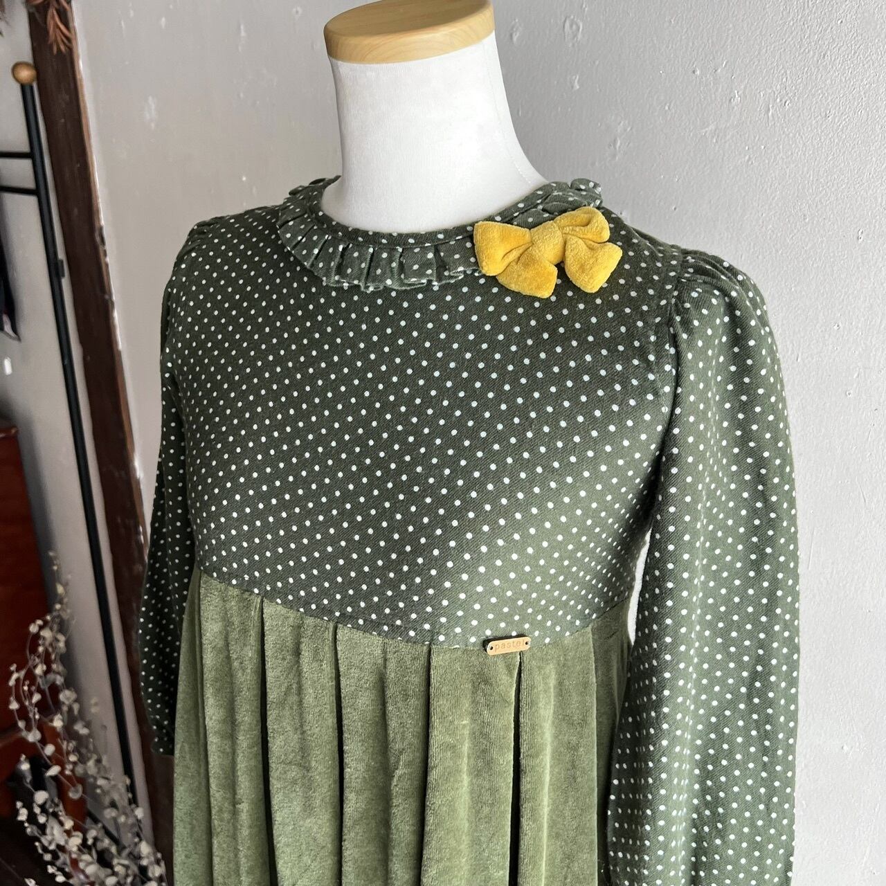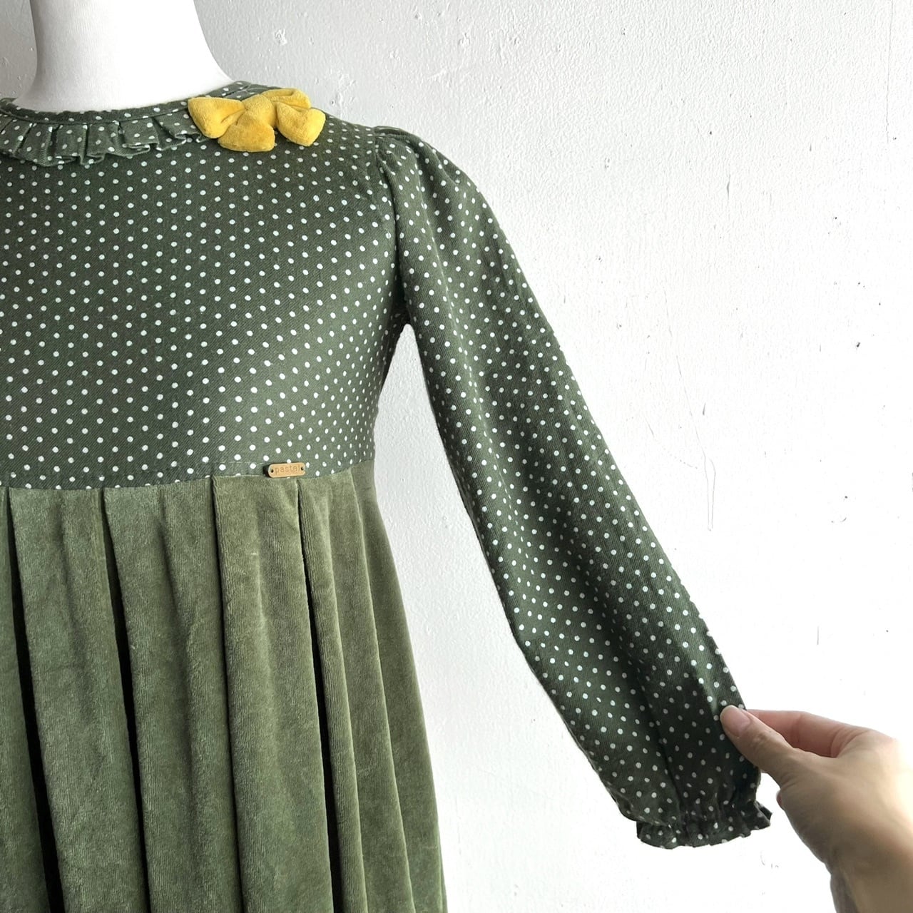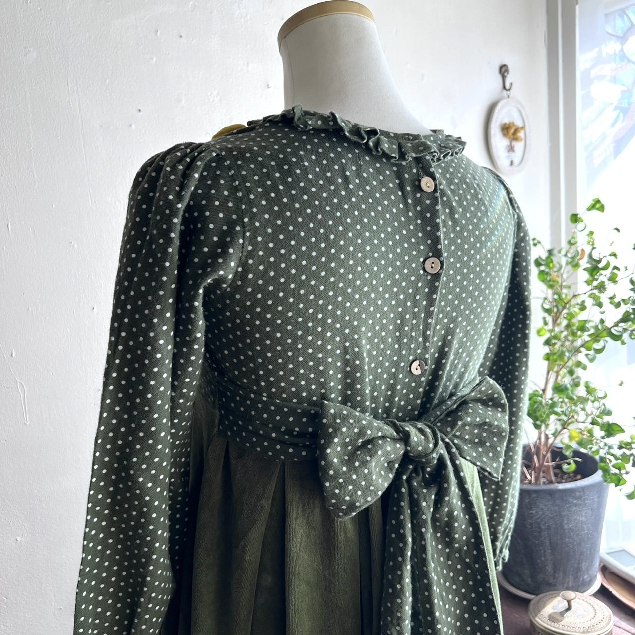 moss green&mustard ribbon velours dress/モスグリーンの細ドットとリボンのロングワンピース | MOTHER MEETS vintage 〜神戸岡本・ヴィンテージ古着屋〜