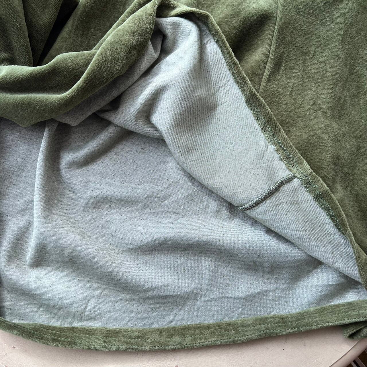 とっても可愛いデザイン×渋めのモスグリーンのベロア素材という絶妙な組み合わせのロングワンピース。