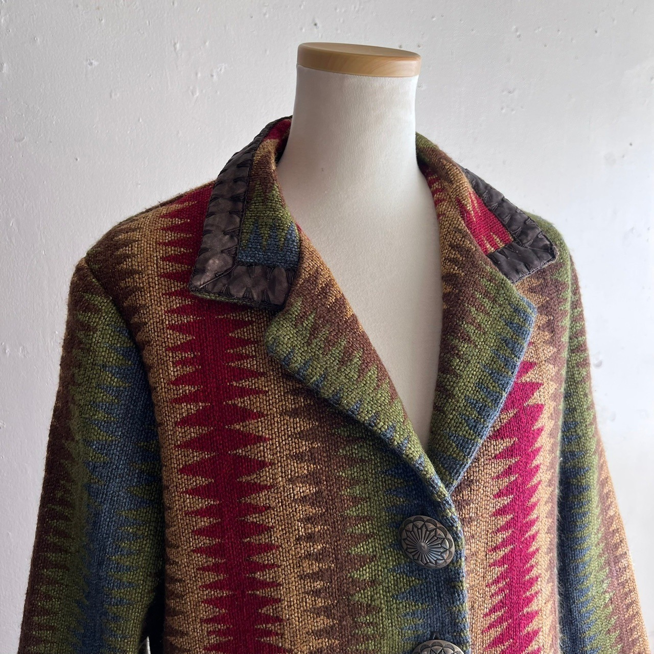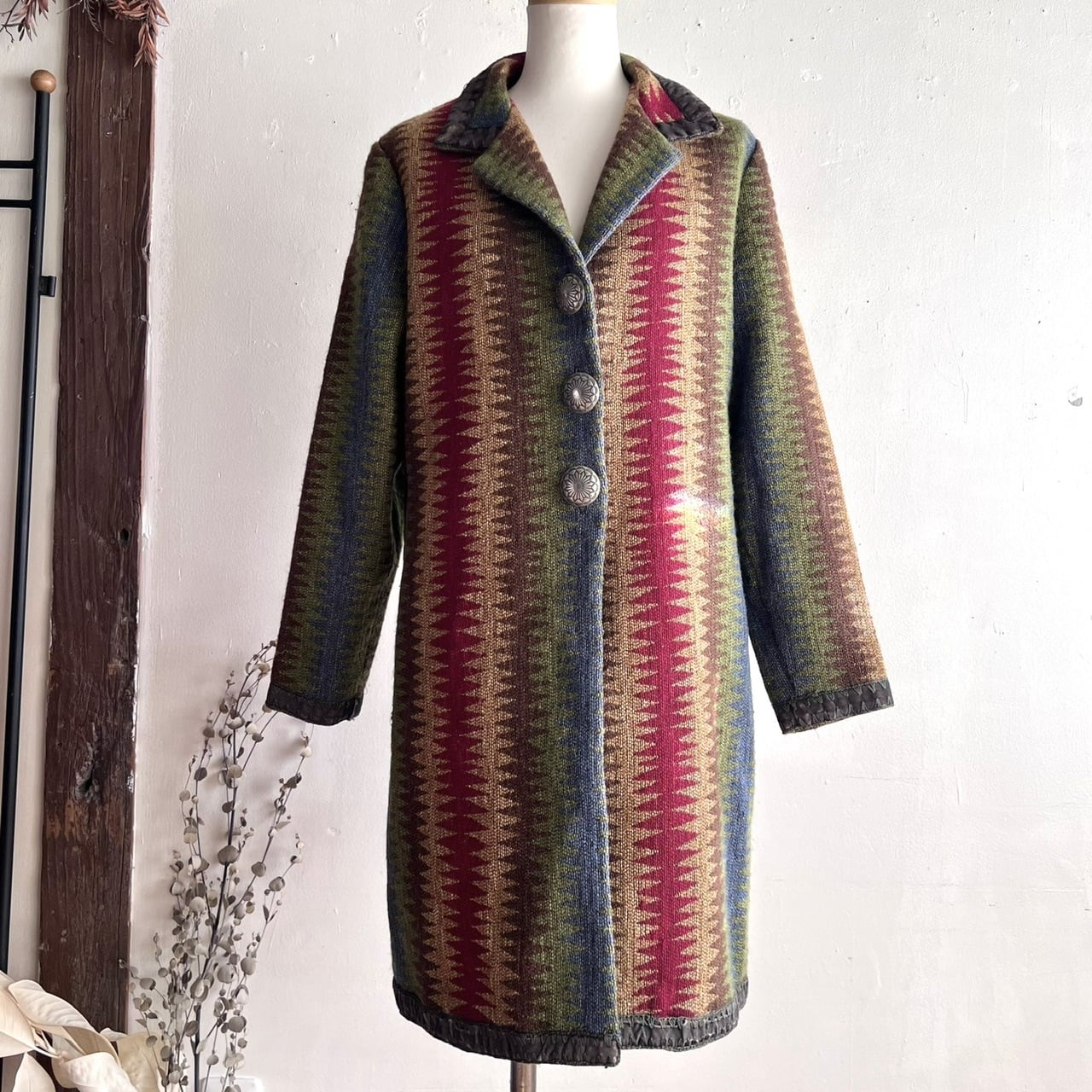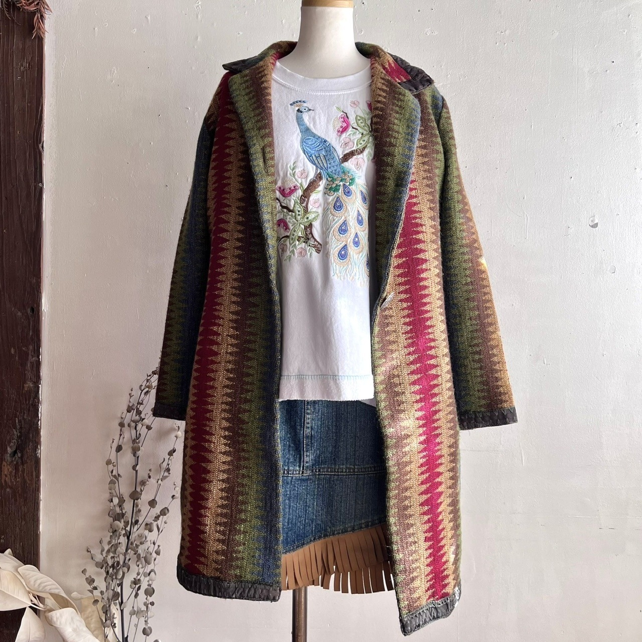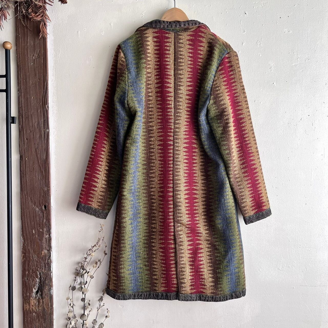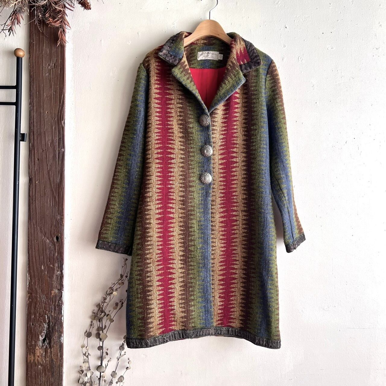 ネイティブ柄のゴブラン生地がヴィンテージらしくあたたかい色合いのコート。